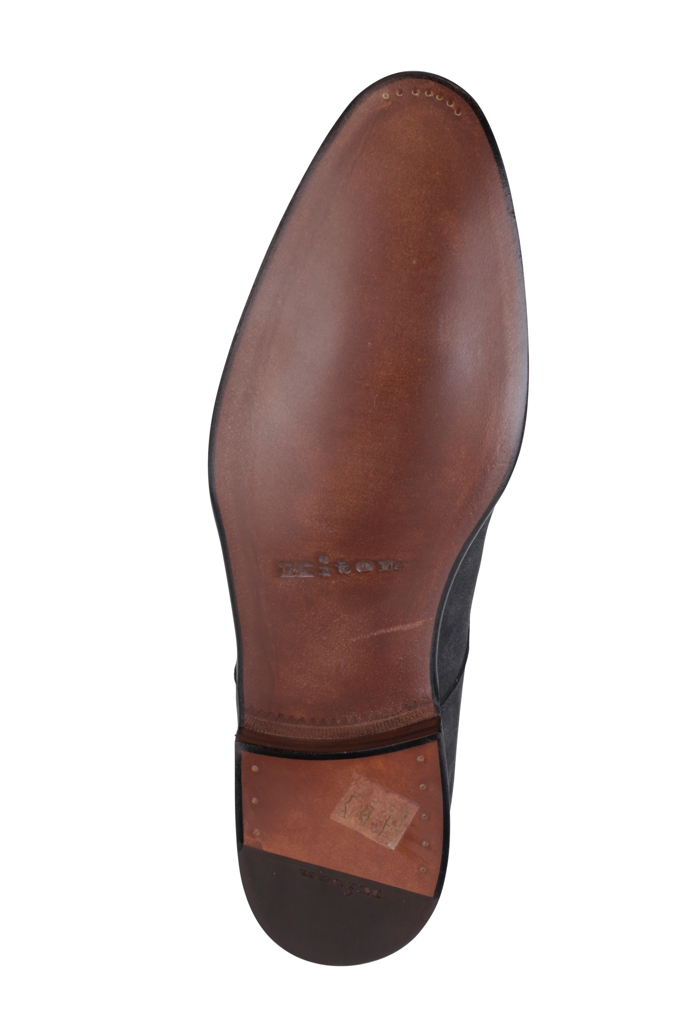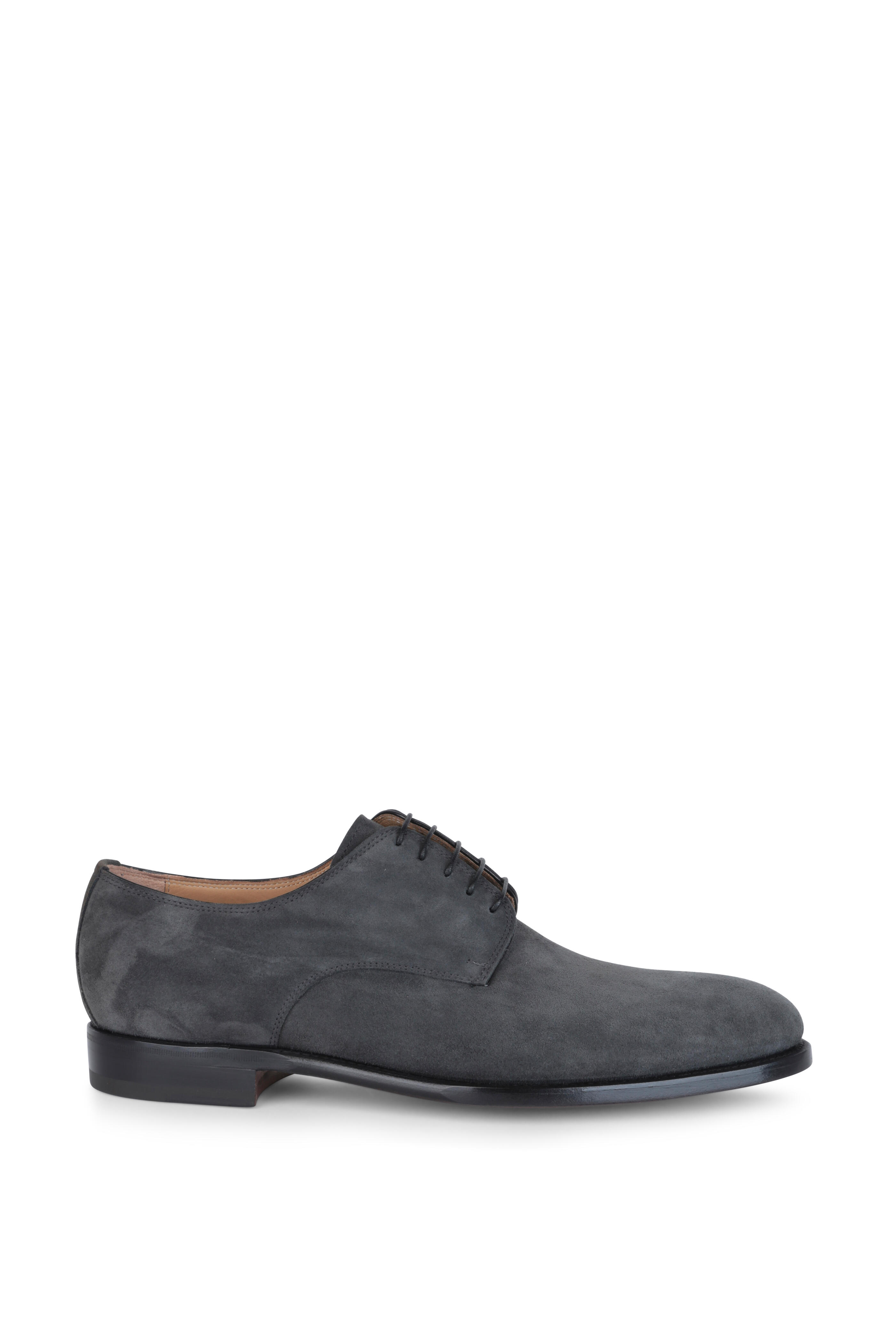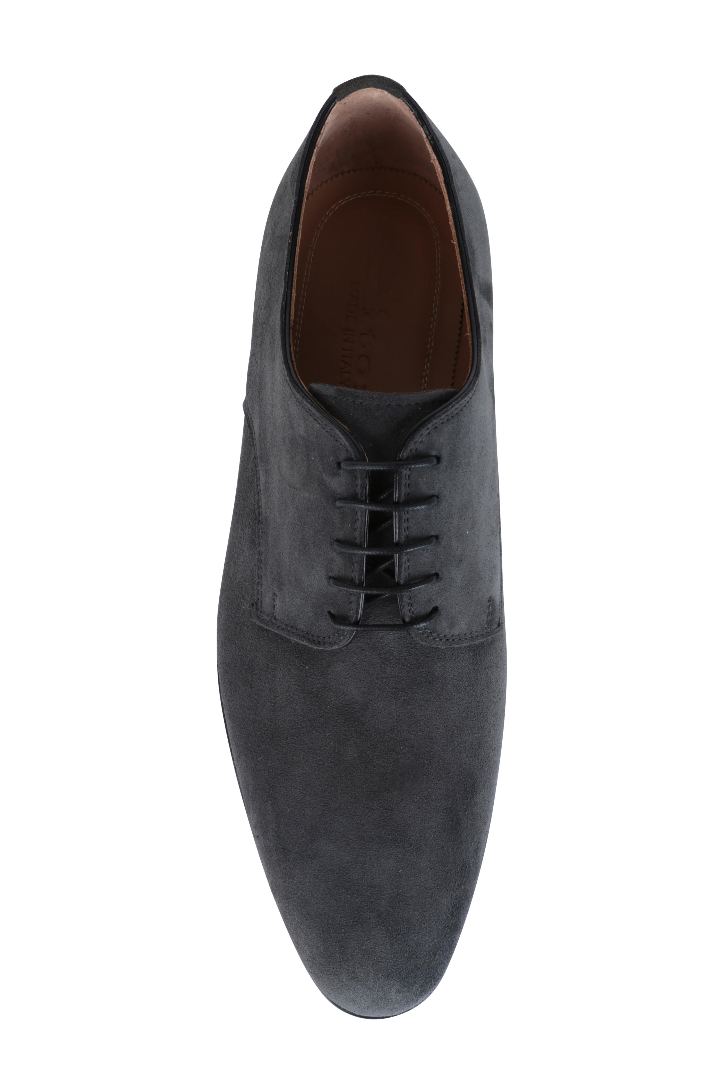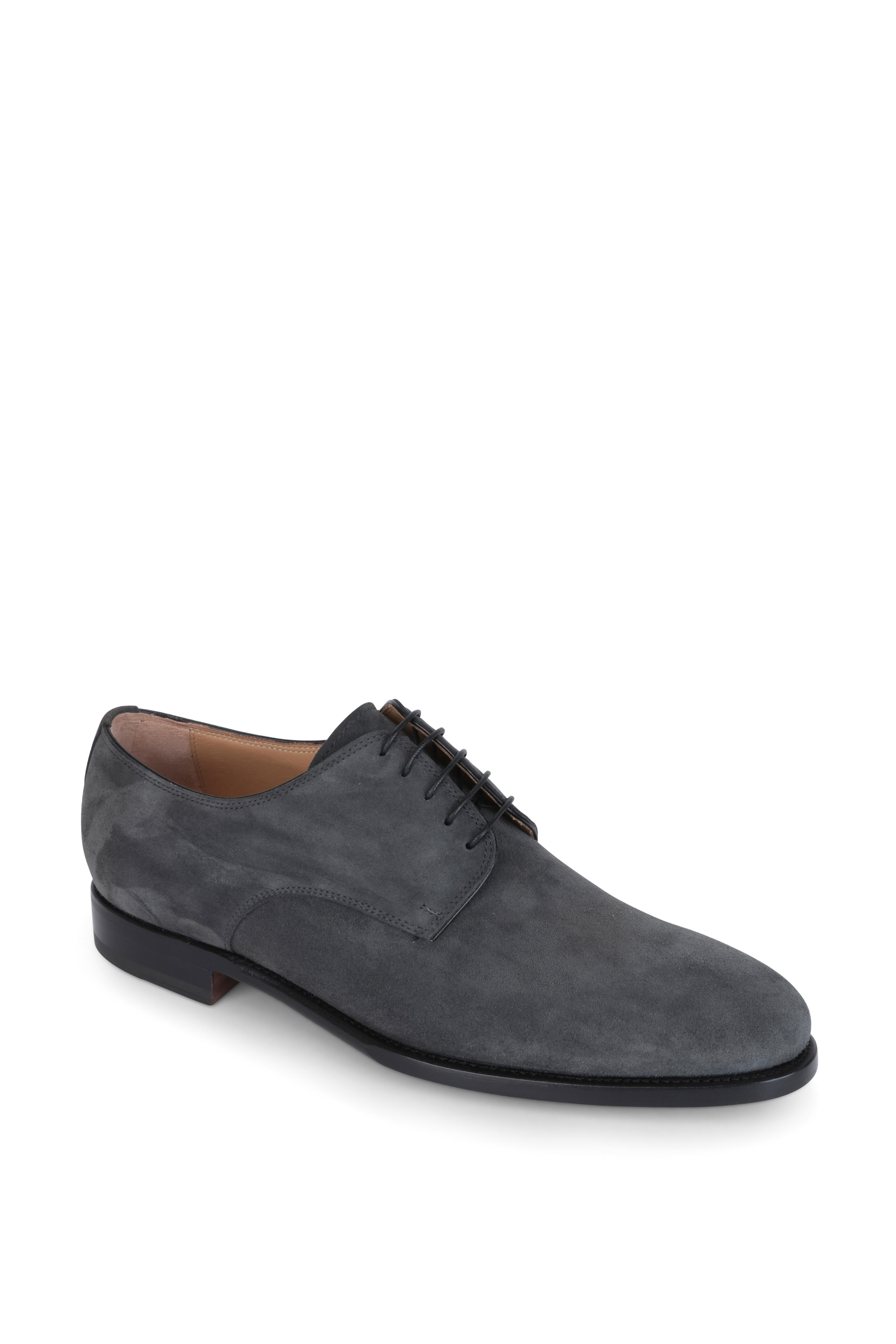 Suede upper. Almond toe. Lace up closure. Leather lining and insole. Stacked wooden heel. Leather sole. Made in Italy.