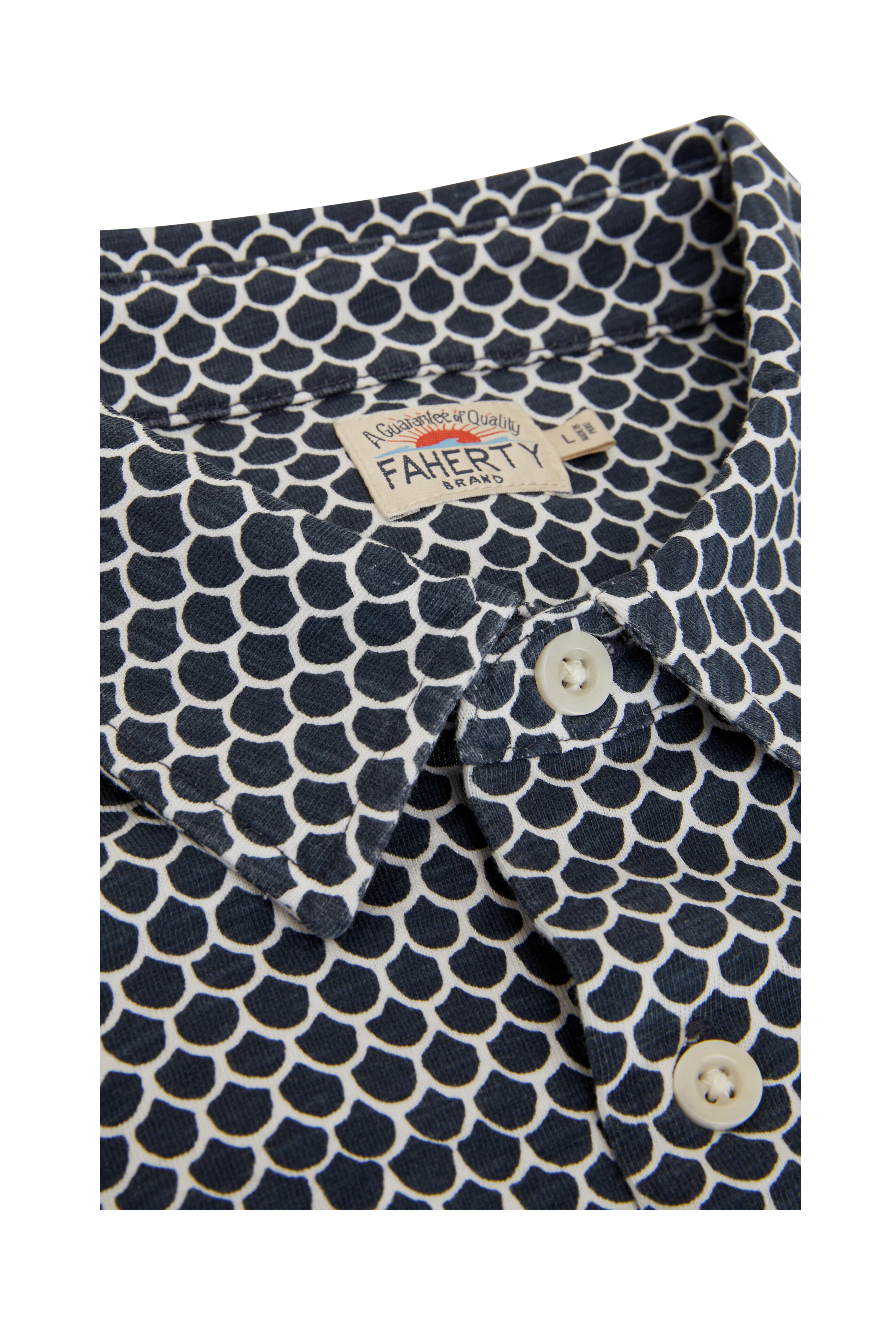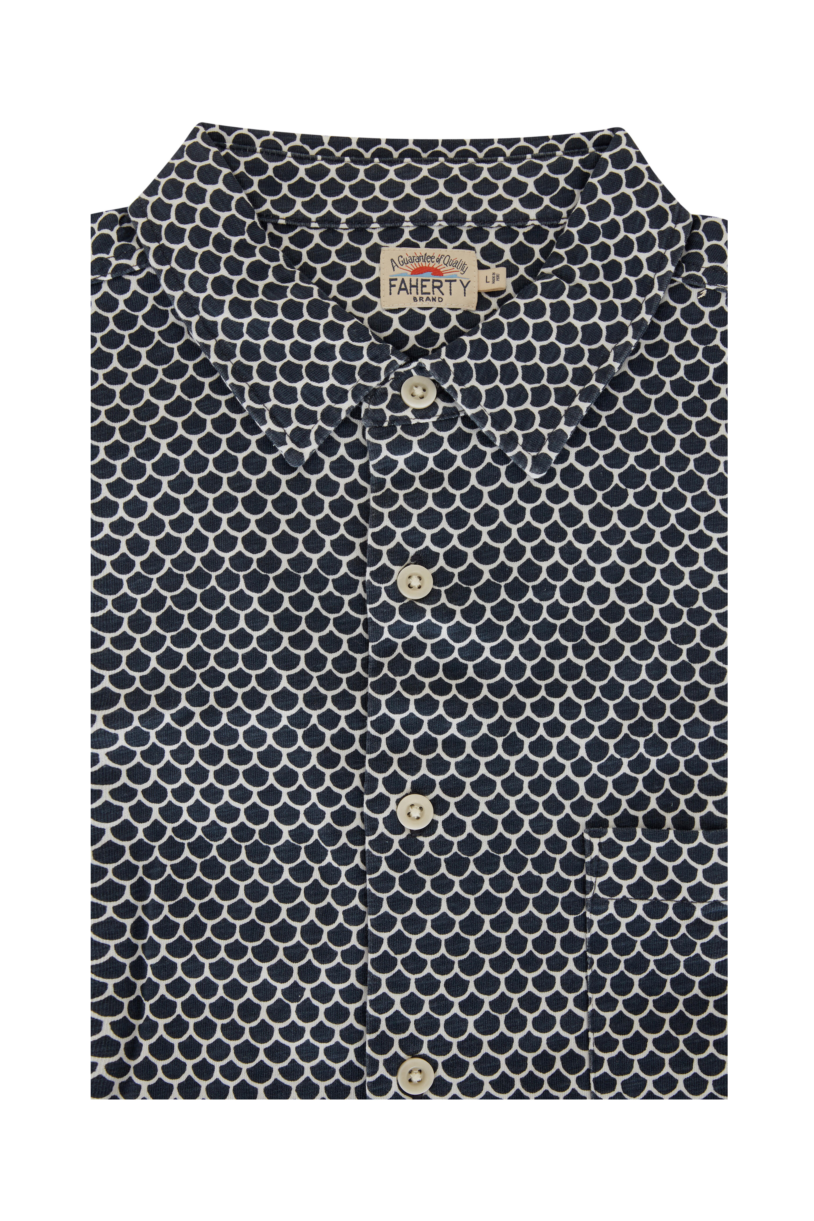 Spread collar. Button front placket. Chest button-patch pocket. Short sleeves. Imported. 100% cotton. Machine wash cold.