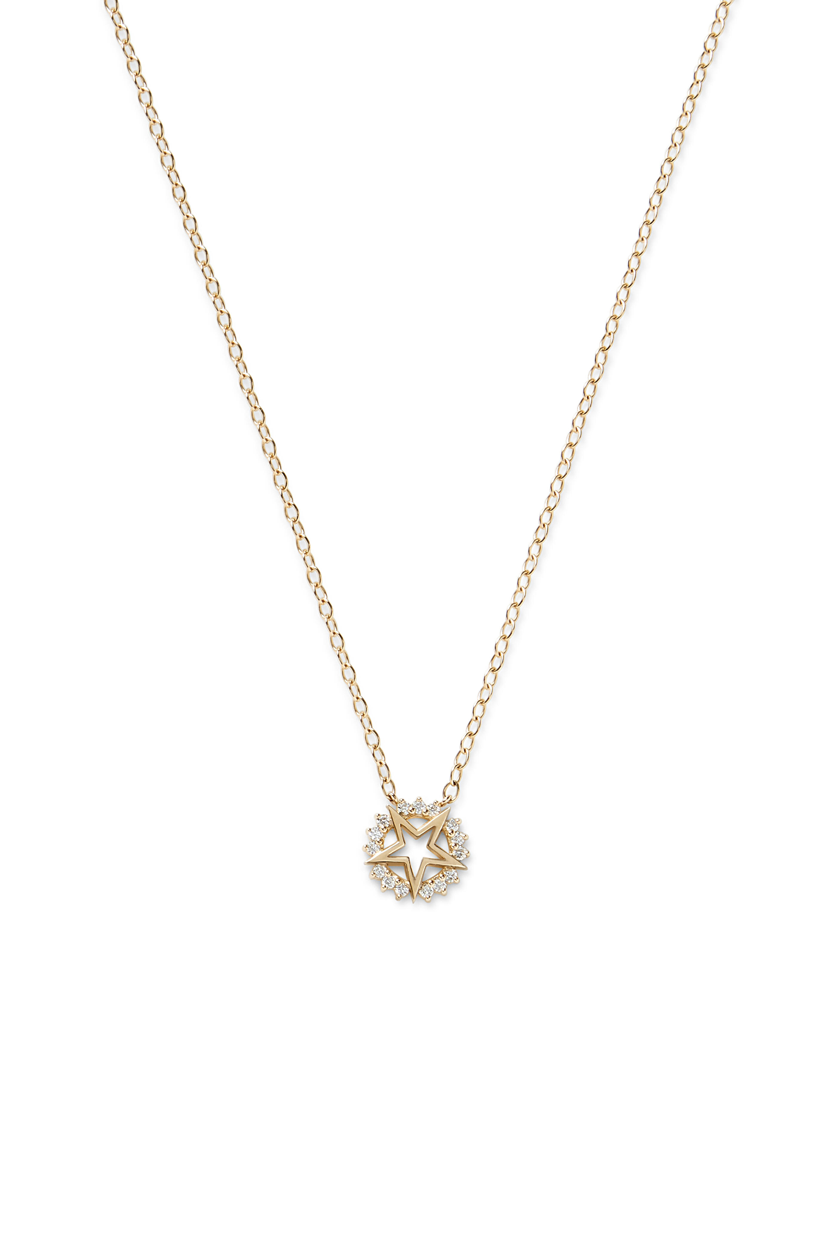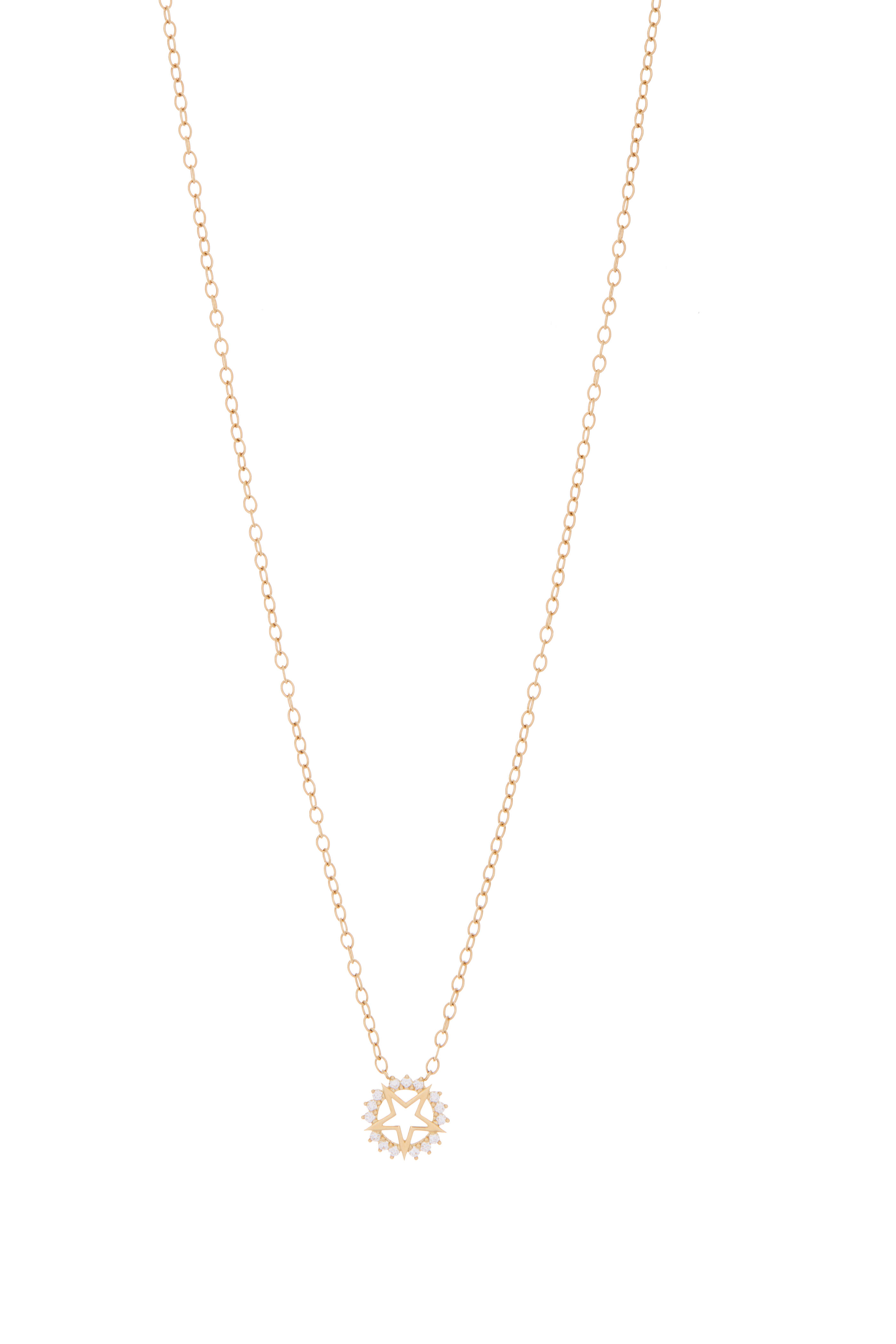 Mystic Collection. Material: 18-Karat Yellow Gold. Diamond Quality: F-G Color VS Clarity. Carat Total Weight: 0.21. Measurements: Pendant is 12.3mm; Chain is 16.5" long. Clasp: Lobster Clasp can be hooked at any length. Handcrafted in France.
