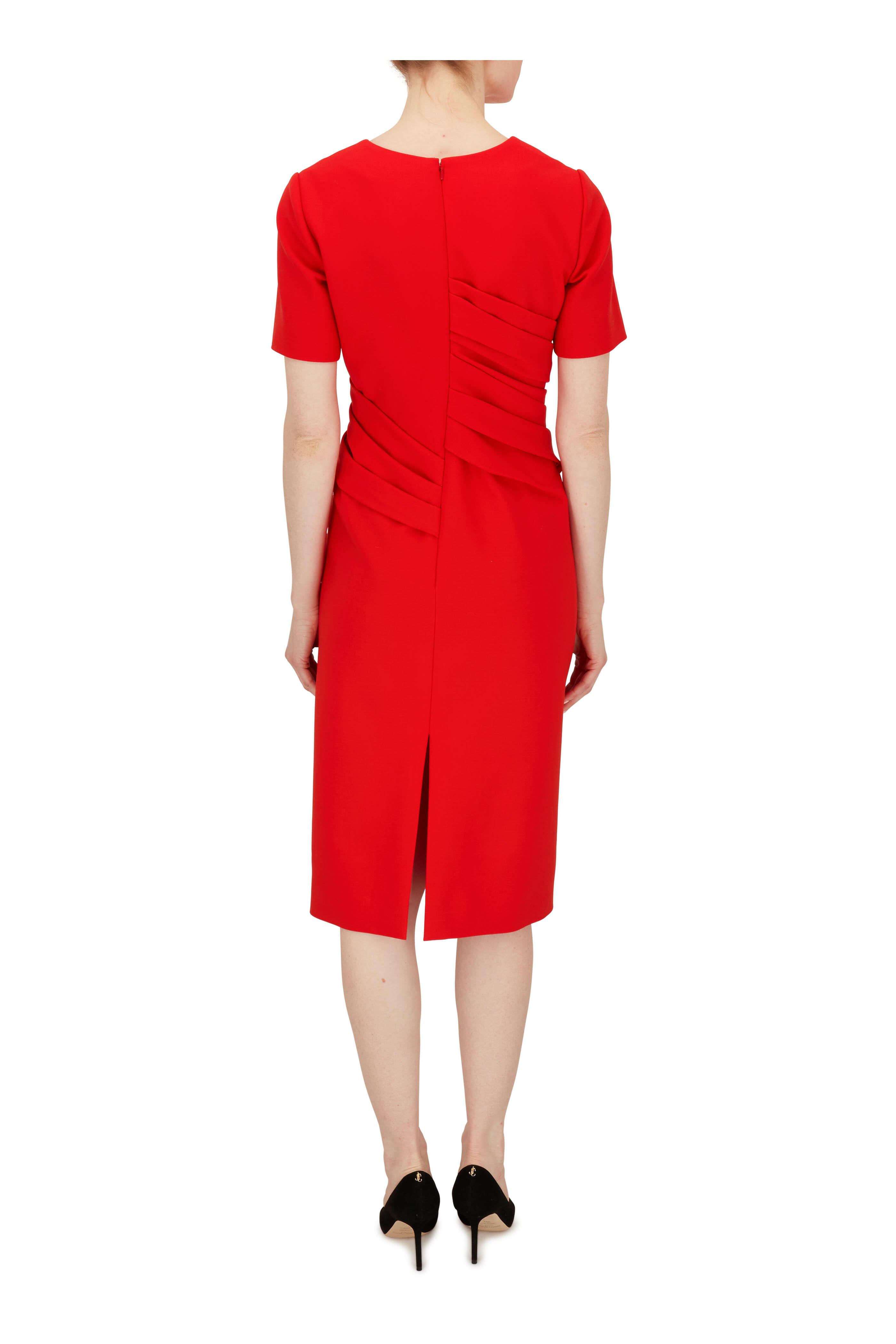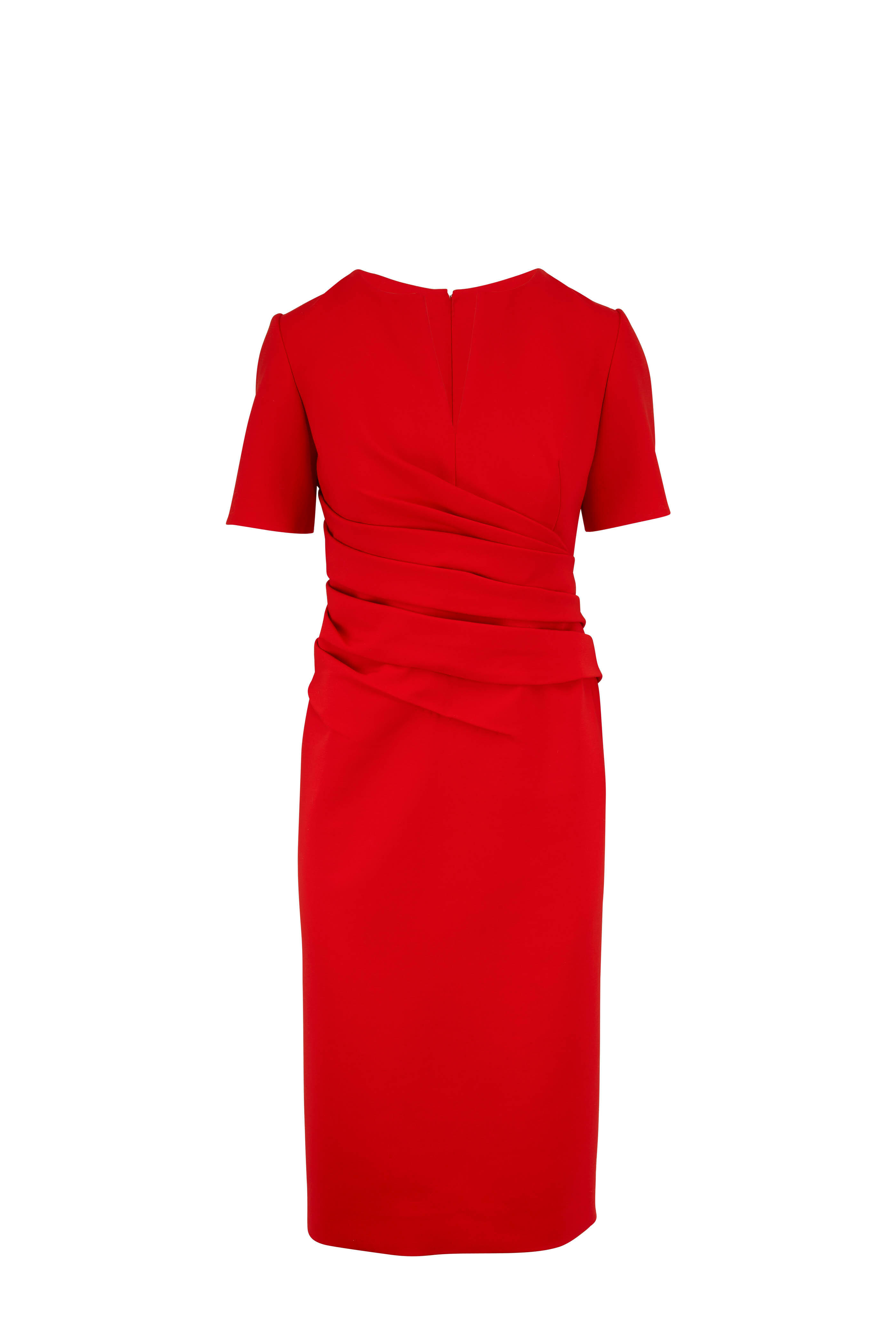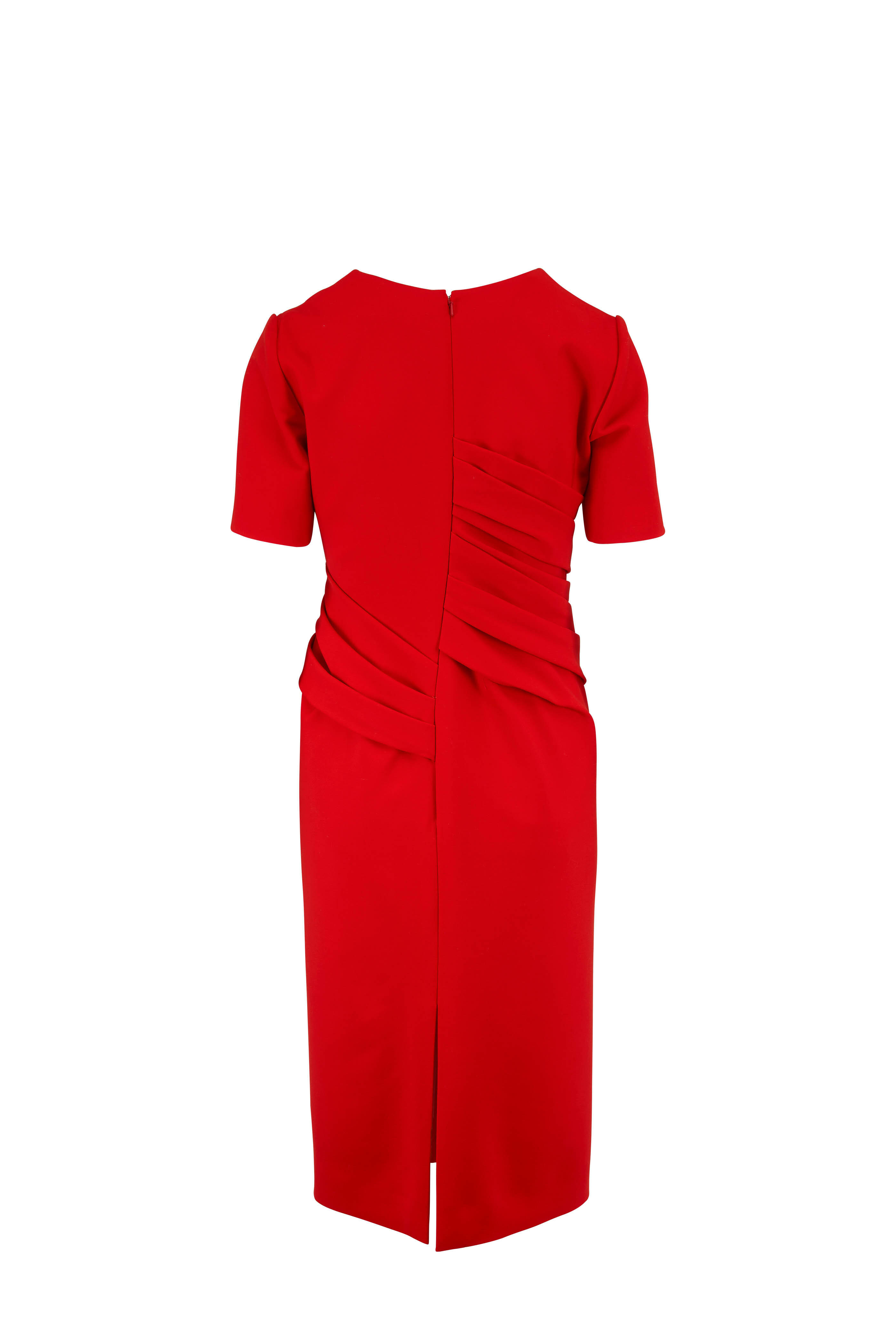 Orange Red Stretch Wool Ruched Short Sleeve Dress