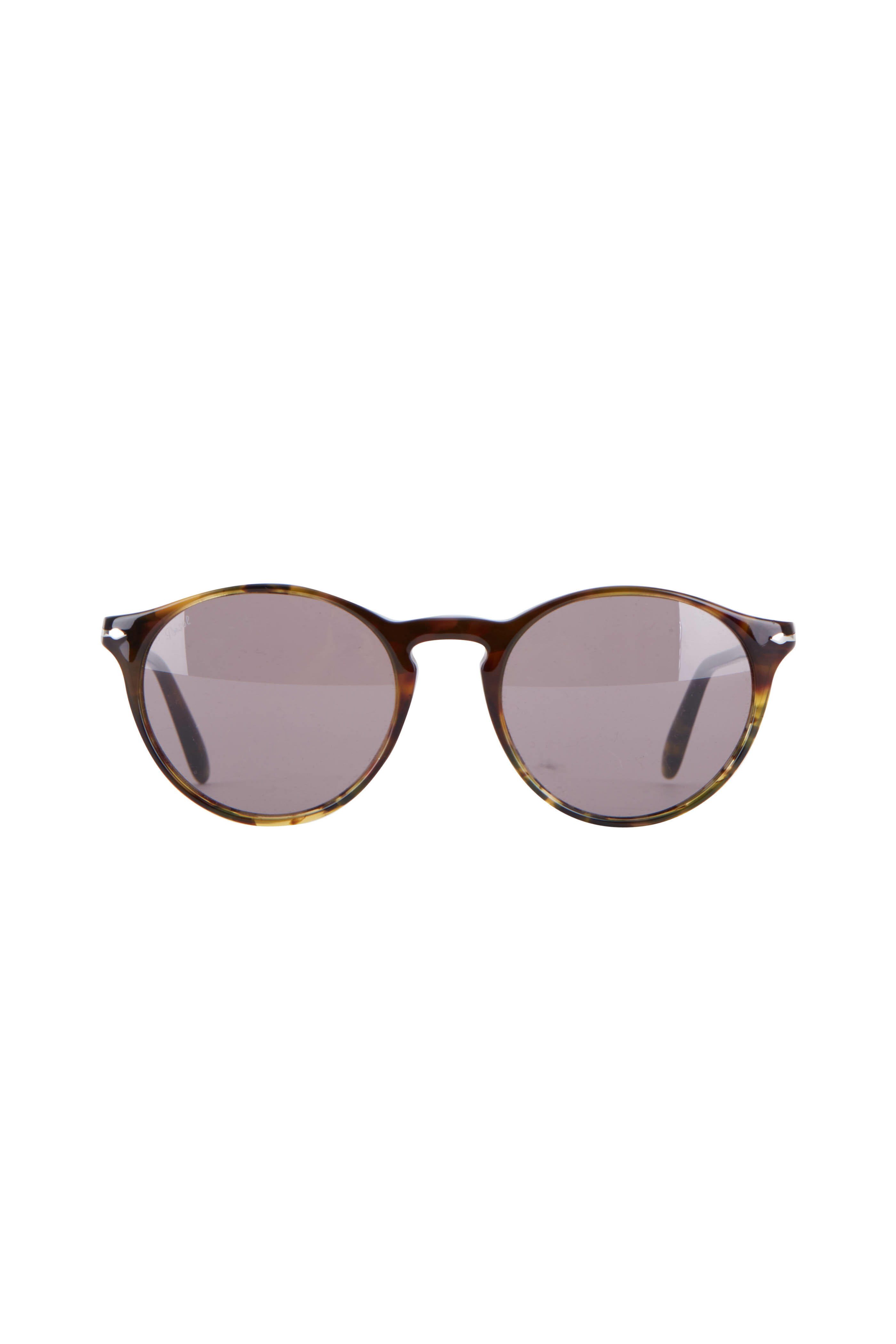 Frame material: acetate. Frame color: tortoise green. Lens color: gray. Hand made in Italy. size 50.