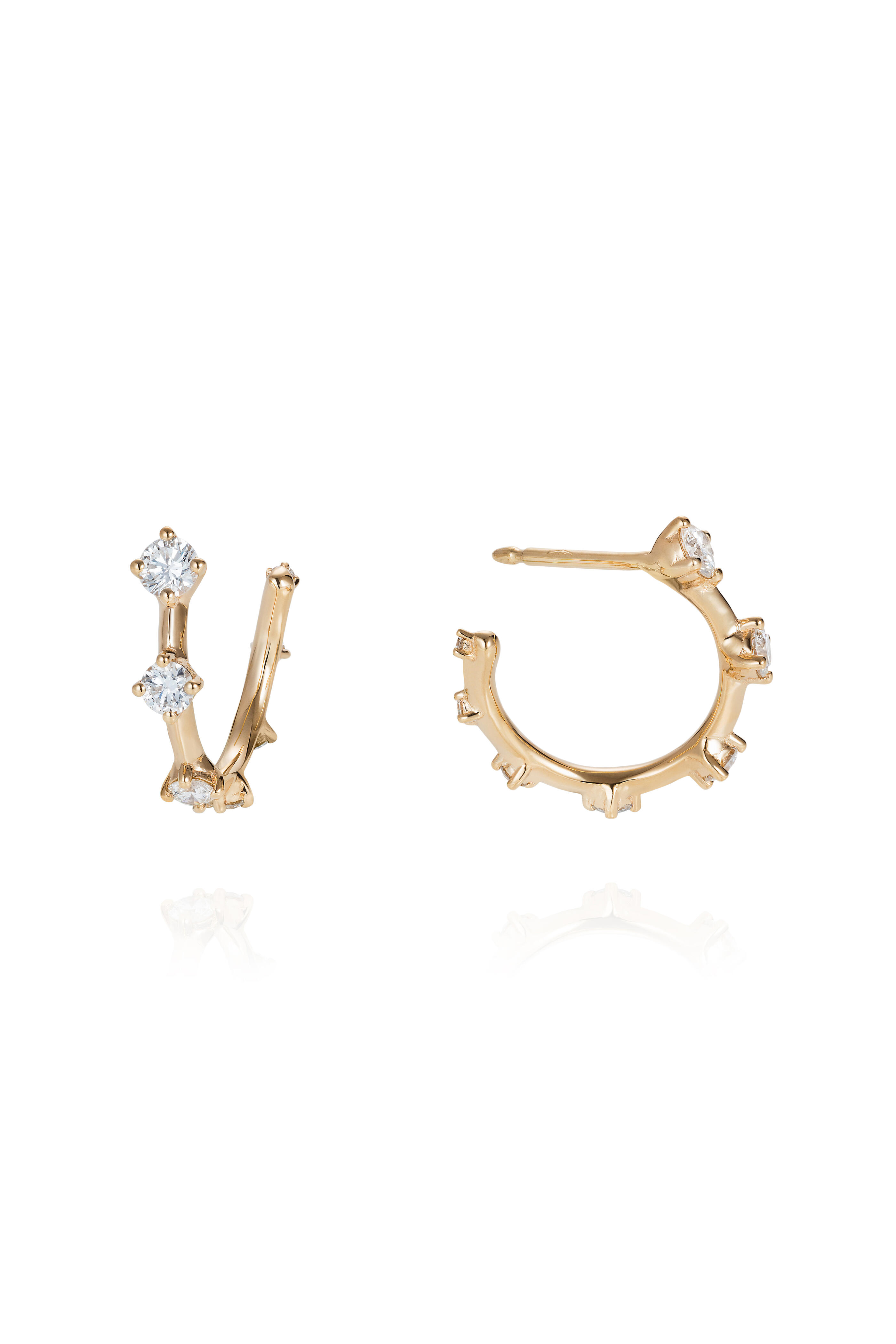 18K Yellow Gold Diamond Sequence Hoop Earrings