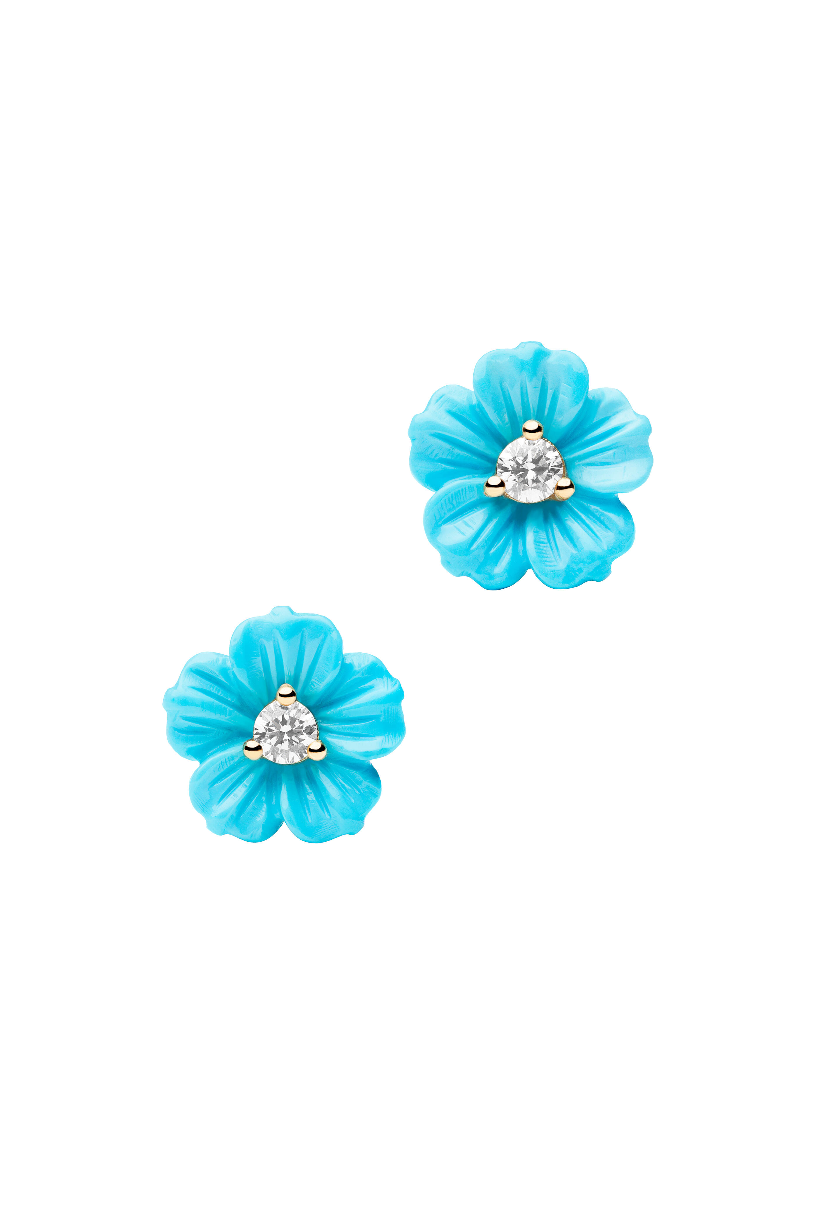 18k yellow gold. .10 carat diamonds. 5.12 carat turquoise. 12mm.