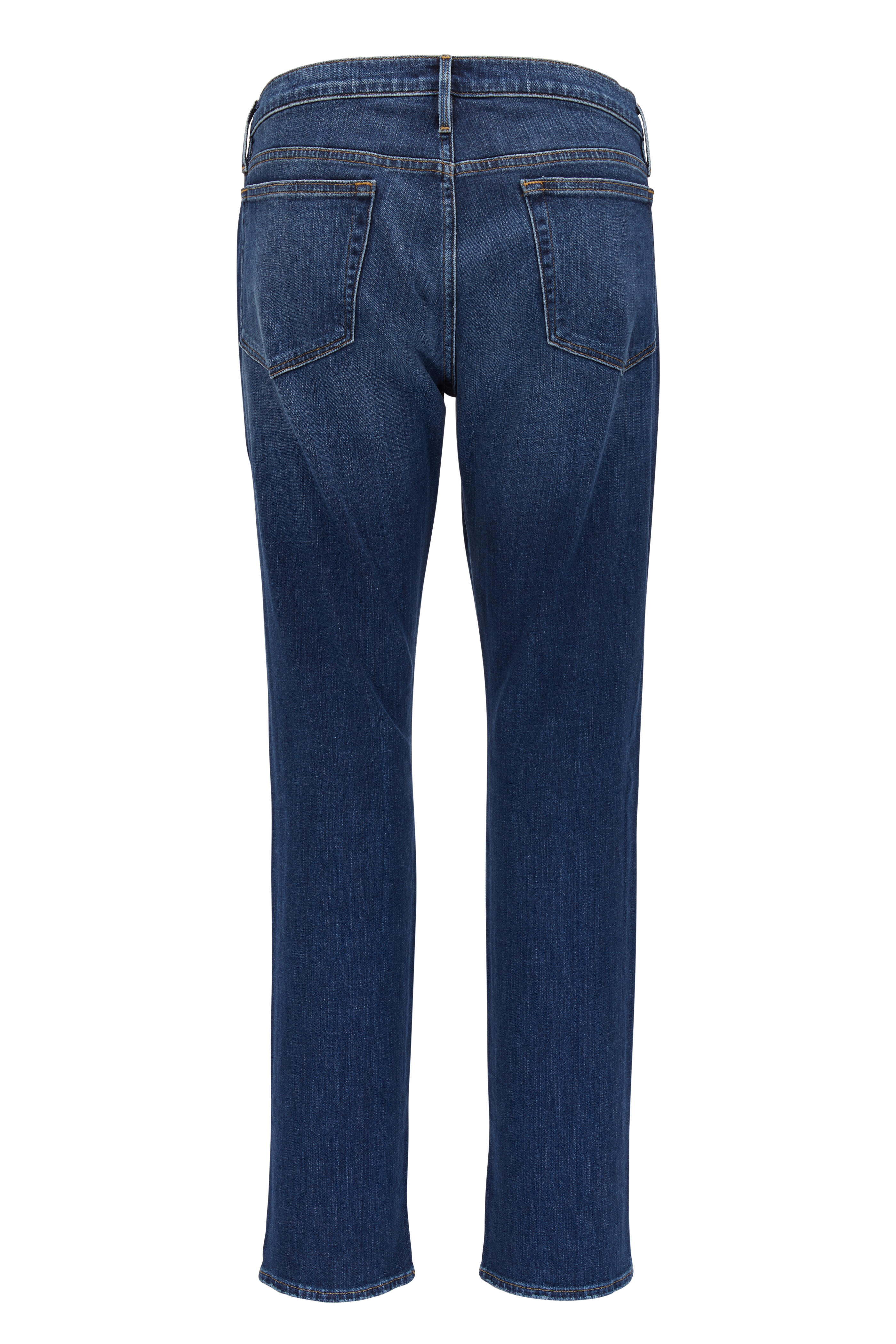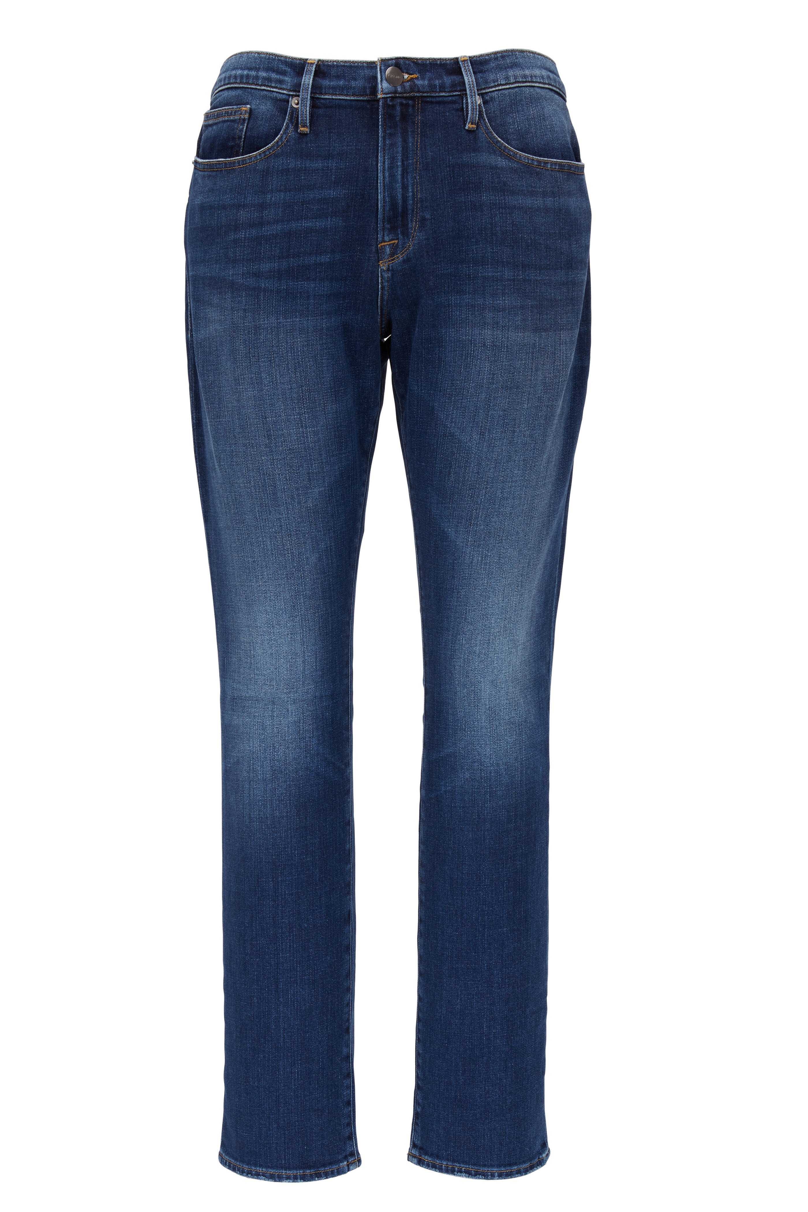 Five pocket styling. Slight whisker and fade detail. Imported. Color: Manston. 32½" inseam. 95% cotton, 4% polyester, 1% elastane. Machine wash.