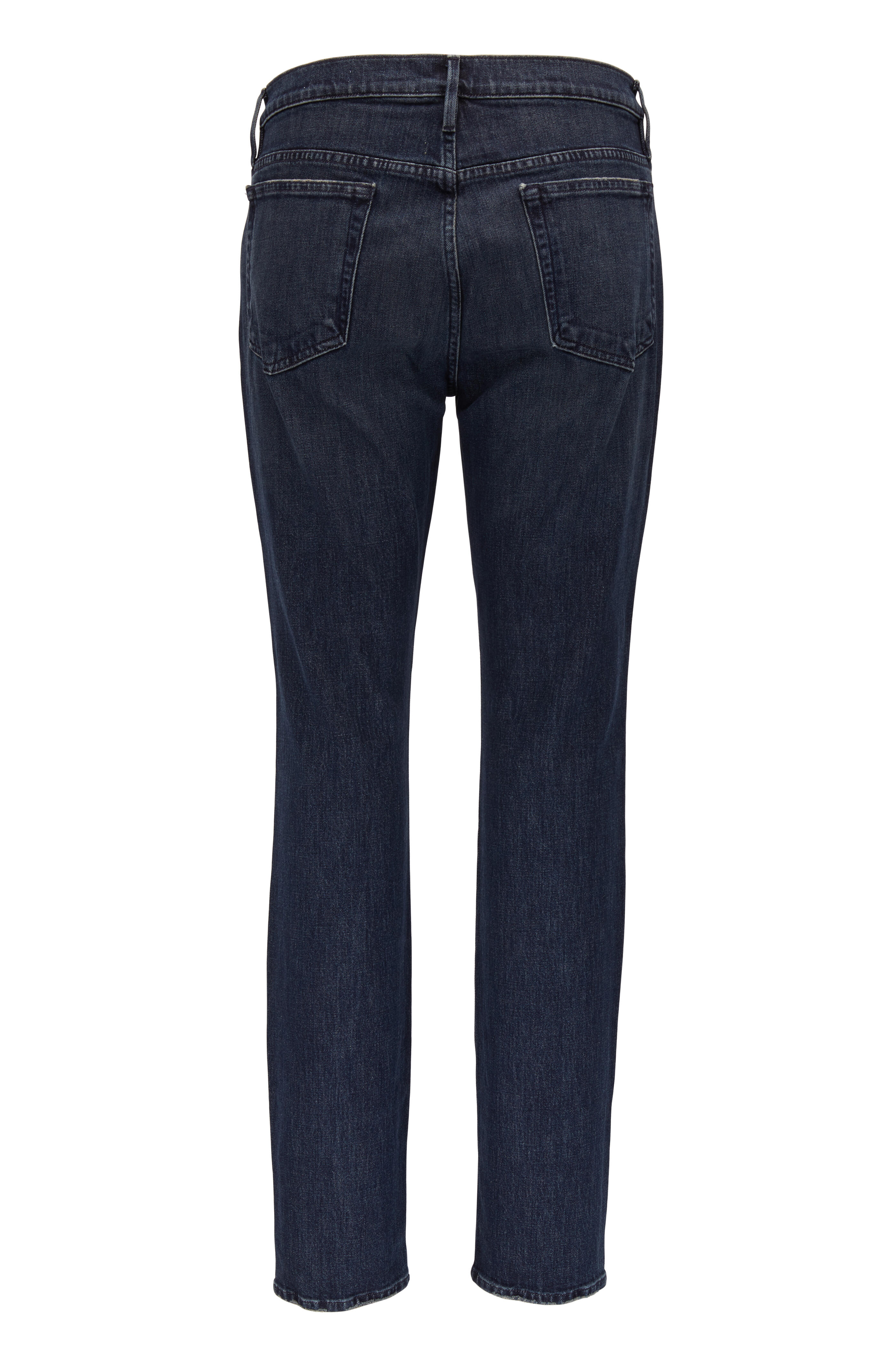 Five pocket styling. Tonal stitching. Made in the USA. Color: Radar. Skinny fit. 32½" inseam. 96% cotton, 3% polyester, 1% elastane. Machine wash.