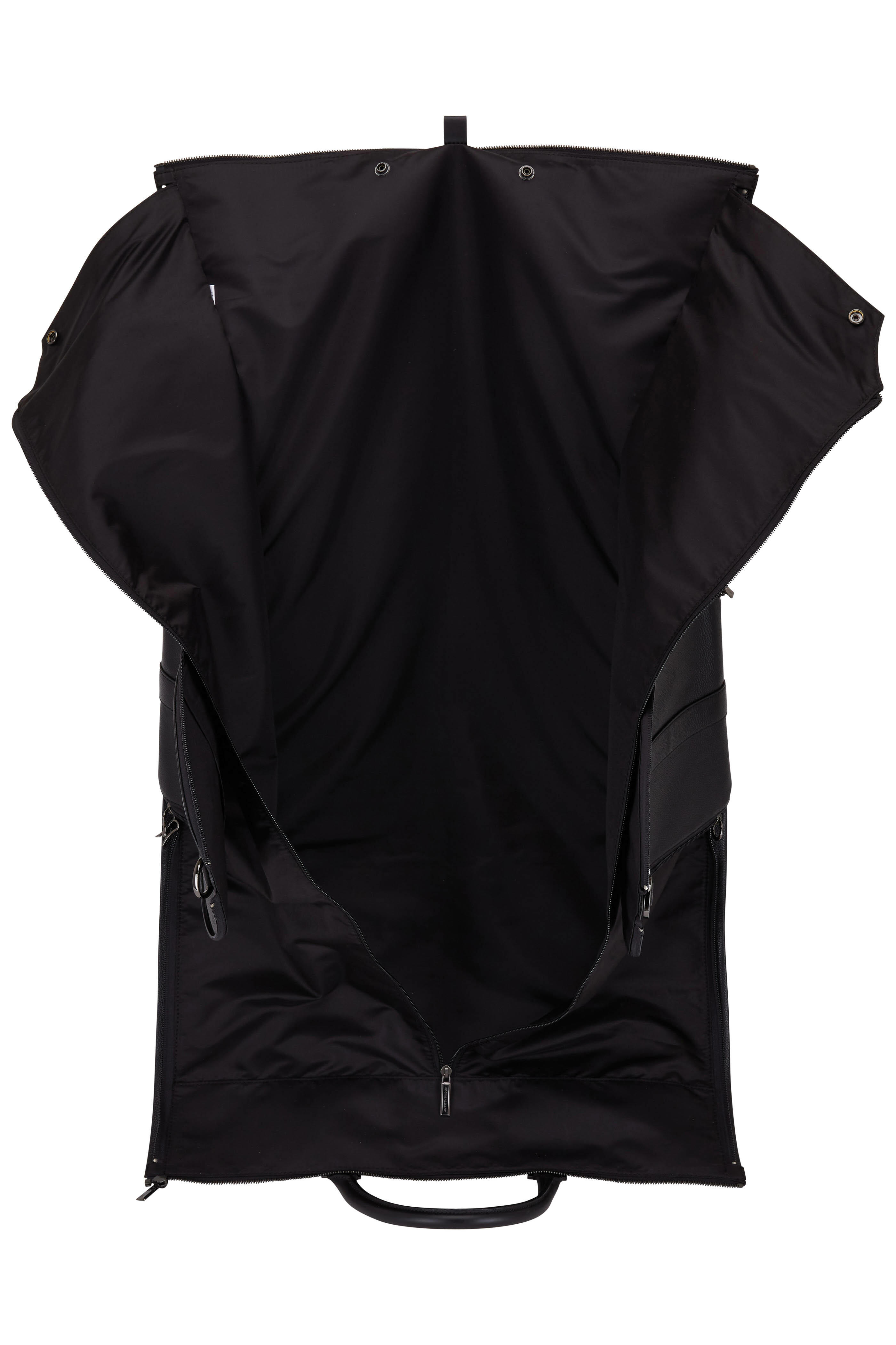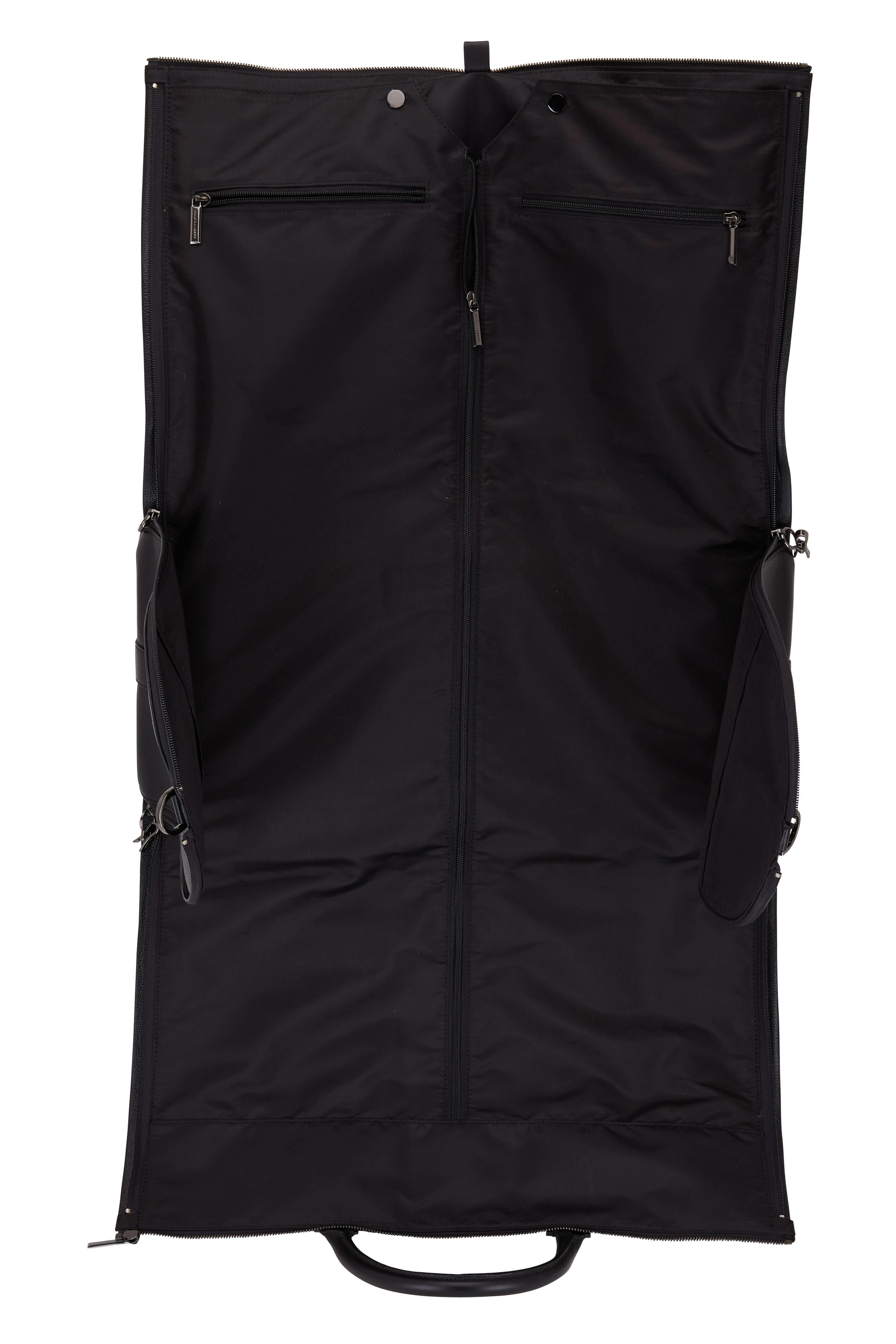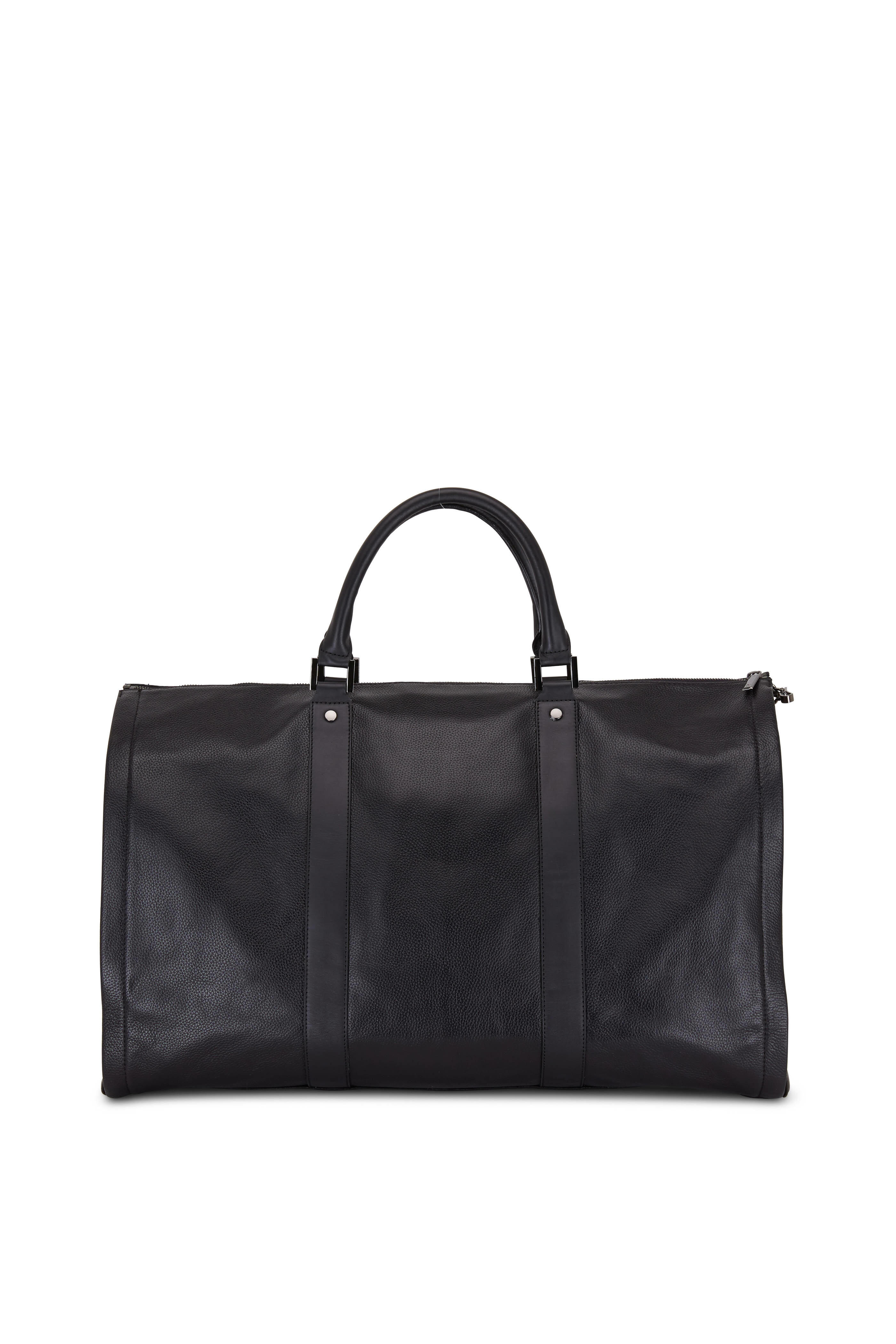 Pebbled leather. Zip closure. Two round top handles; detachable shoulder strap. Meet domestic and international carry-on requirements. Fold flat design. Can fit up to two size 46 suits. Shoe pockets. Length: 22". Width: 9". Height: 13". Weight: 4¼ lbs.
