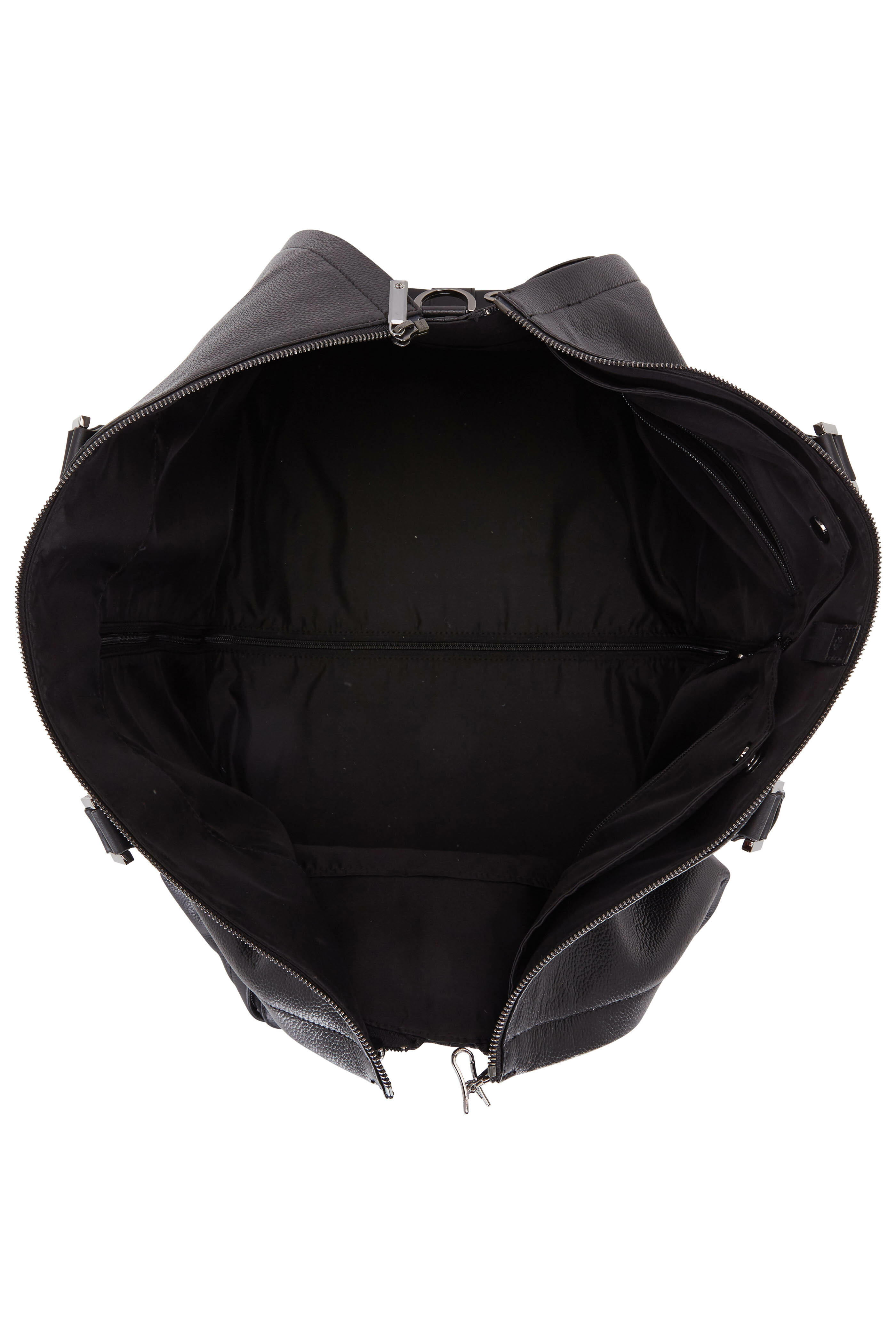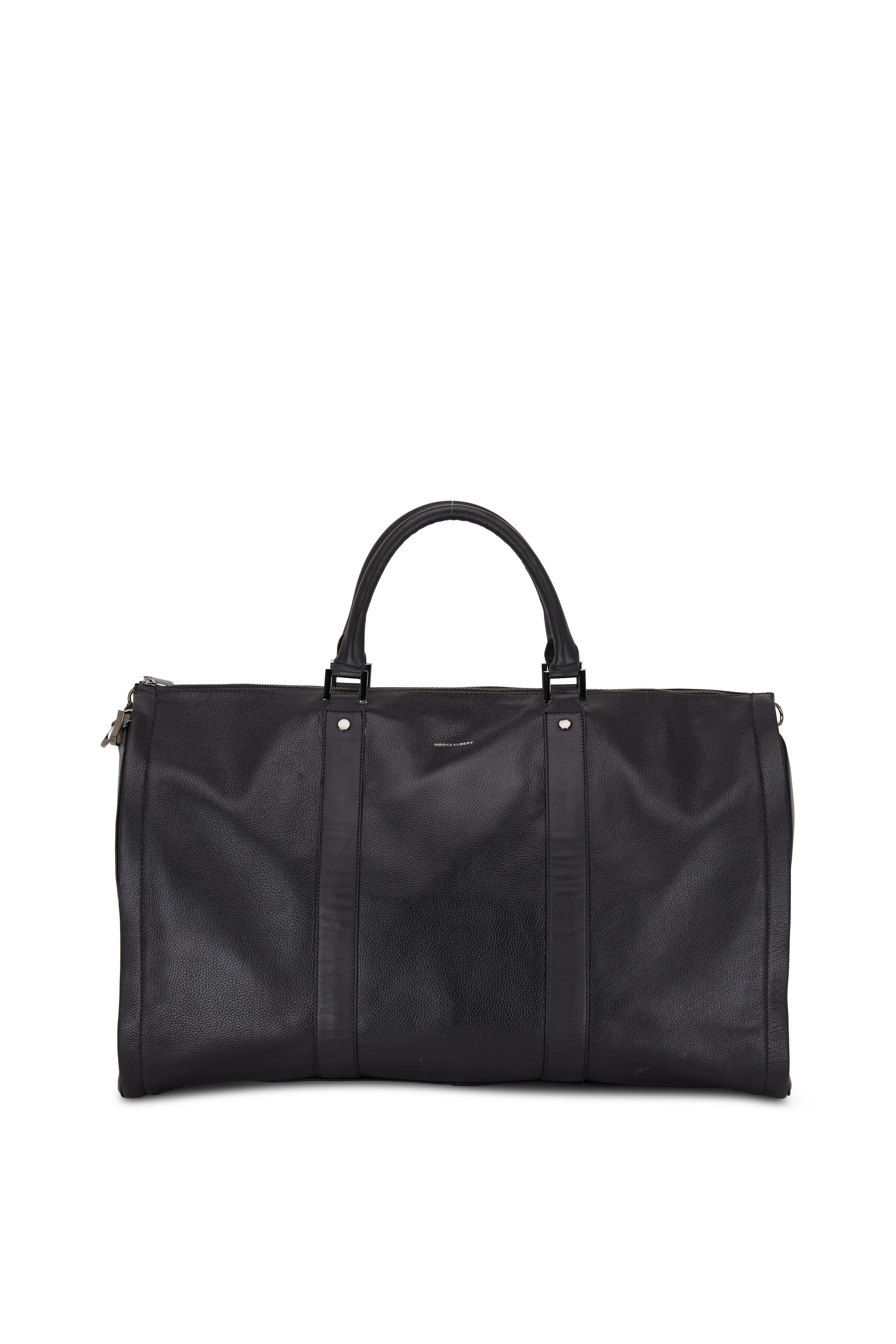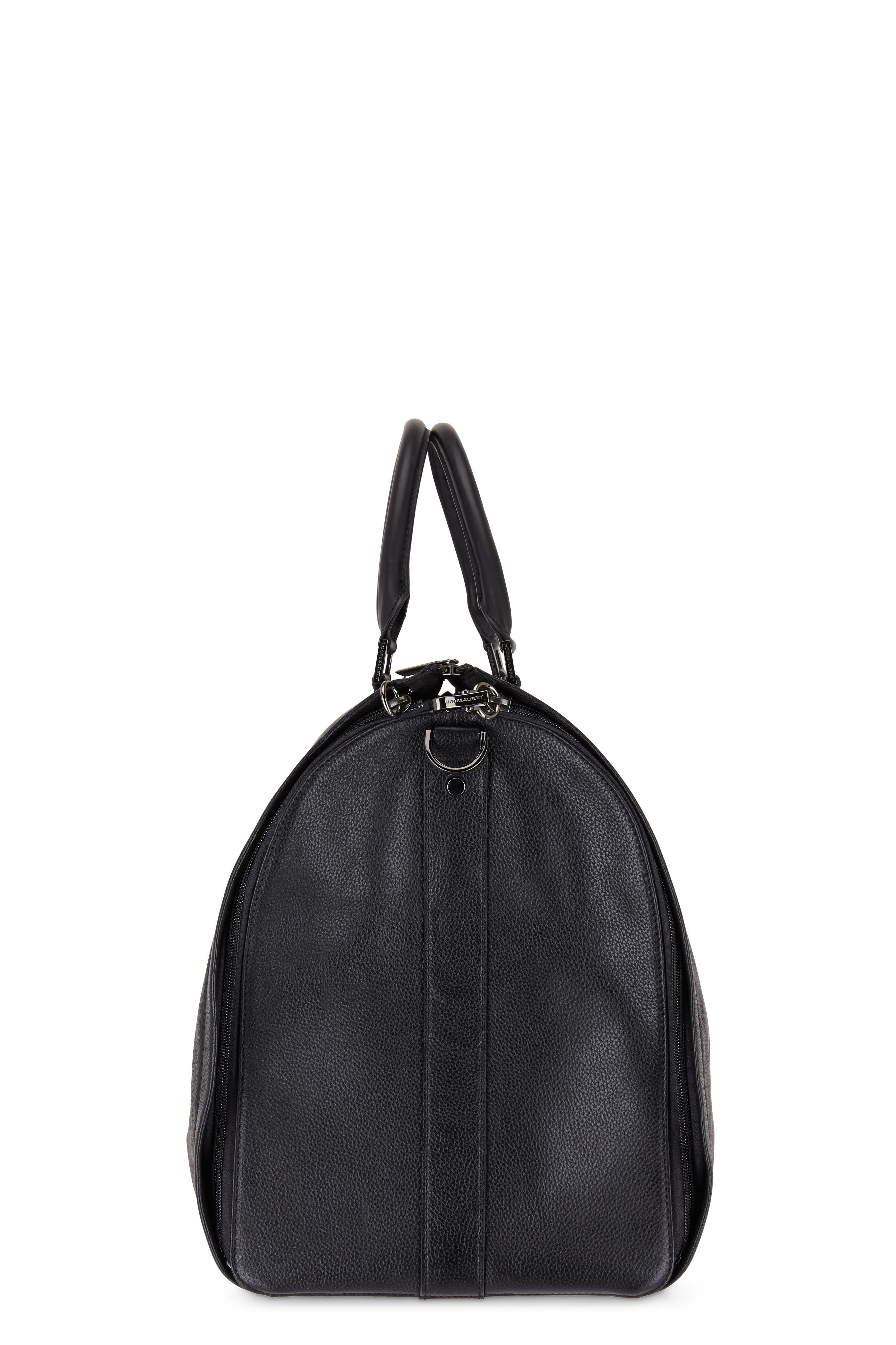 Pebbled leather. Zip closure. Two round top handles; detachable shoulder strap. Meet domestic and international carry-on requirements. Fold flat design. Can fit up to two size 46 suits. Shoe pockets. Length: 22". Width: 9". Height: 13". Weight: 4¼ lbs.