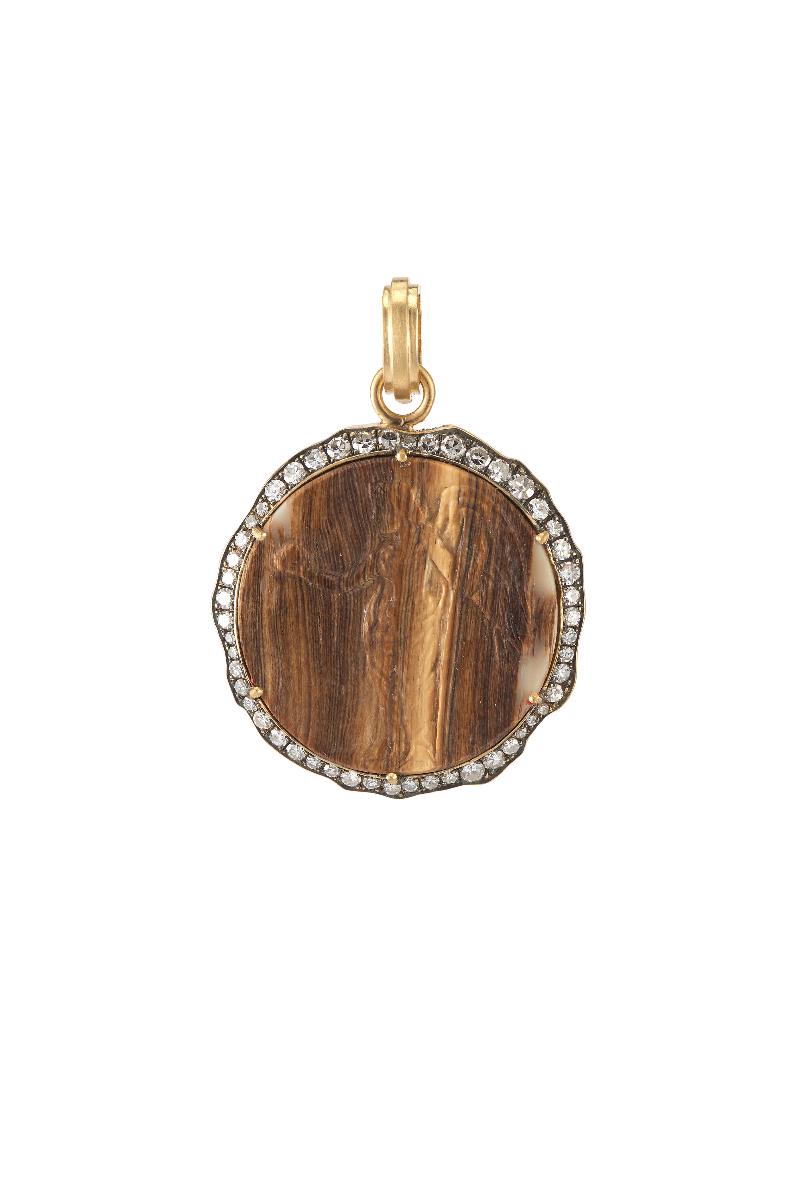 18k yellow gold. 0.90ct square cut diamonds. Virgo carved coral.