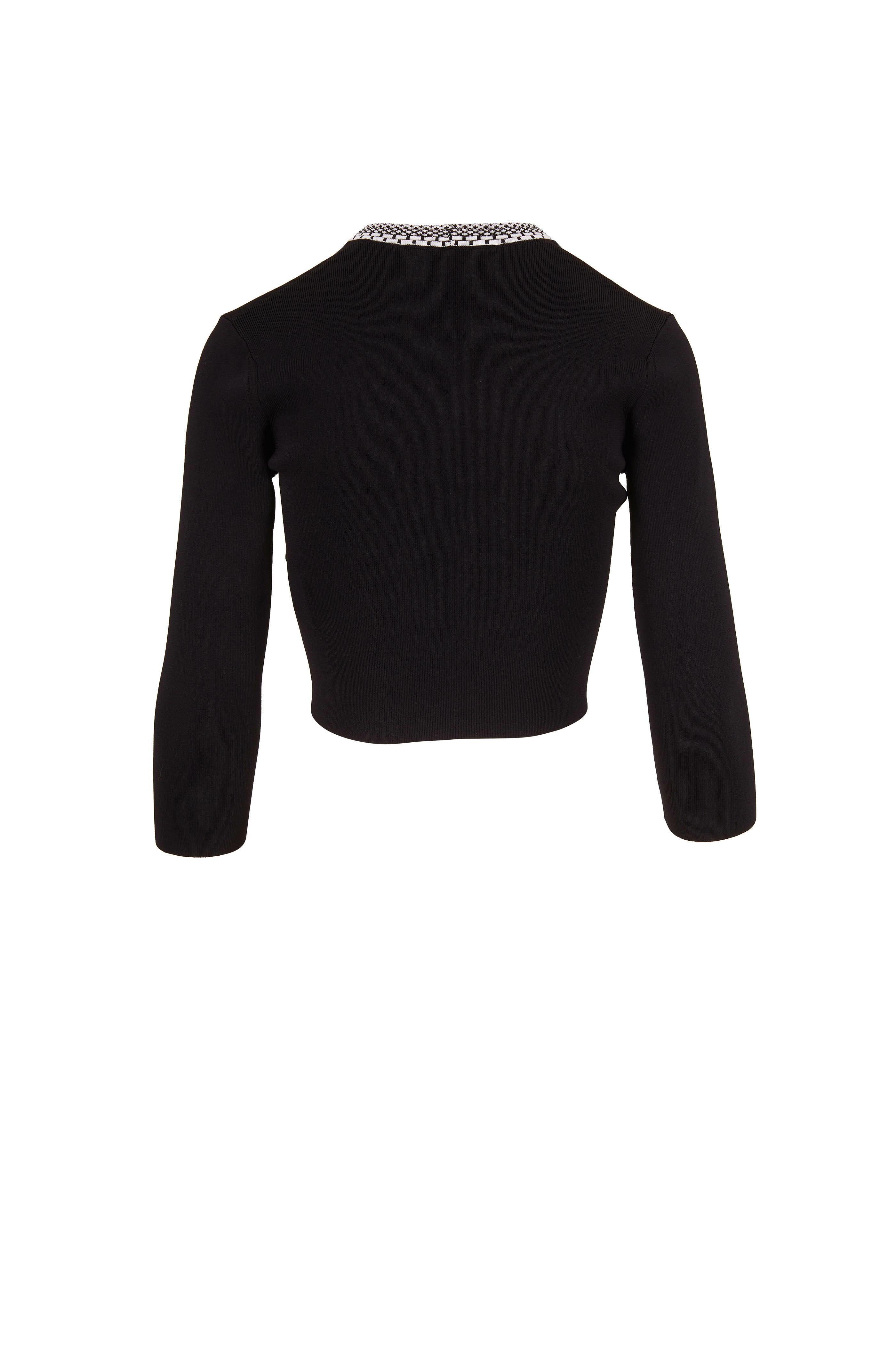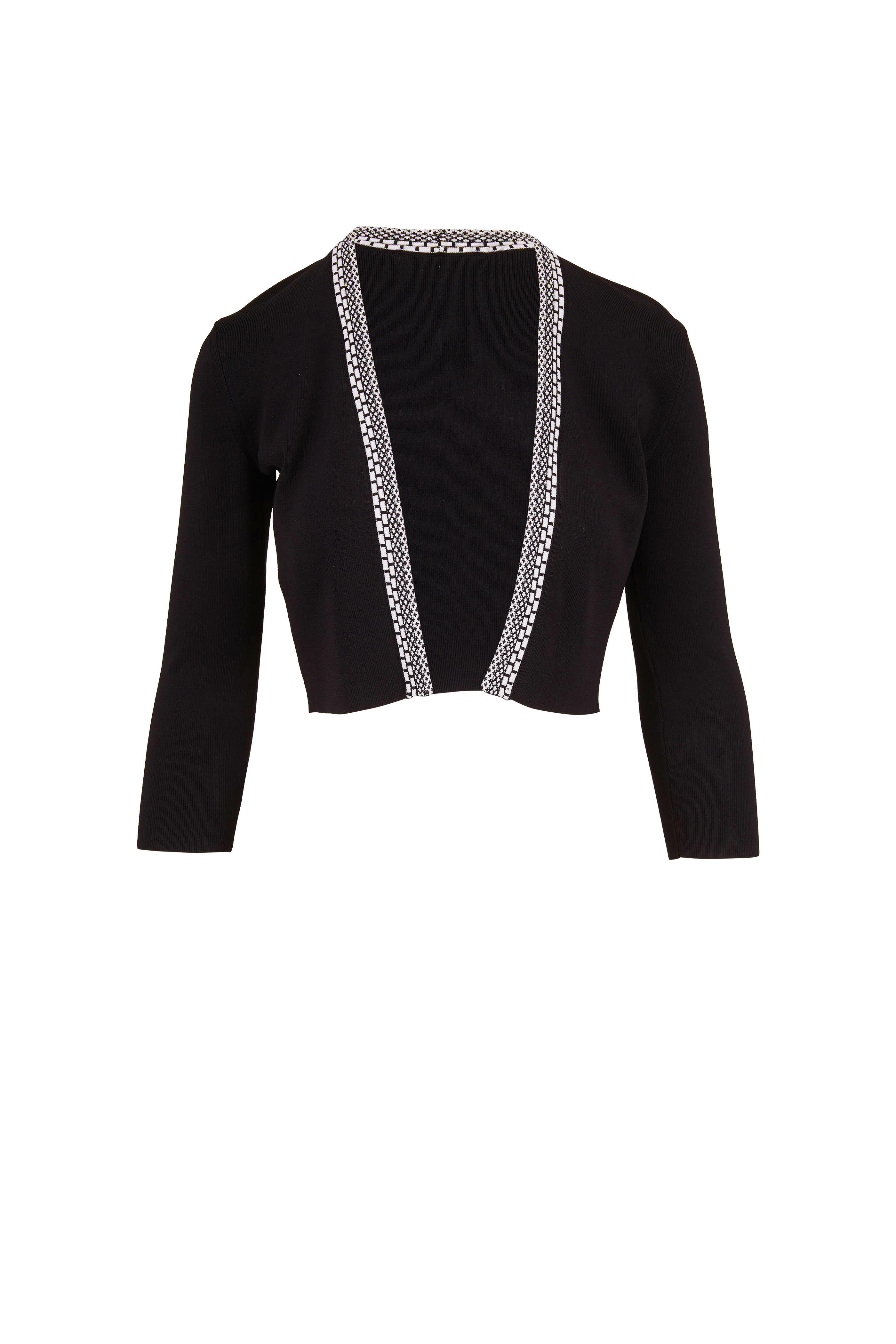 • Paule Ka - Black Knit Open Front Crop Cardigan
