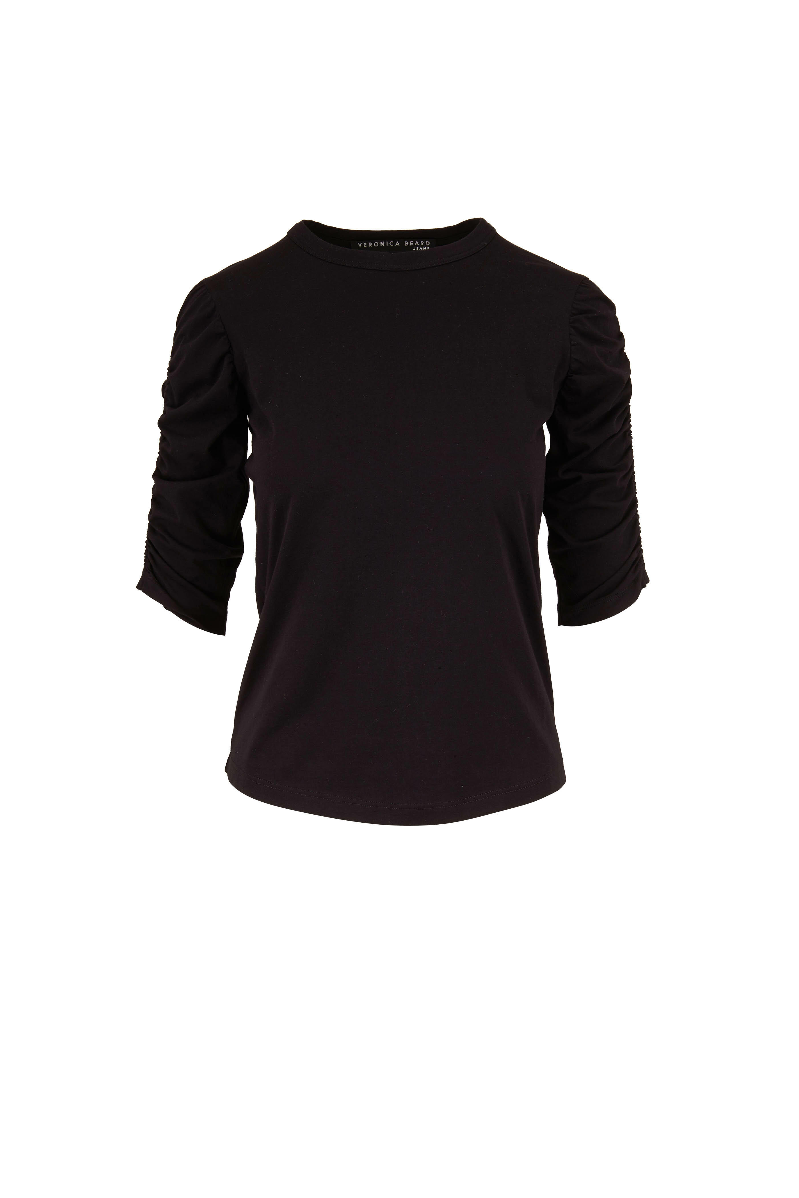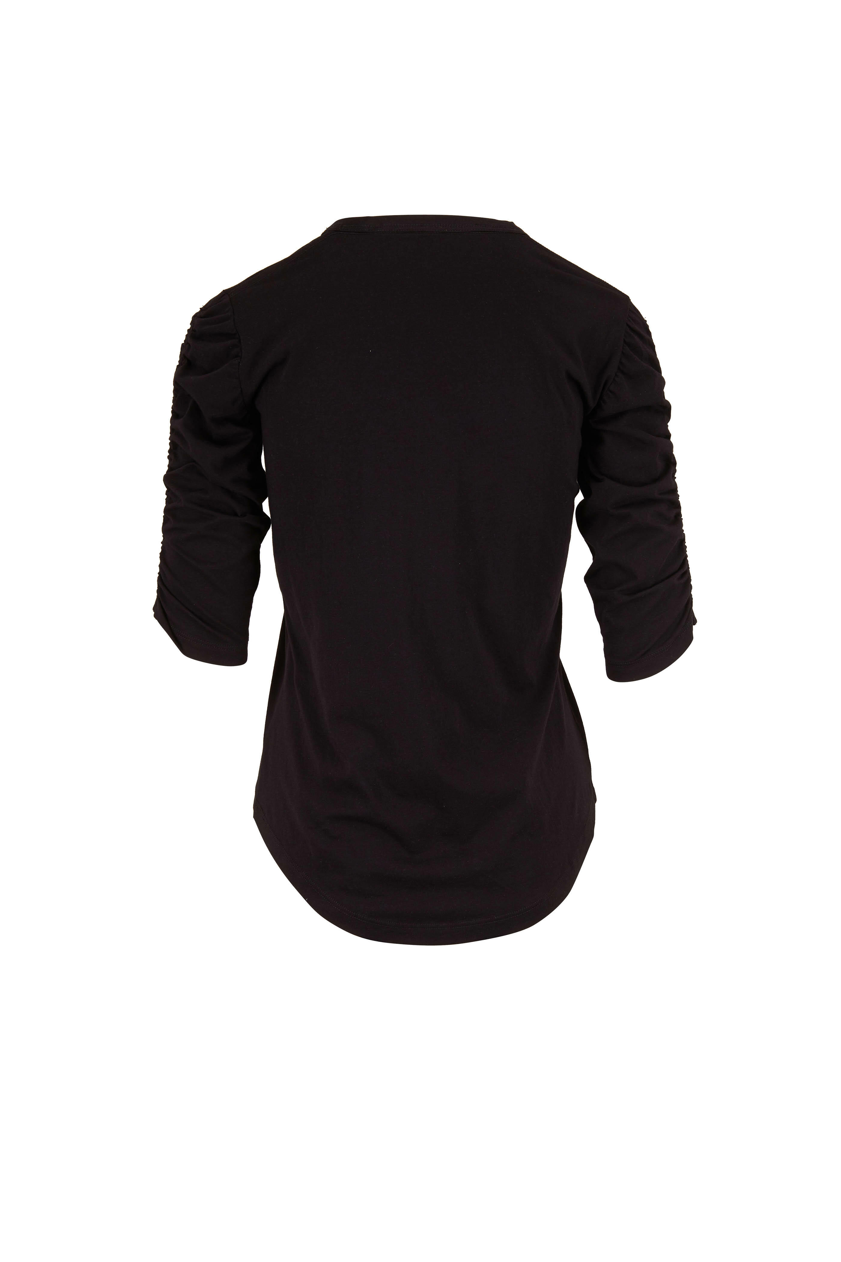Waldorf Black Pima Cotton Ruched Sleeve Top