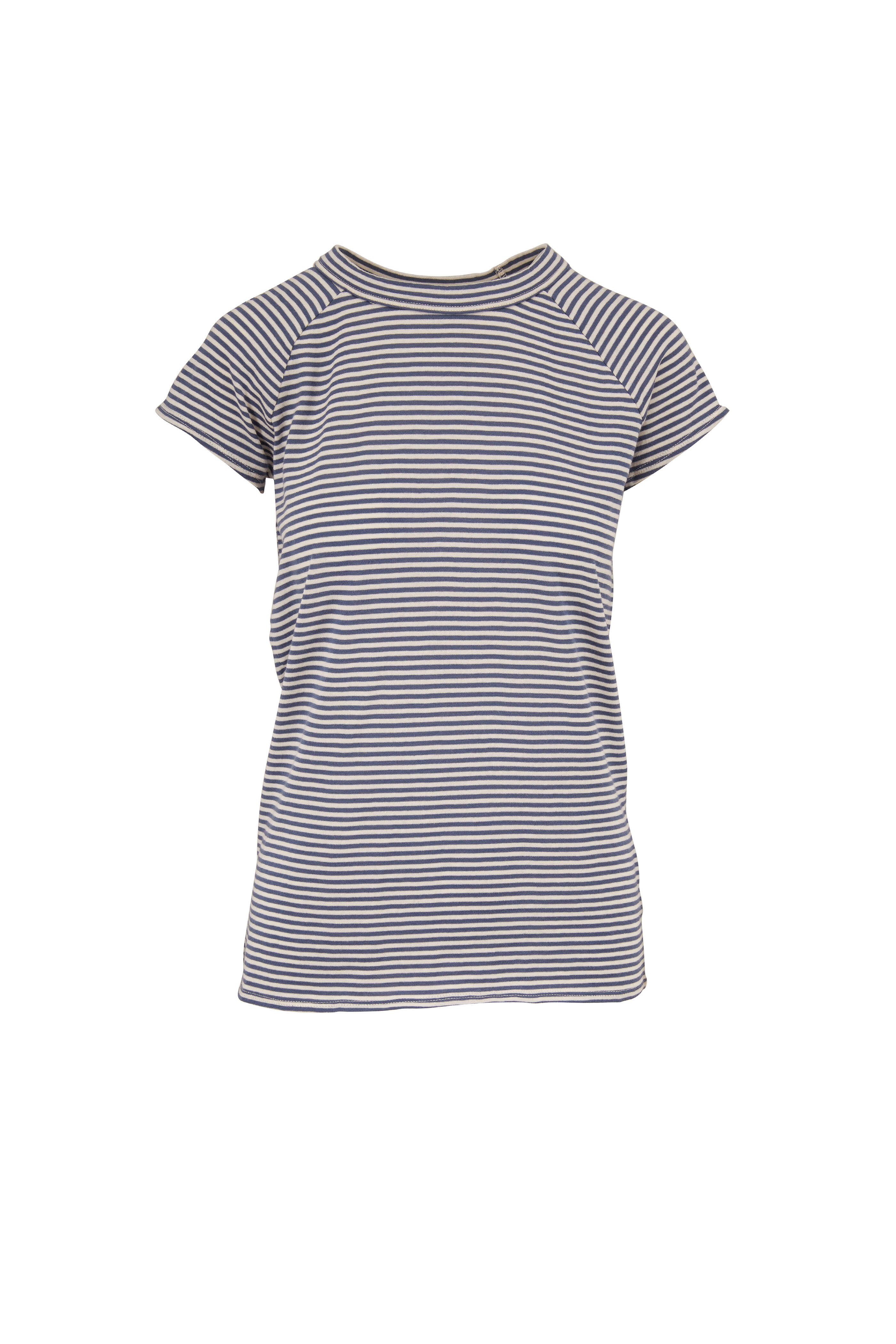 • Nili Lotan - Sailor Blue & White Short Sleeve Baseball T-Shirt