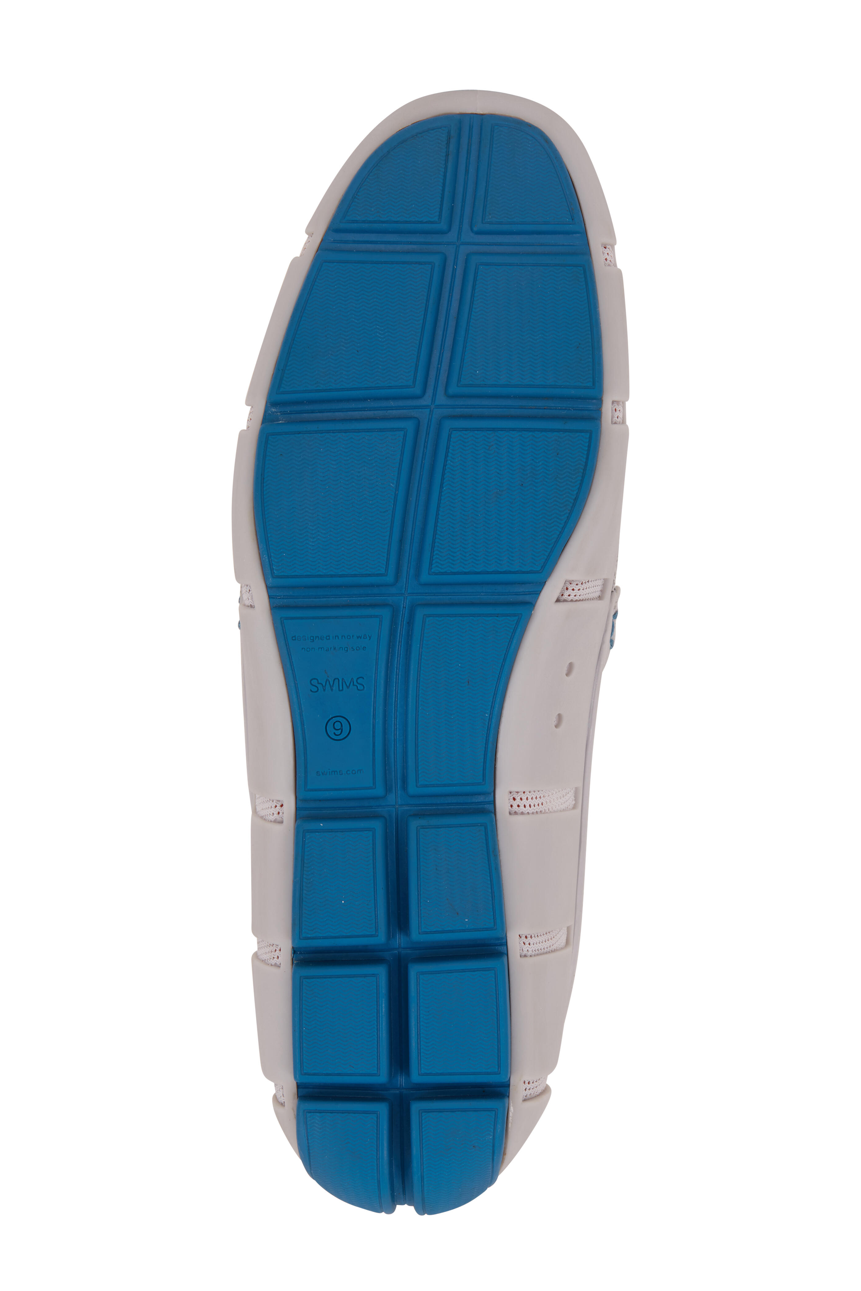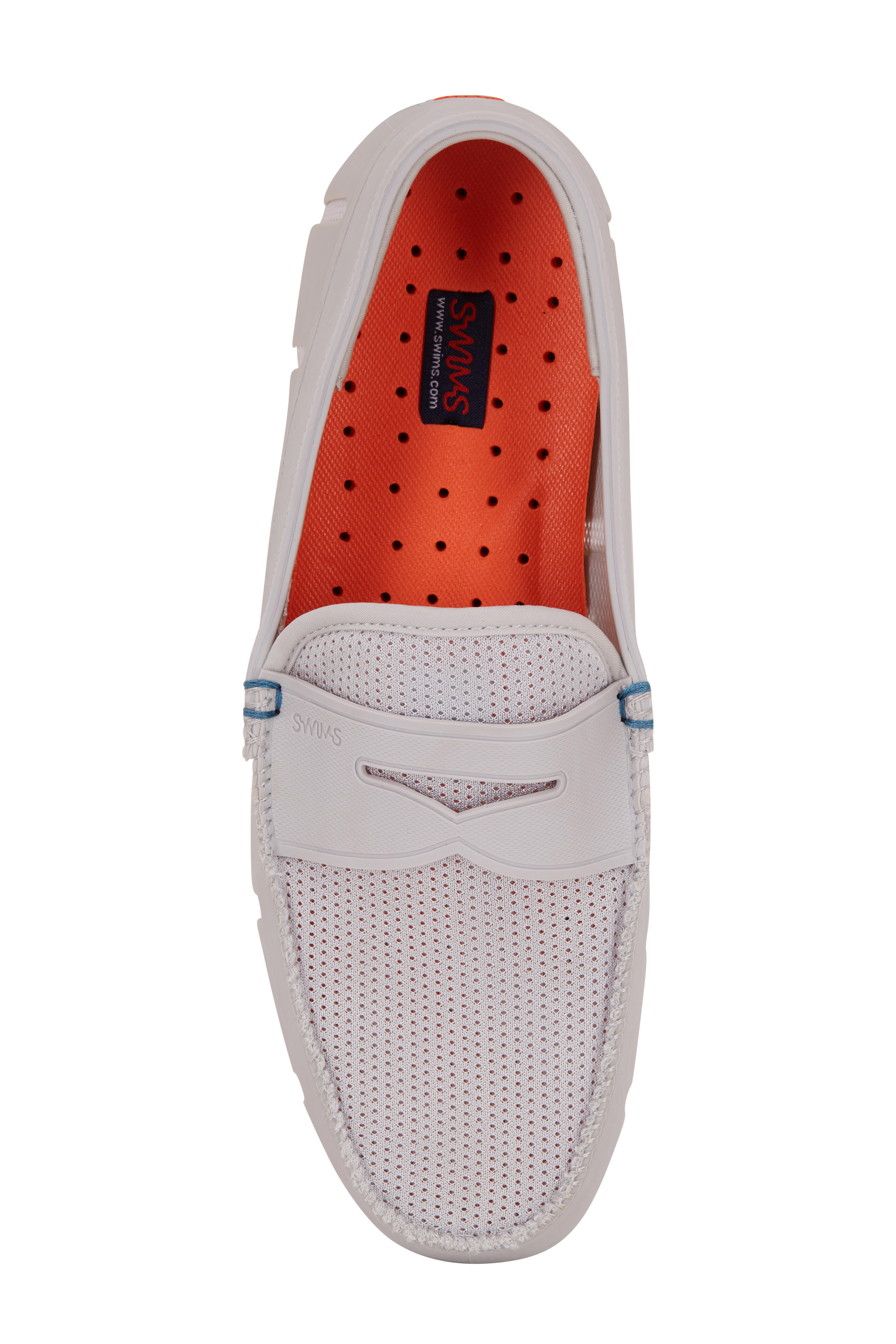 Mesh and rubber upper. Moc toe. Penny strap at vamp. Unlined, detachable padded insole. Contrast color pebbled rubber sole. Imported.