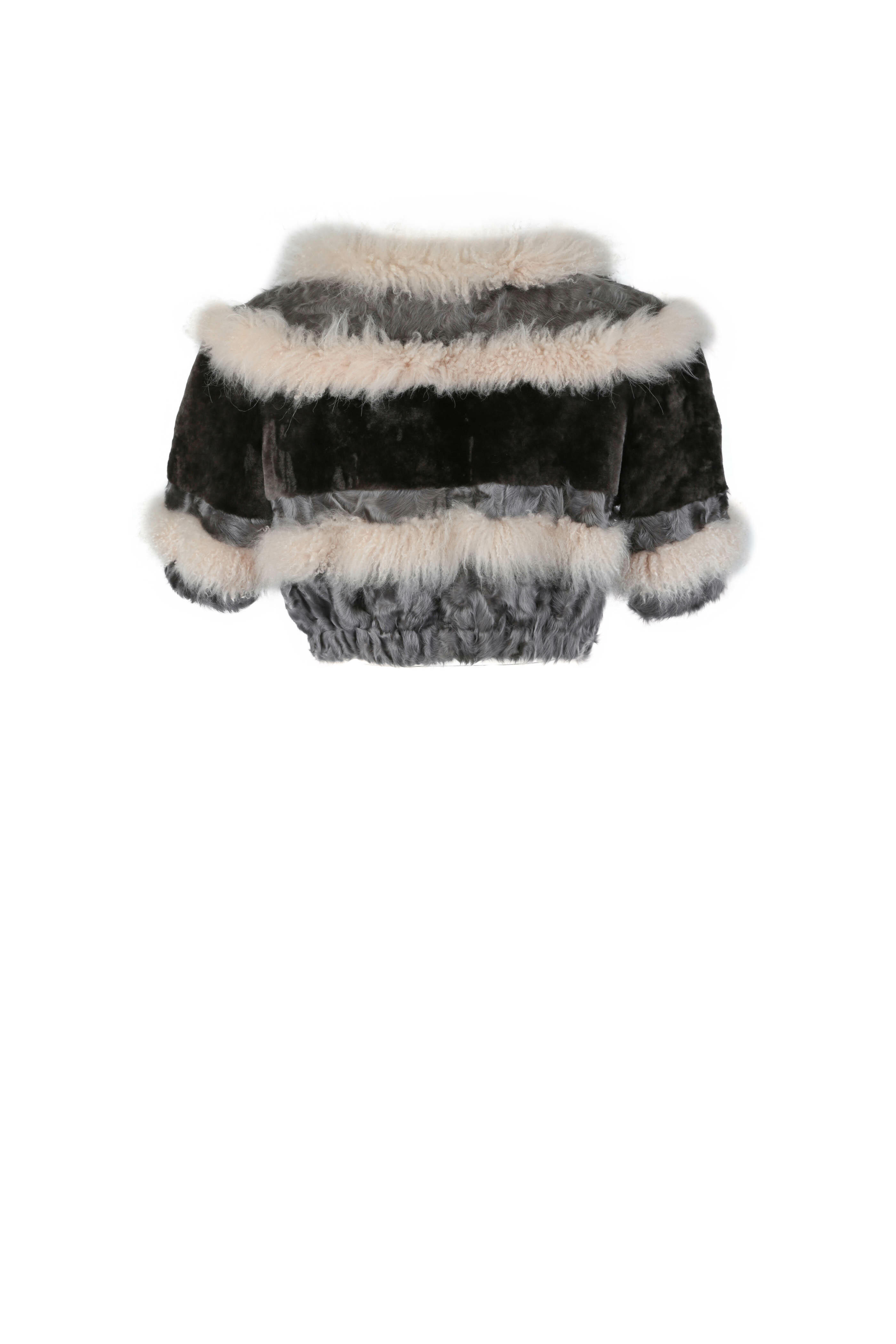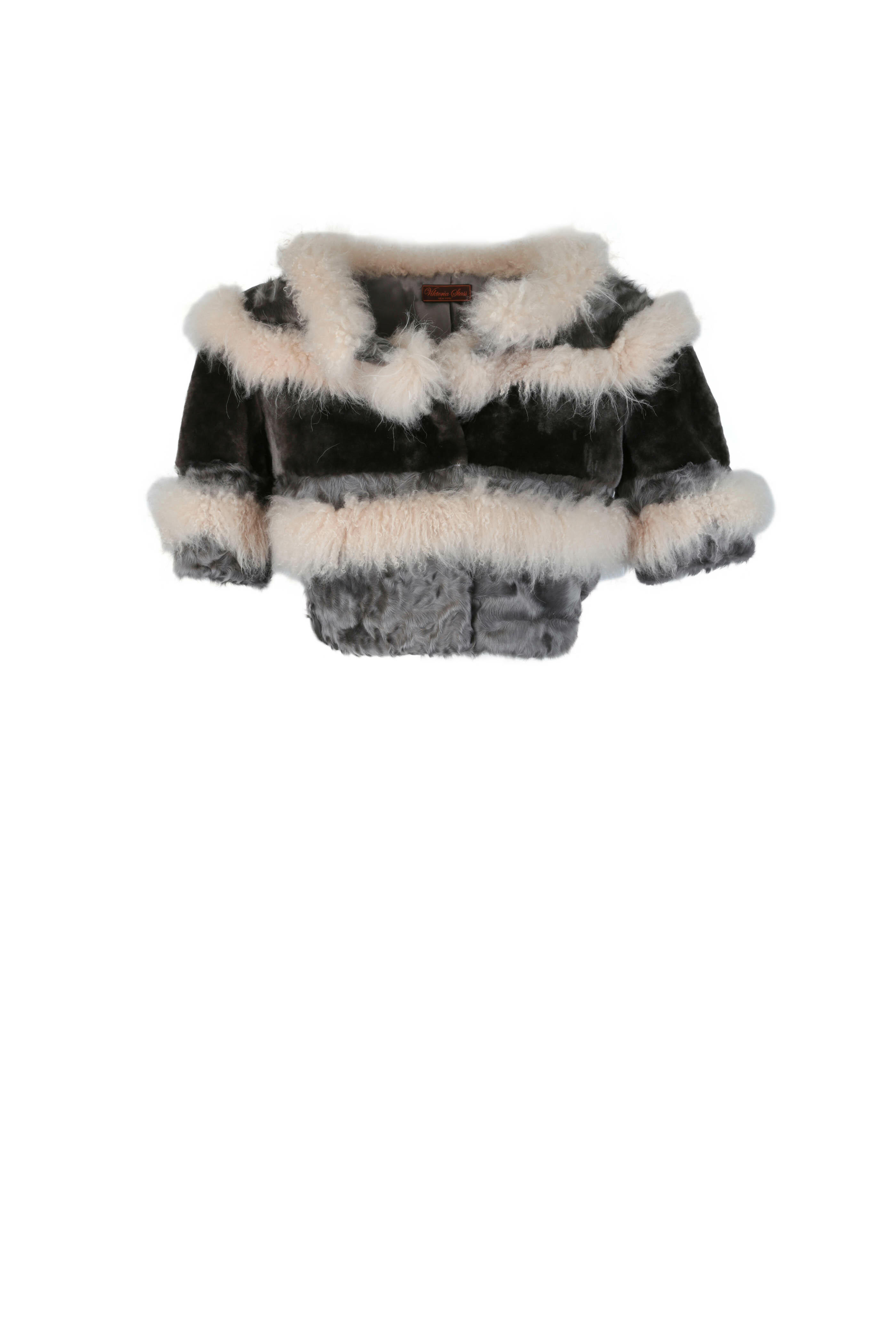 Gray & Beige Cashmere & Fur Bolero Jacket