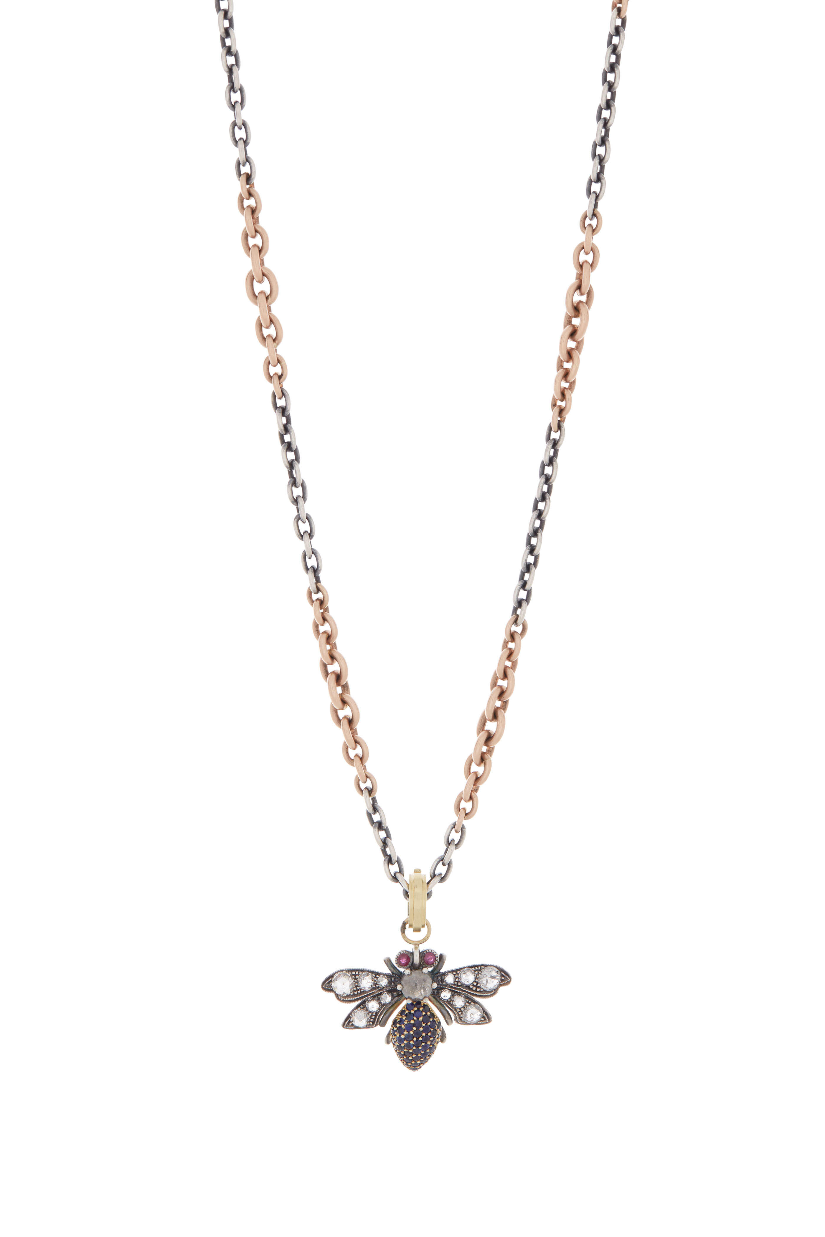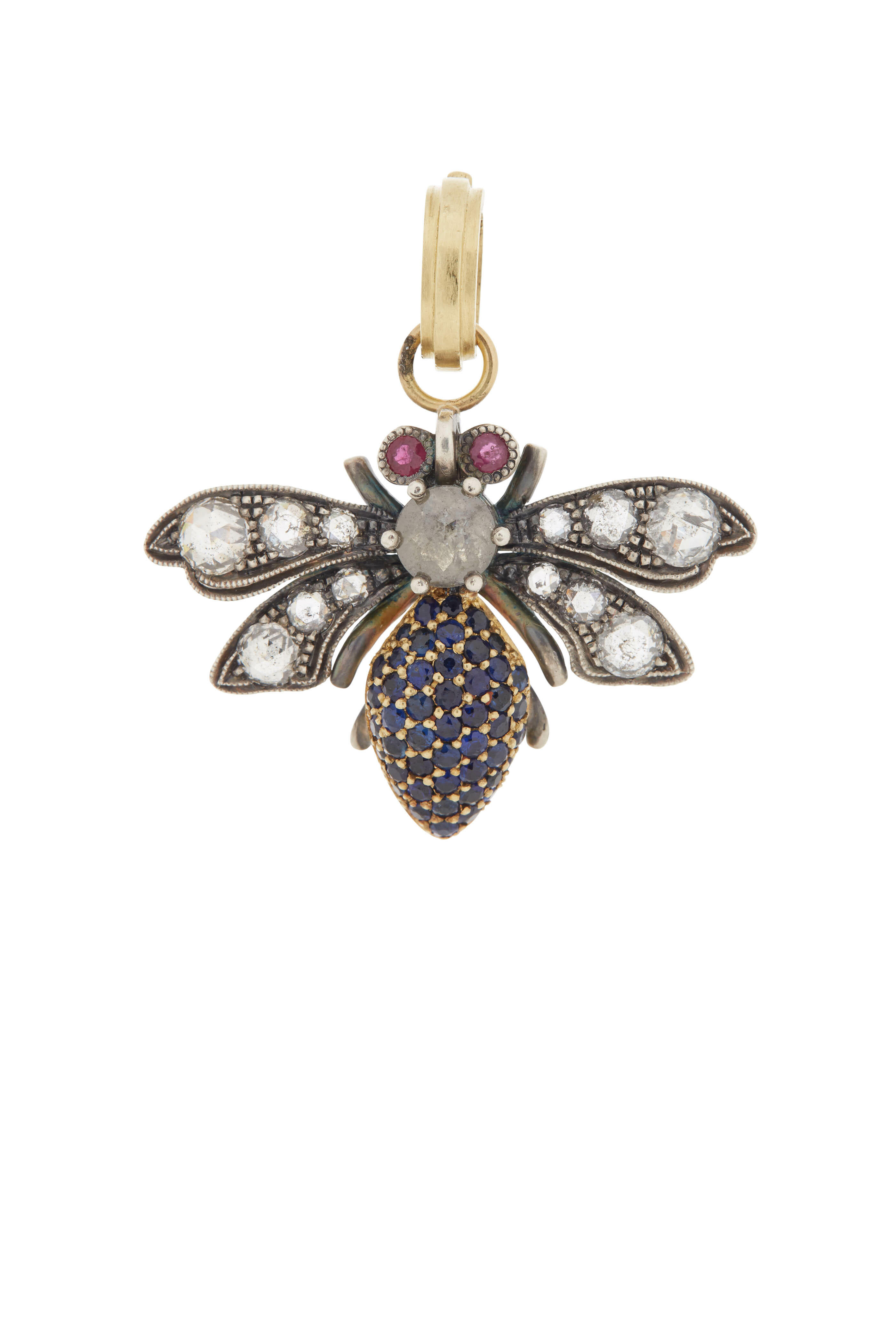 18K Yellow Gold & Silver Diamond Bee Pendant