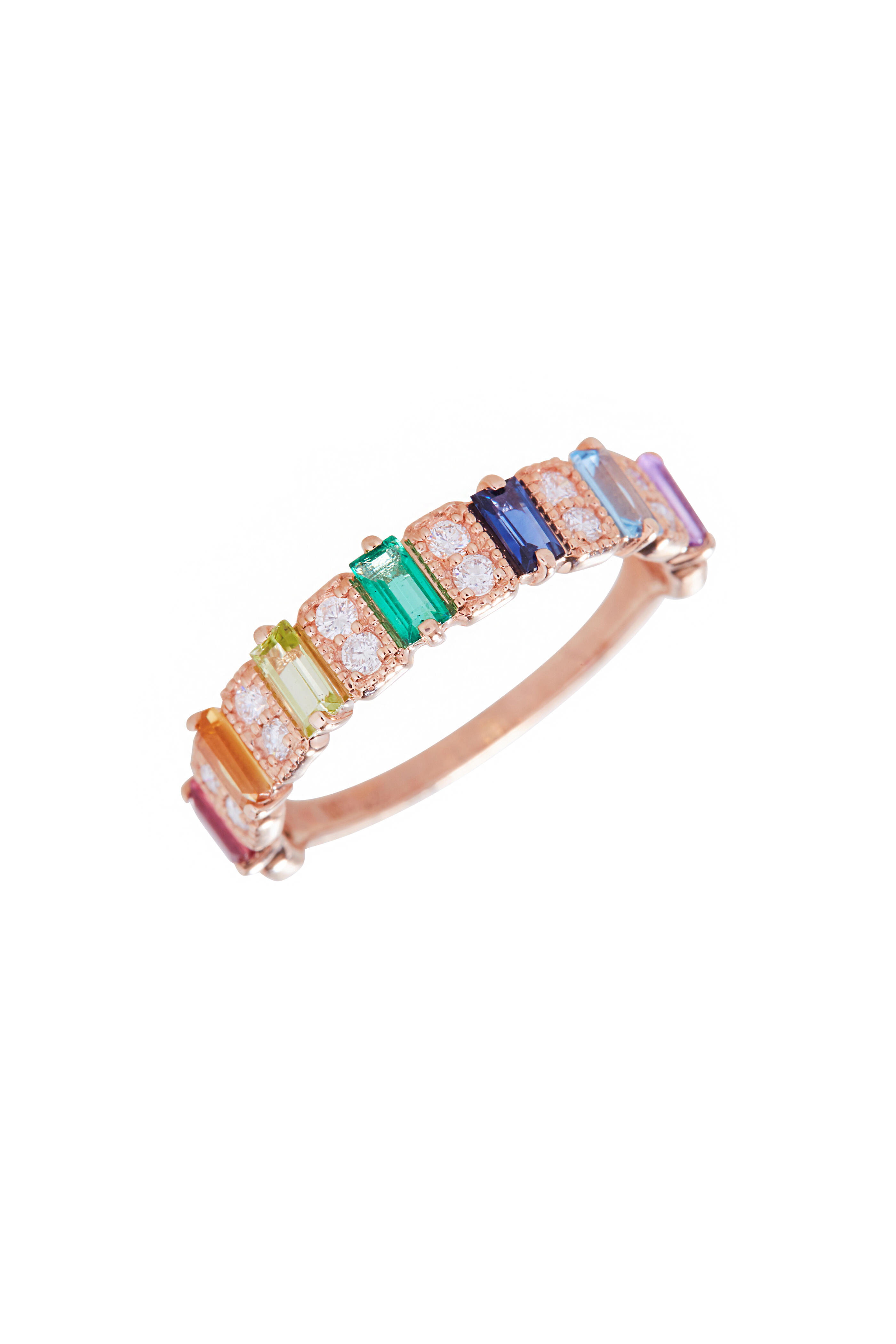 14K Rose Gold Diamond & Rainbow Sapphire Ring