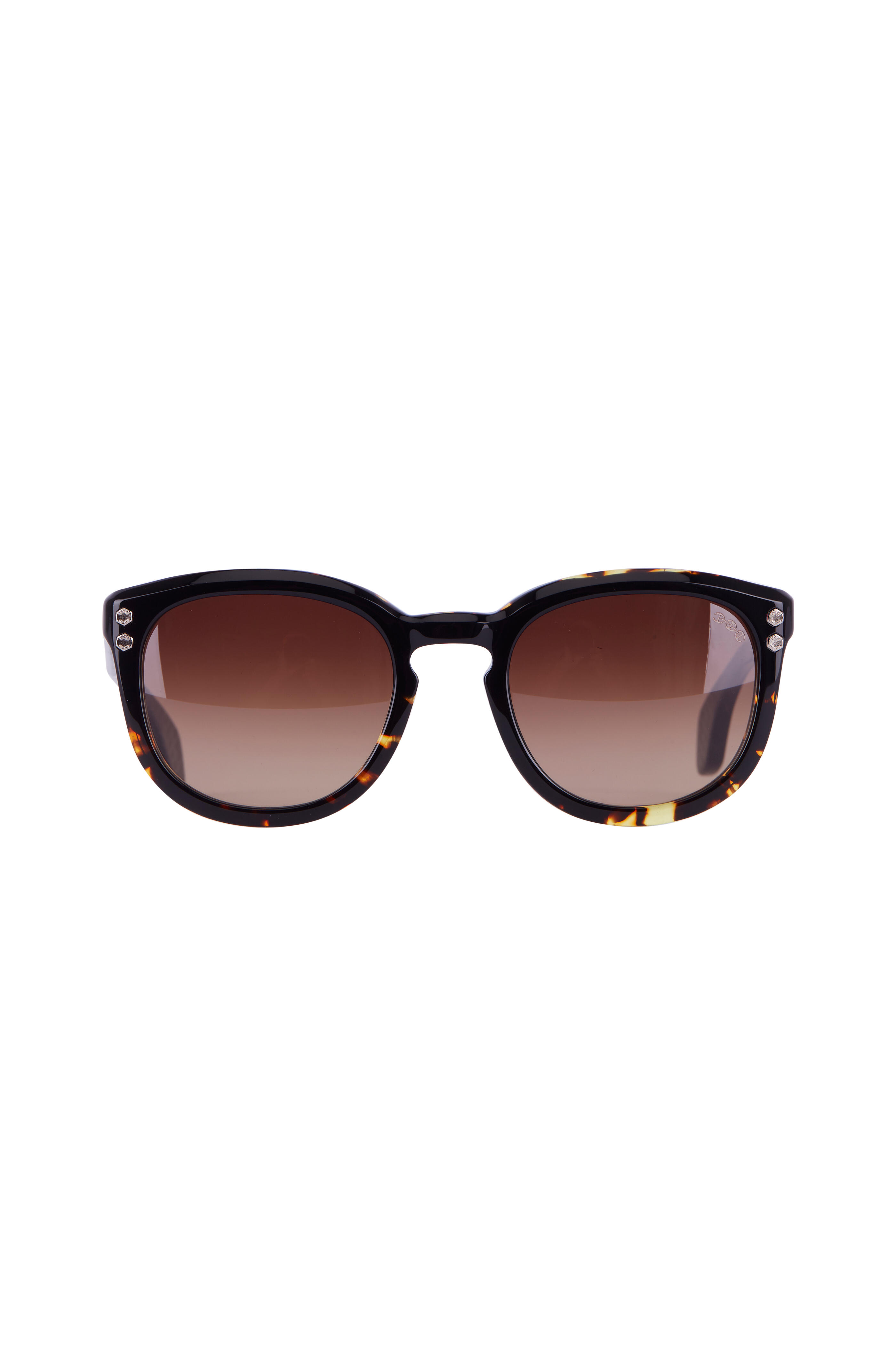 Frame material: acetate. Frame features: 24k gold. Lens: Brown Gradient. Handmade in Japan. Unisex.