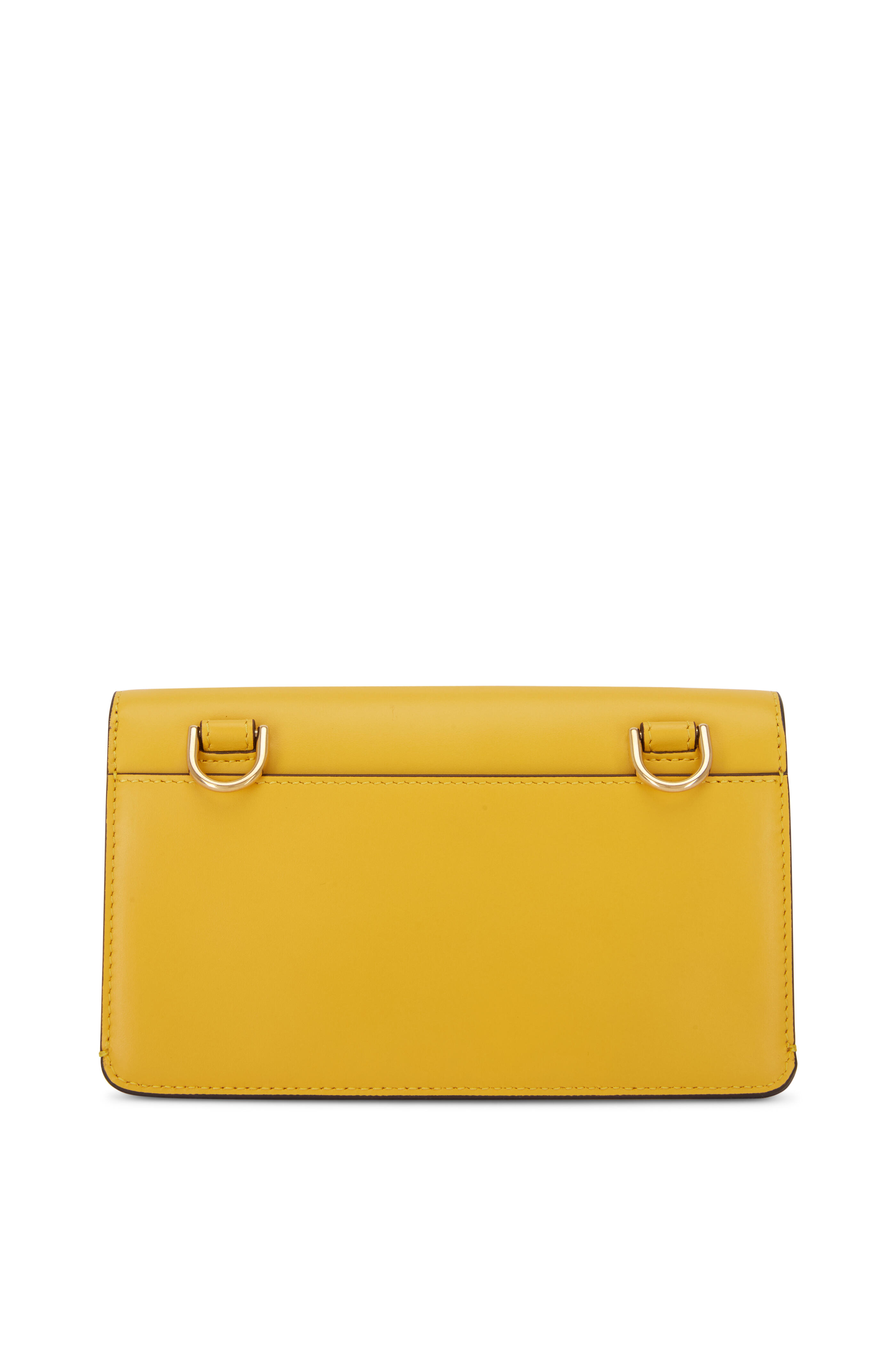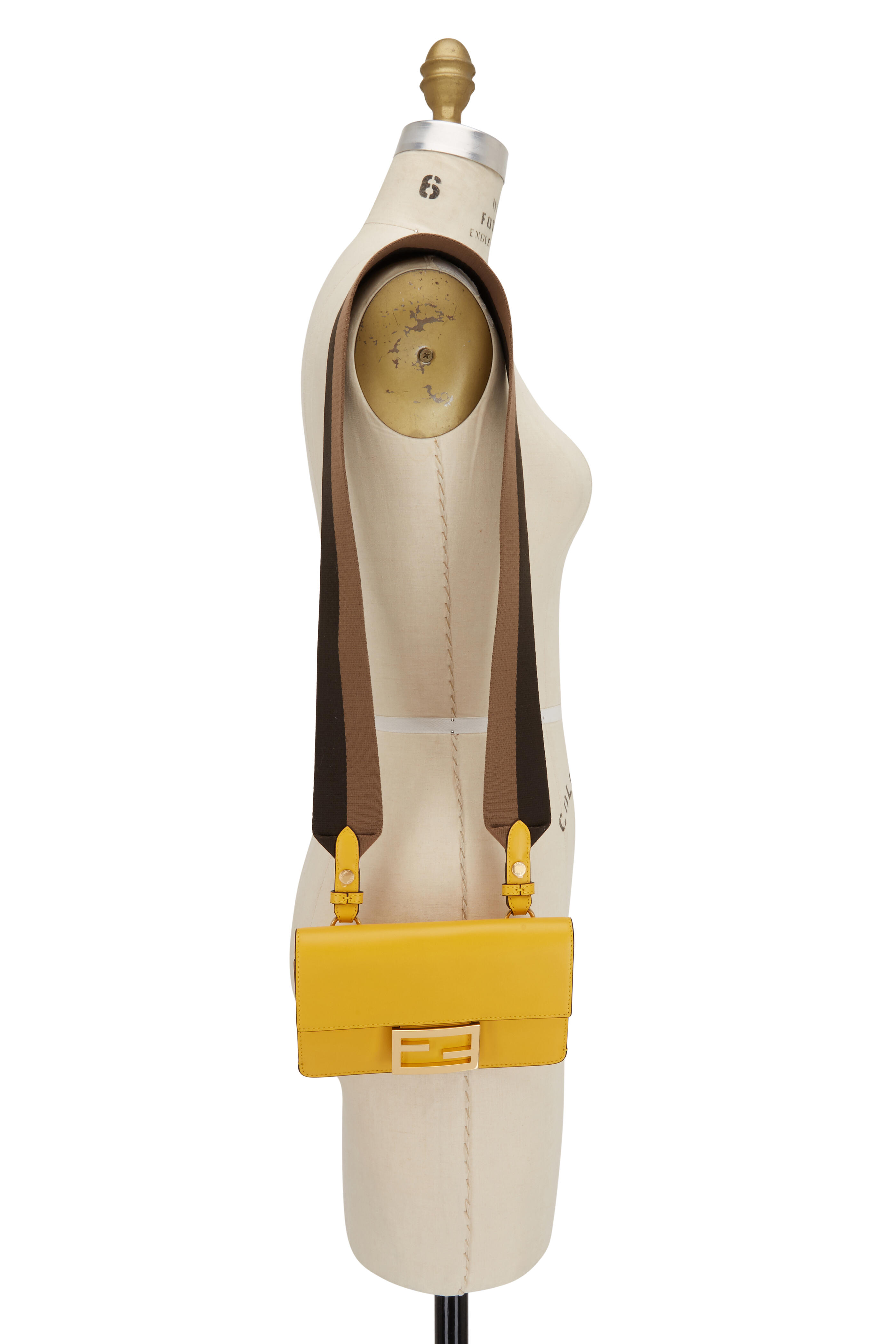 Yellow Leather Pequin Webb Strap Flat Baguette