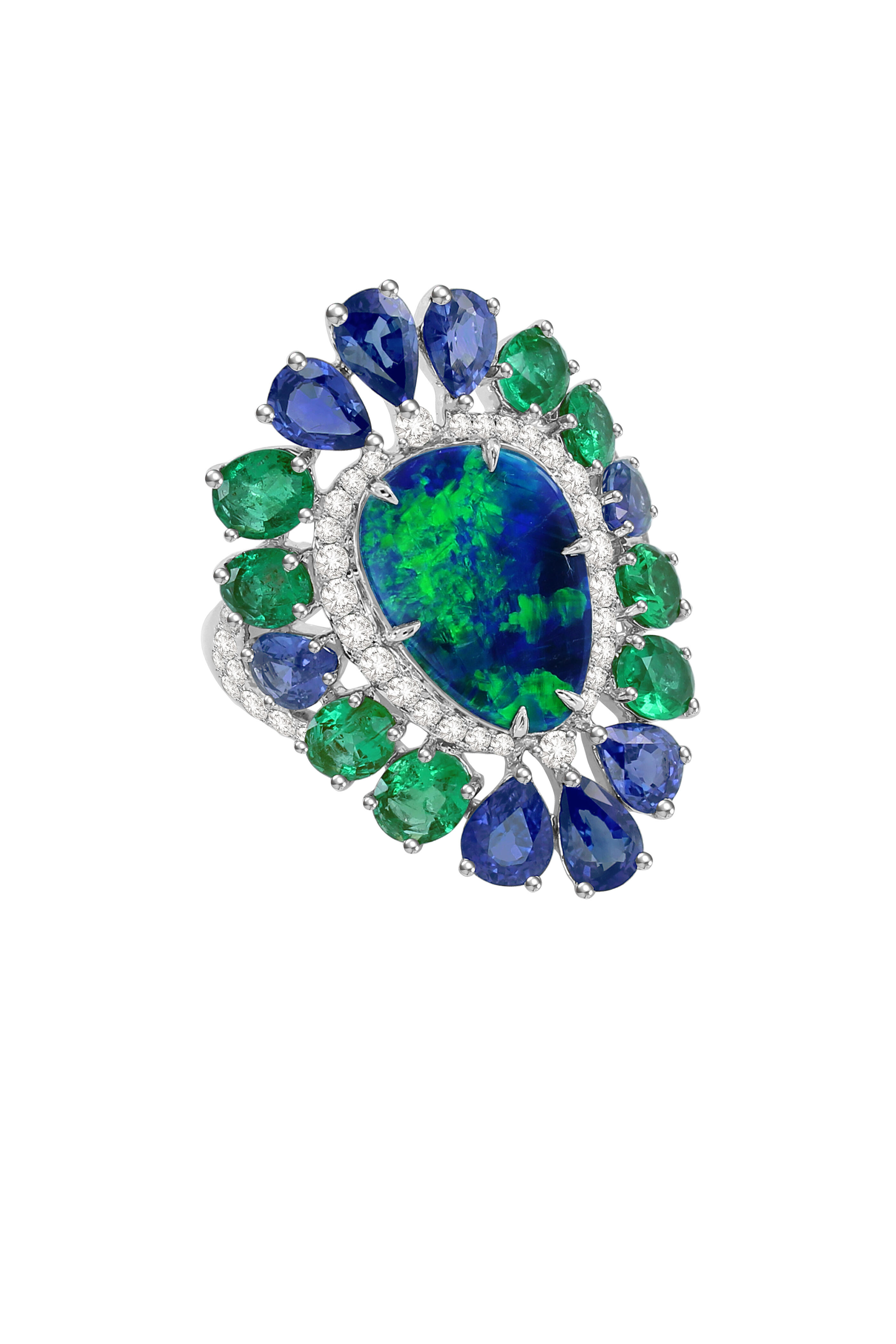 18K White Gold Sapphire & Opal Cocktail Ring
