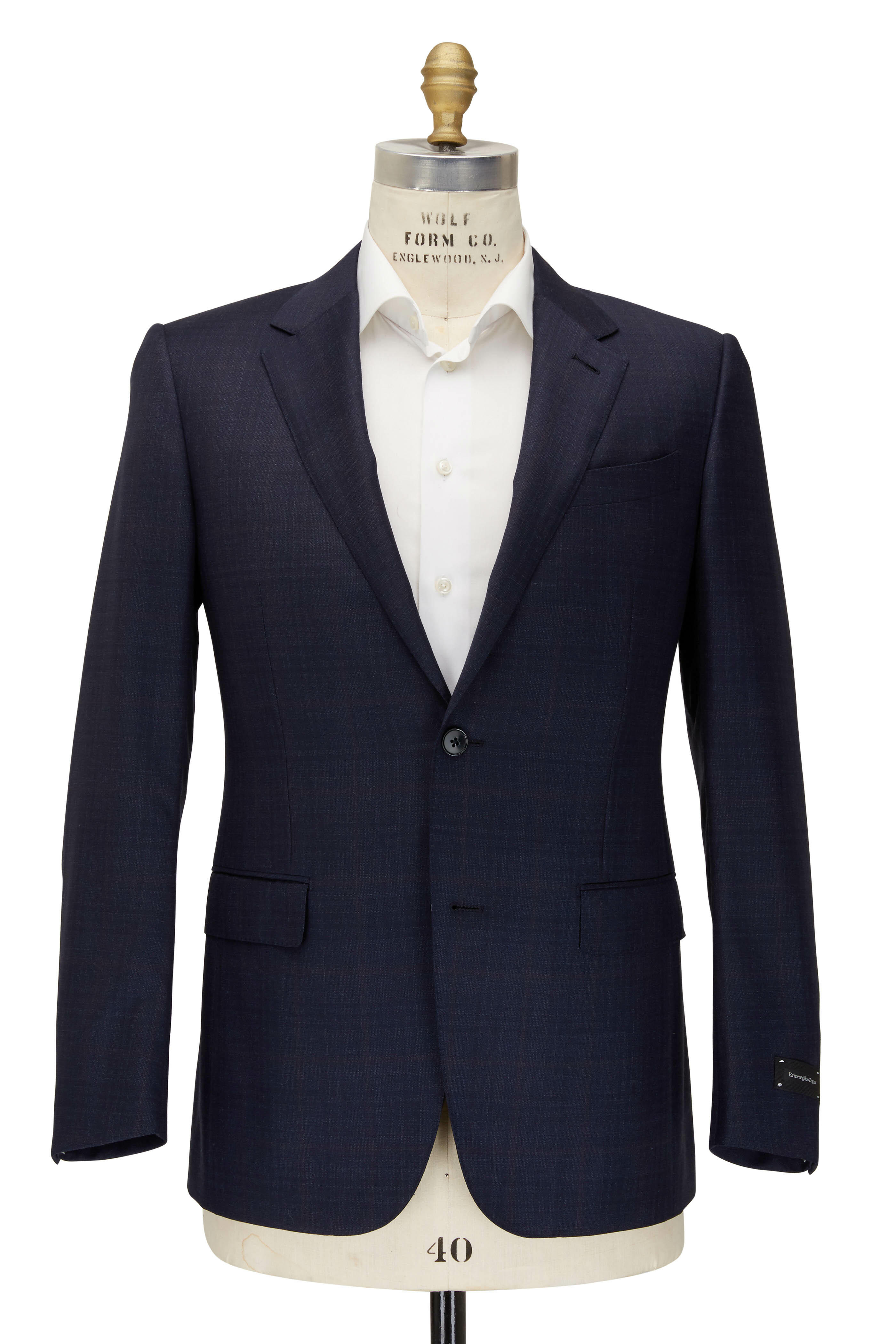 Navy & Brown Windowpane Wool & Silk Suit