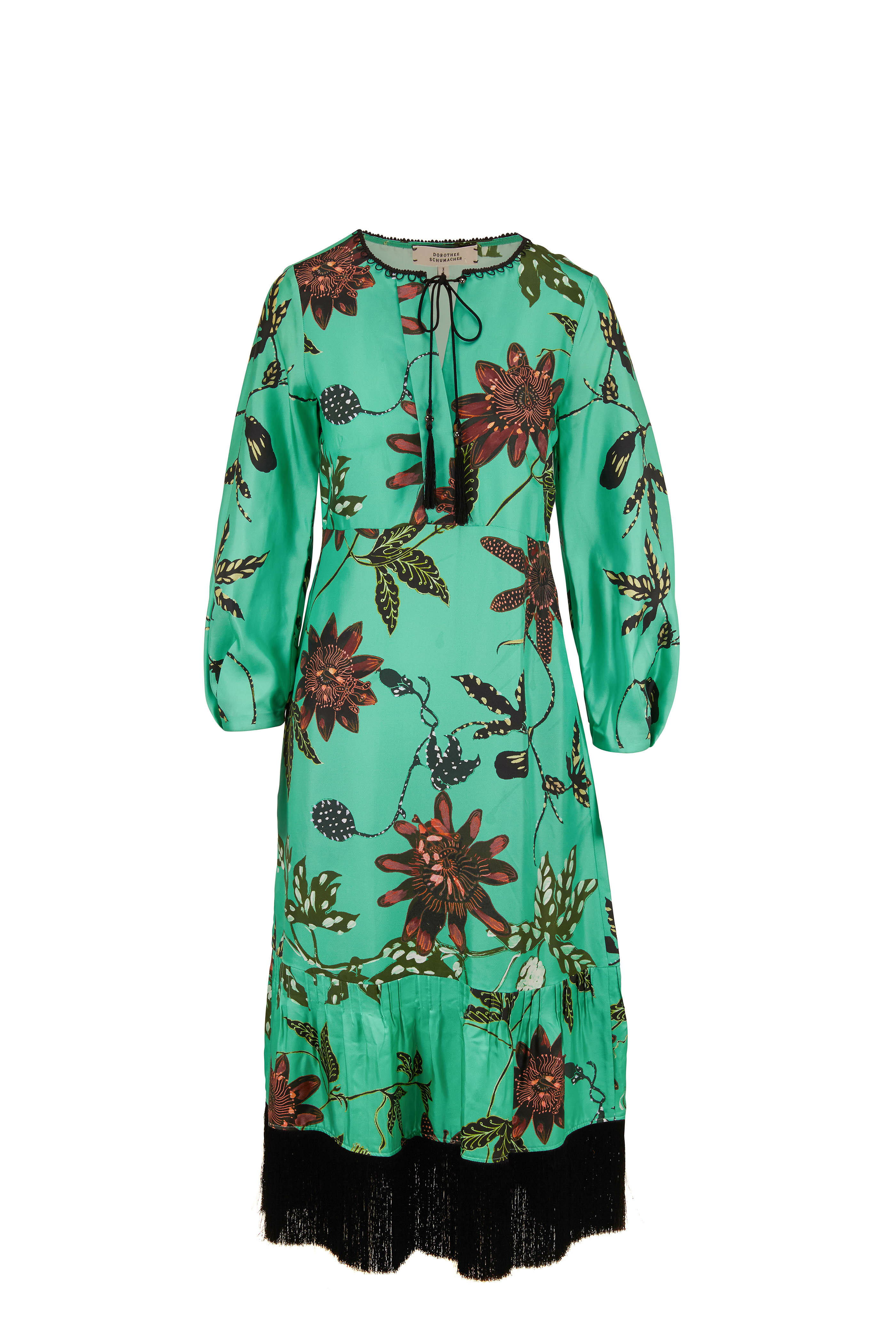 Aloe Powerful Flora Silk Long Sleeve Dress