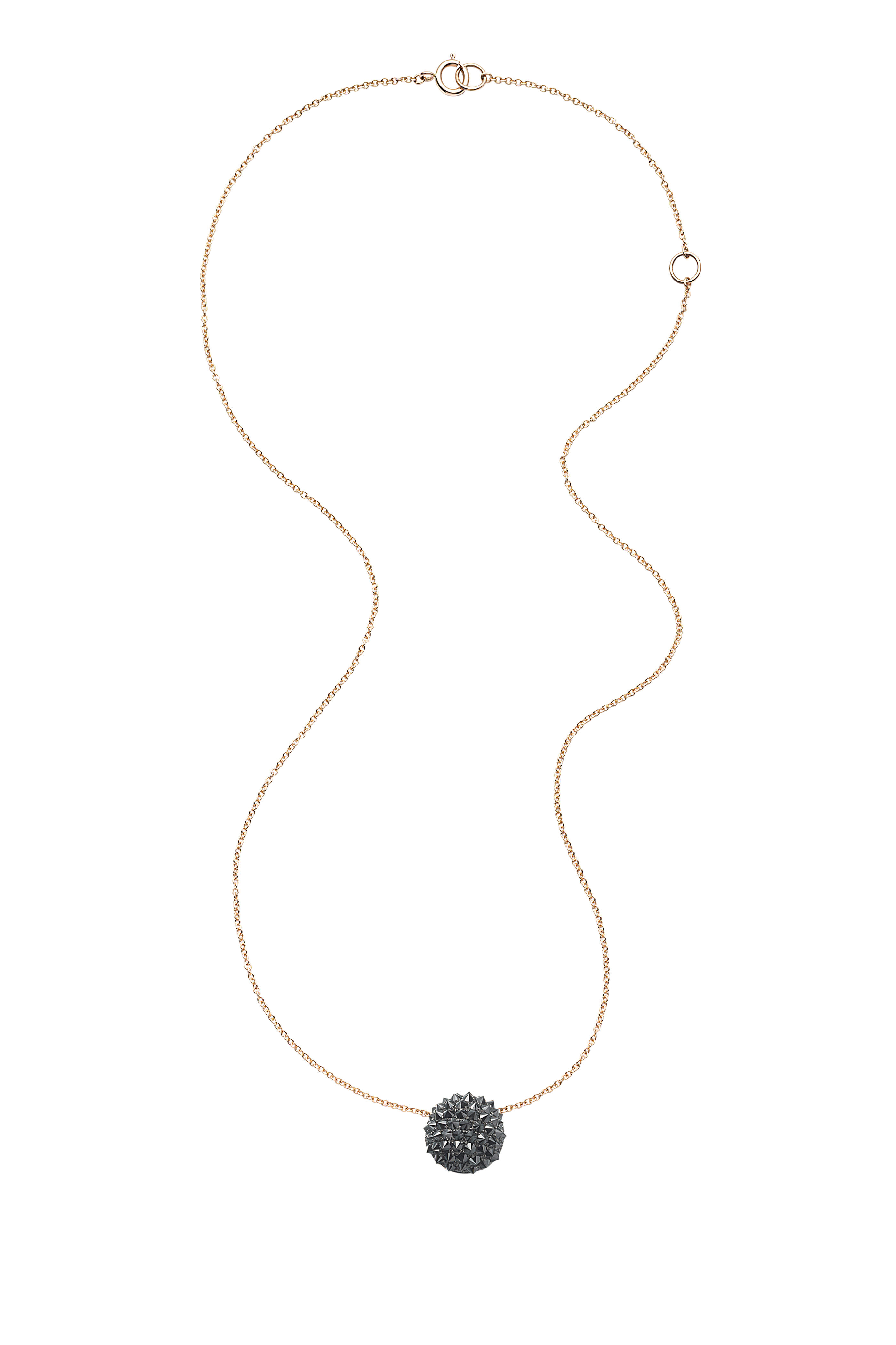 18K Gold Black Diamond Half Ball Pendant Necklace