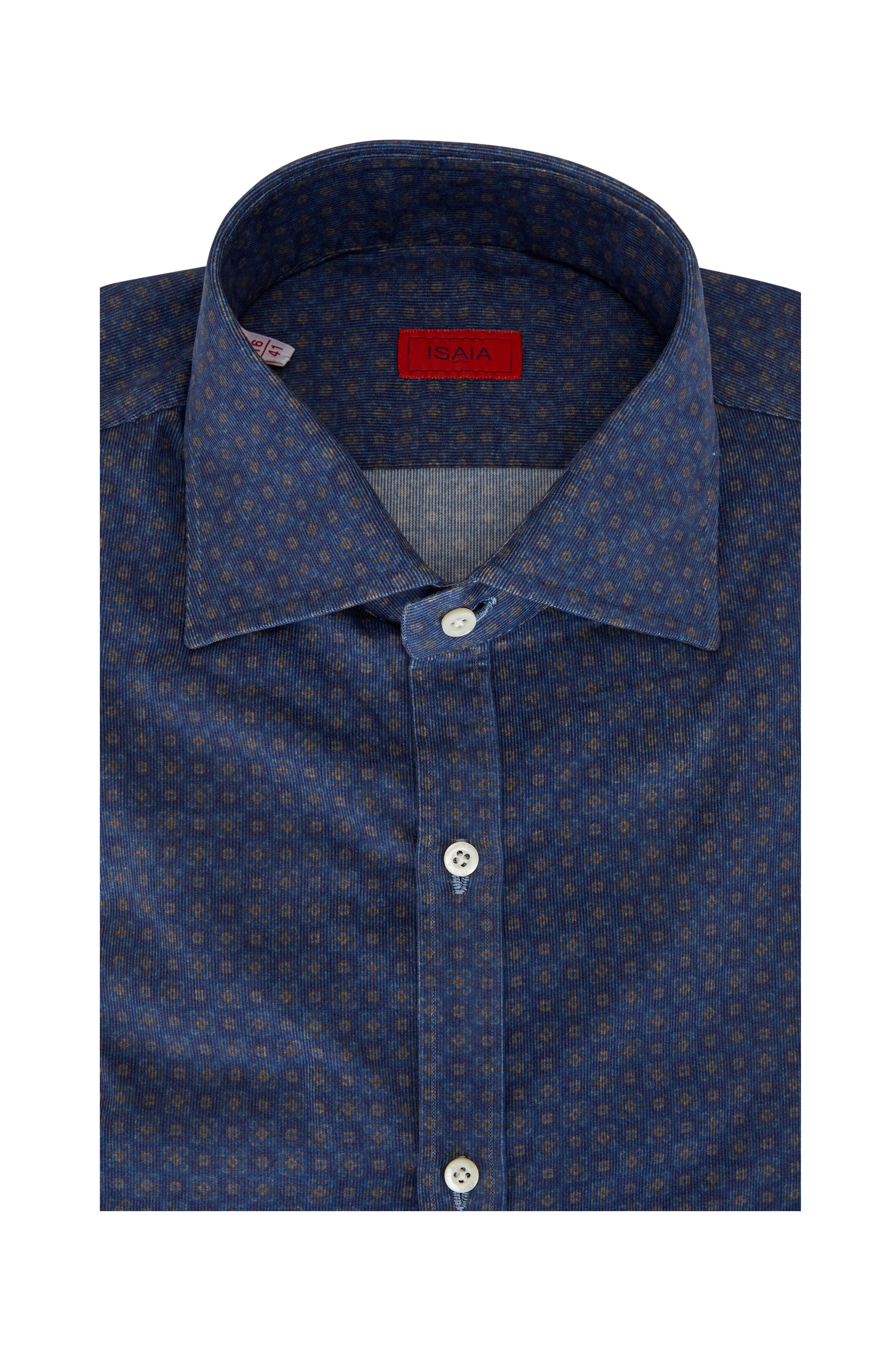 Spread collar. Single button mitered cuffs. Made in Italy. 100% cotton. Machine wash.
