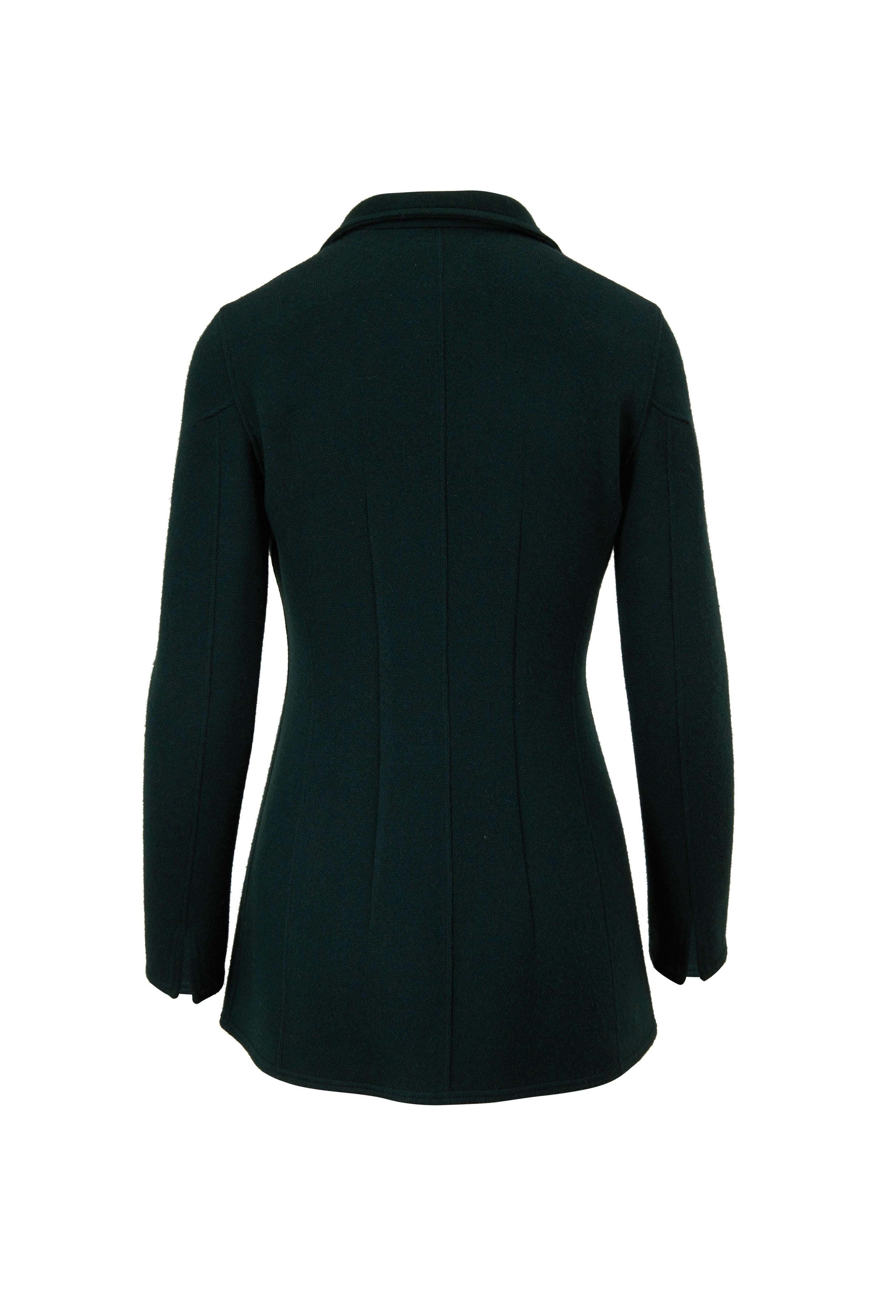 Cashmere. Notched lapels. Concealed snap closure. Imported. Dry clean.