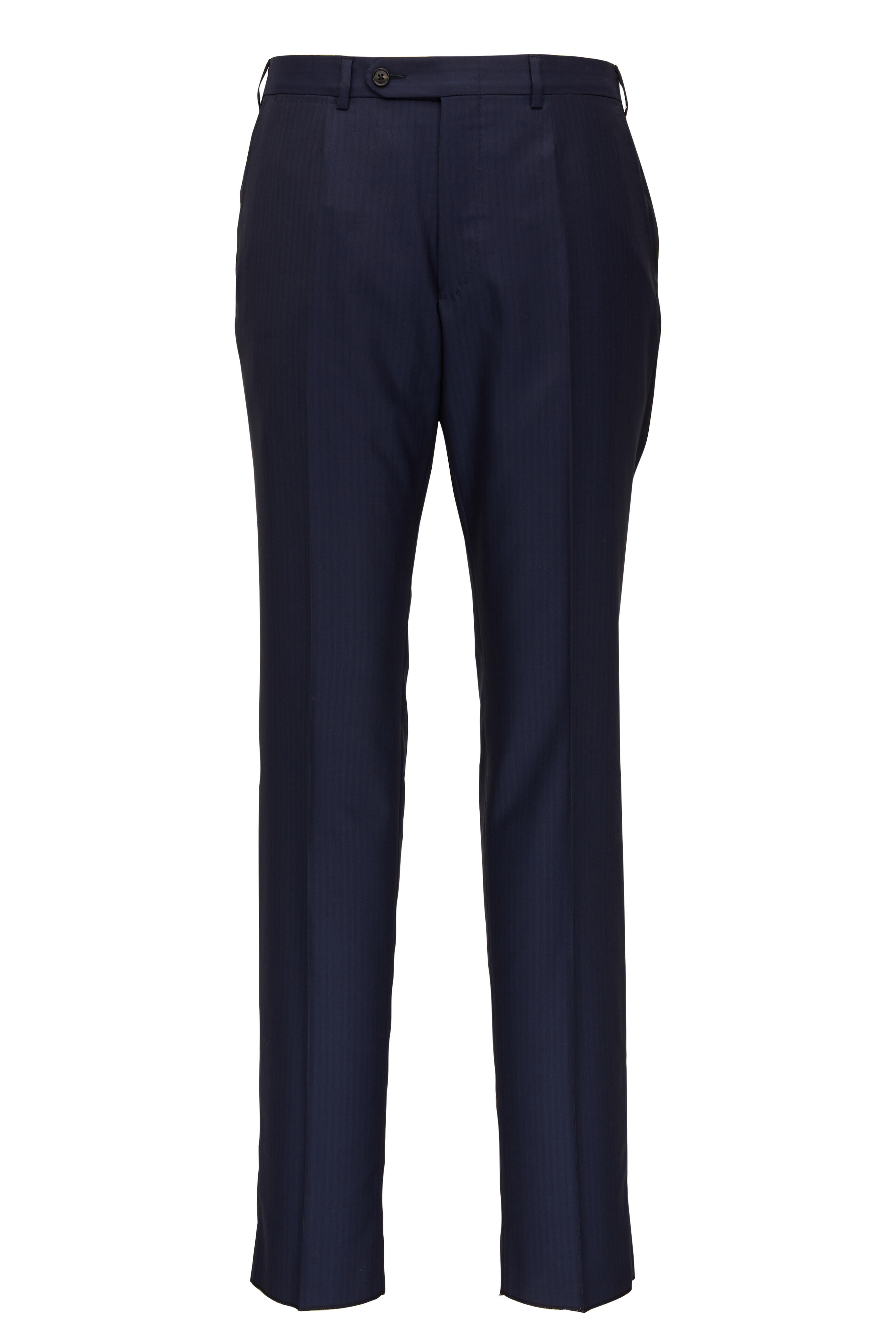 Navy Blue Striped Wool & Silk Suit