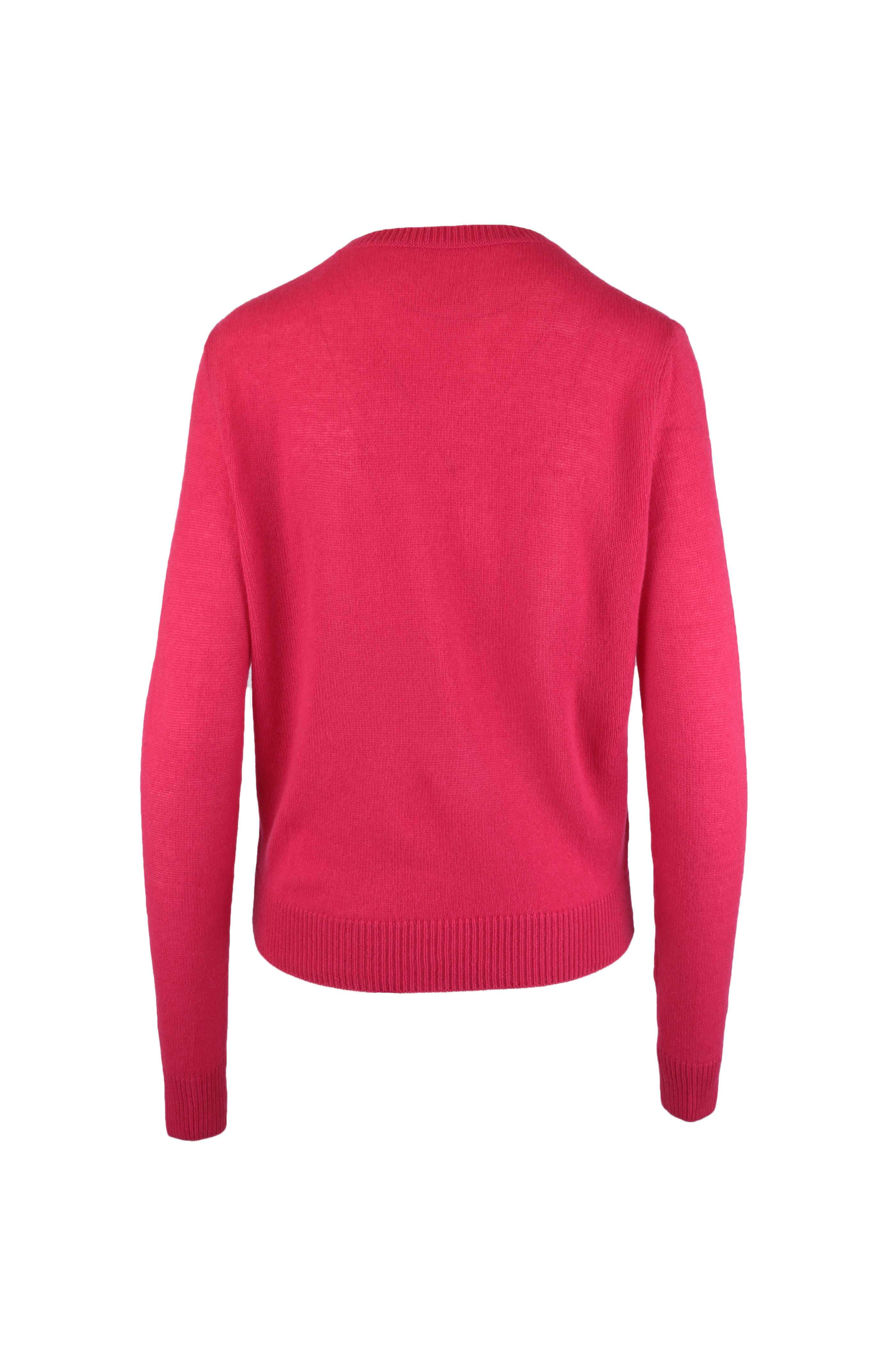 Crew neckline. Ribbed trim. Made in the USA. 100% cashmere. Dry clean.