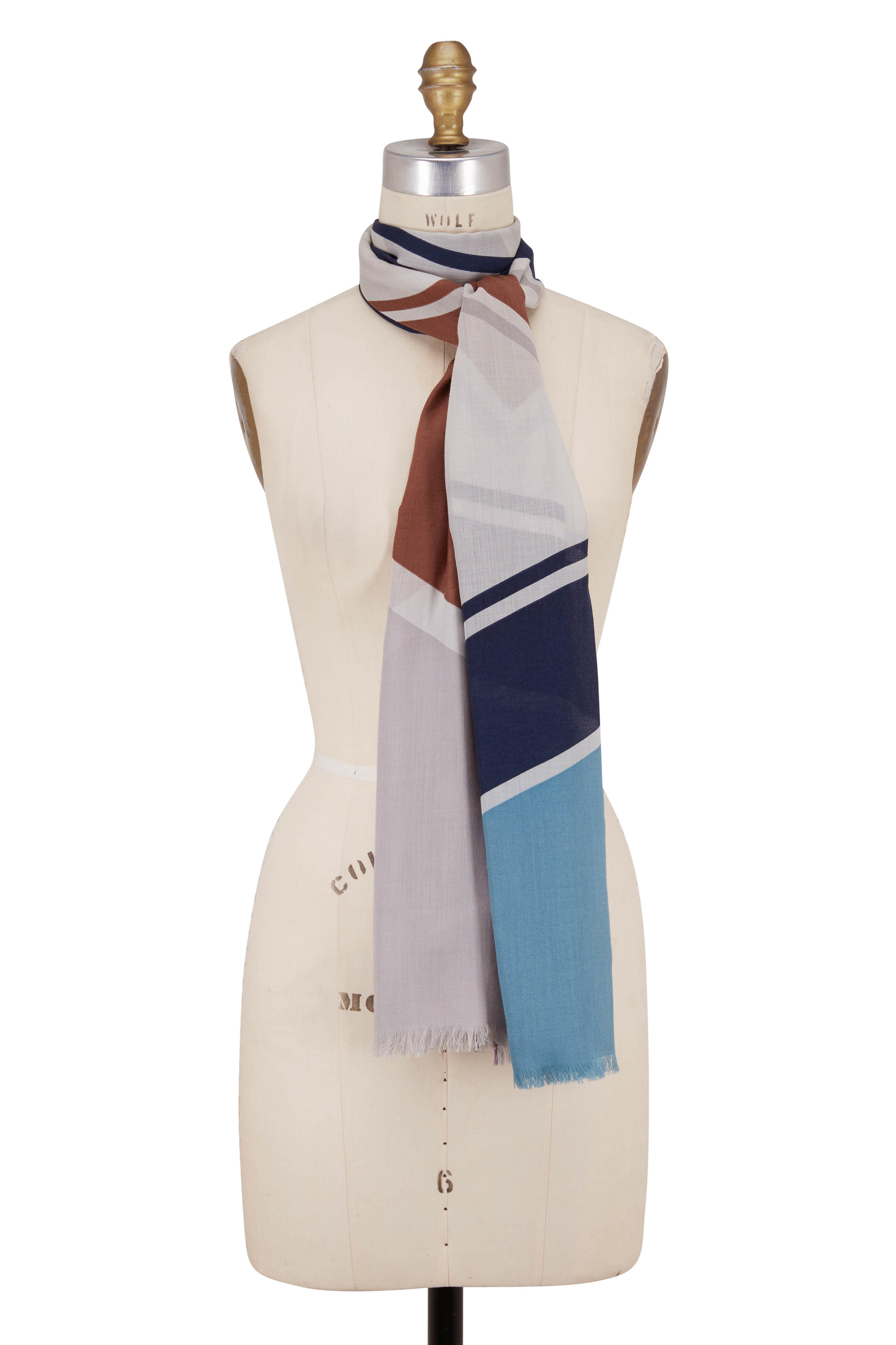 Blue & White Cashmere & Silk Geometric Line Scarf