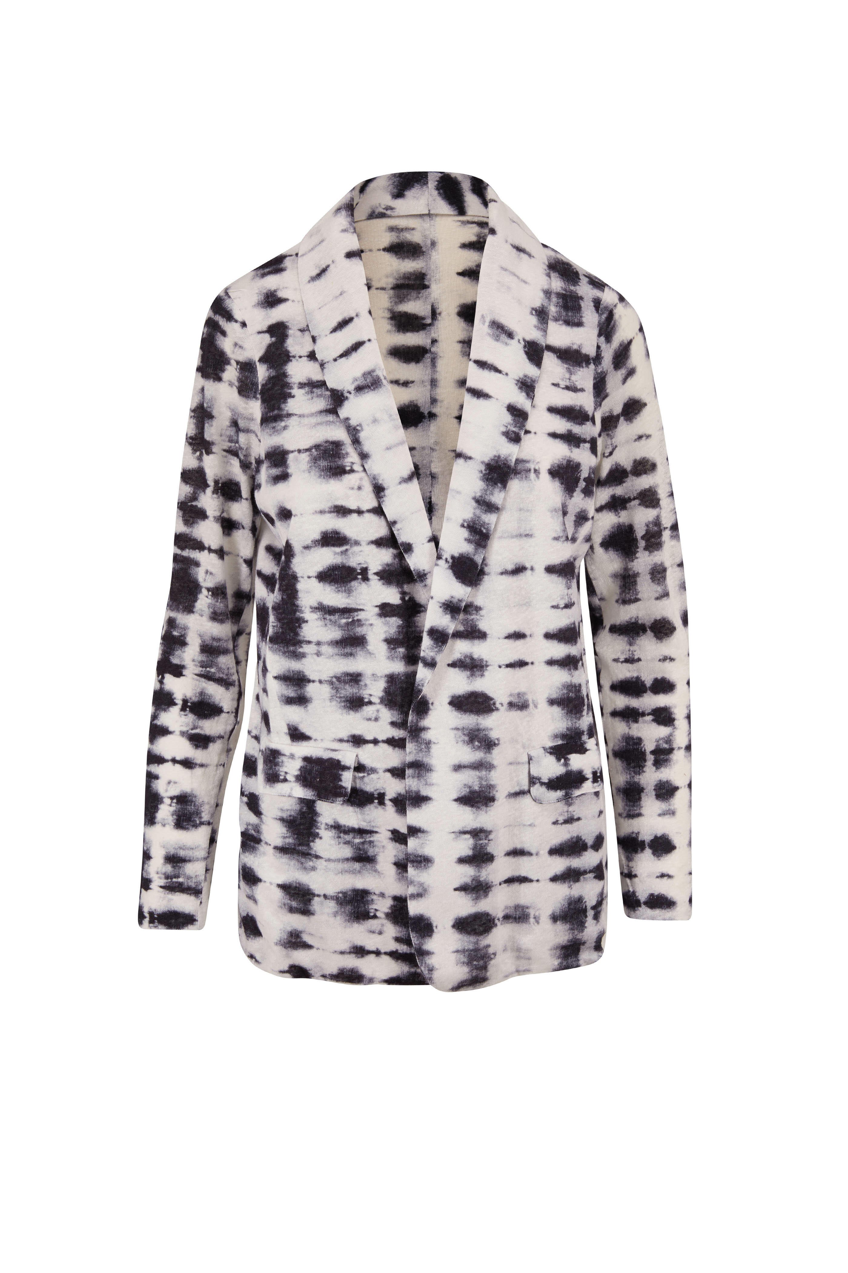 Black Linen Tie-Dye Open Blazer