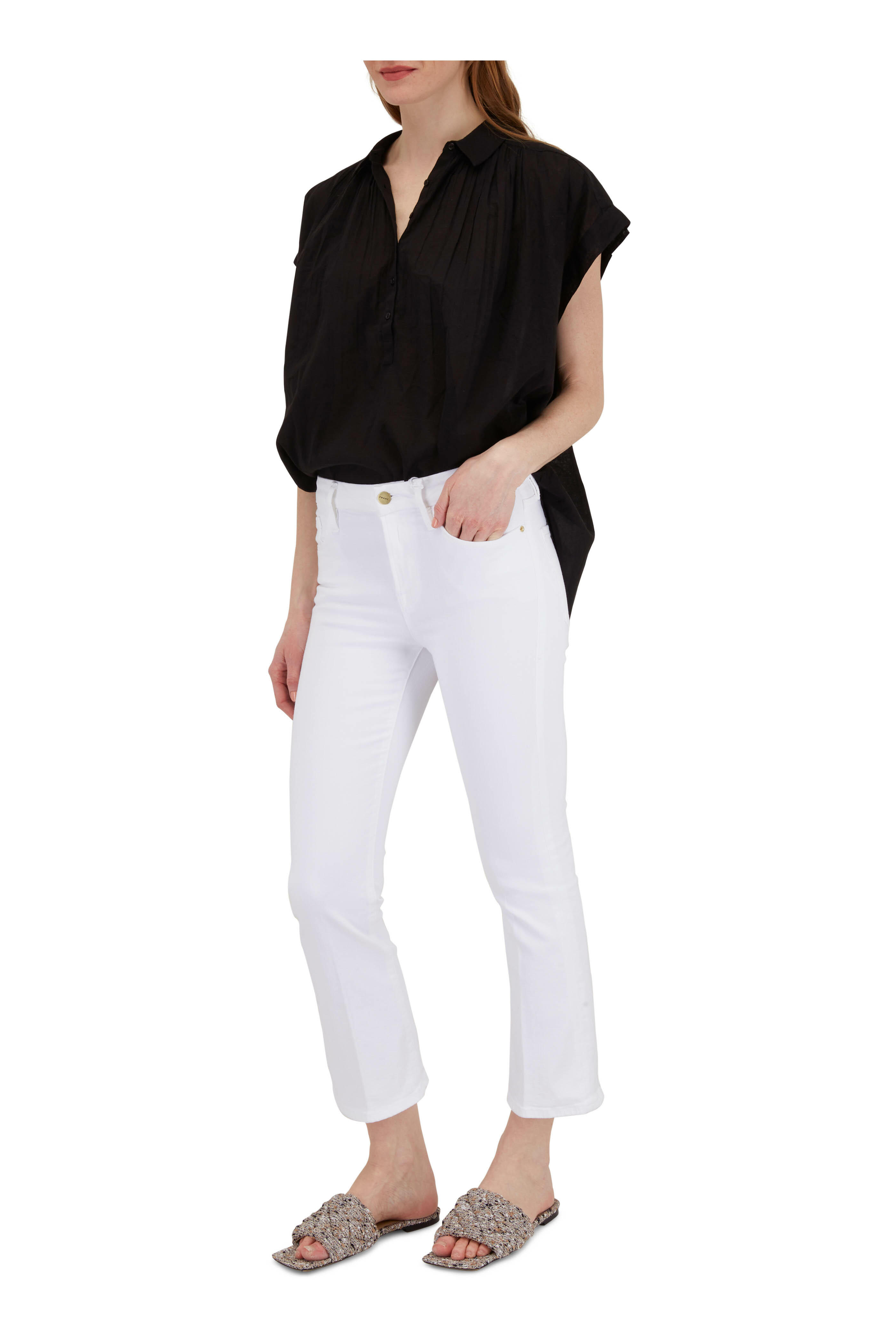 Banded collar. Half button placket. Folded cuffs. Shirttail hem. Imported. 27" shoulder to hem. 100% cotton. Machine wash.
