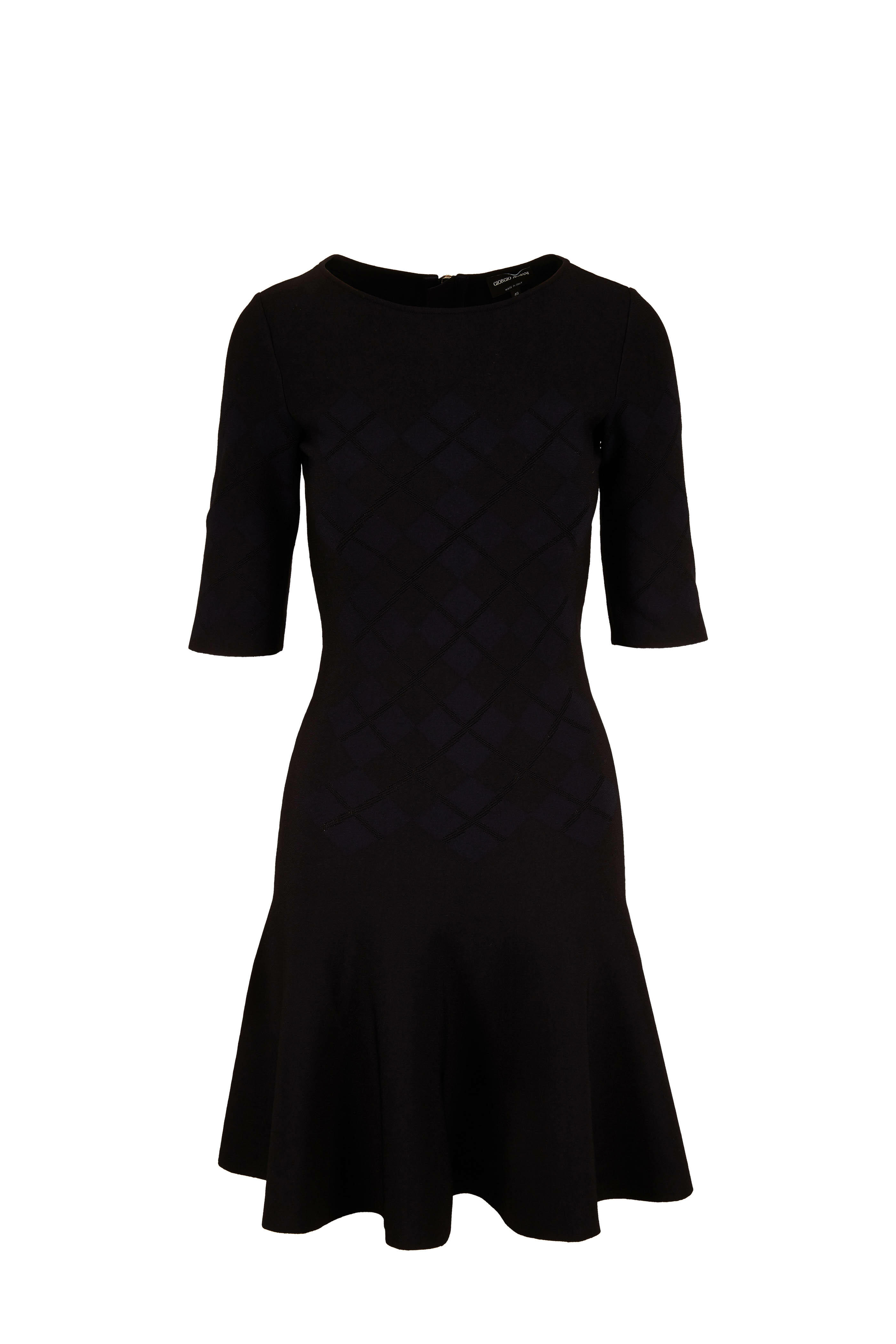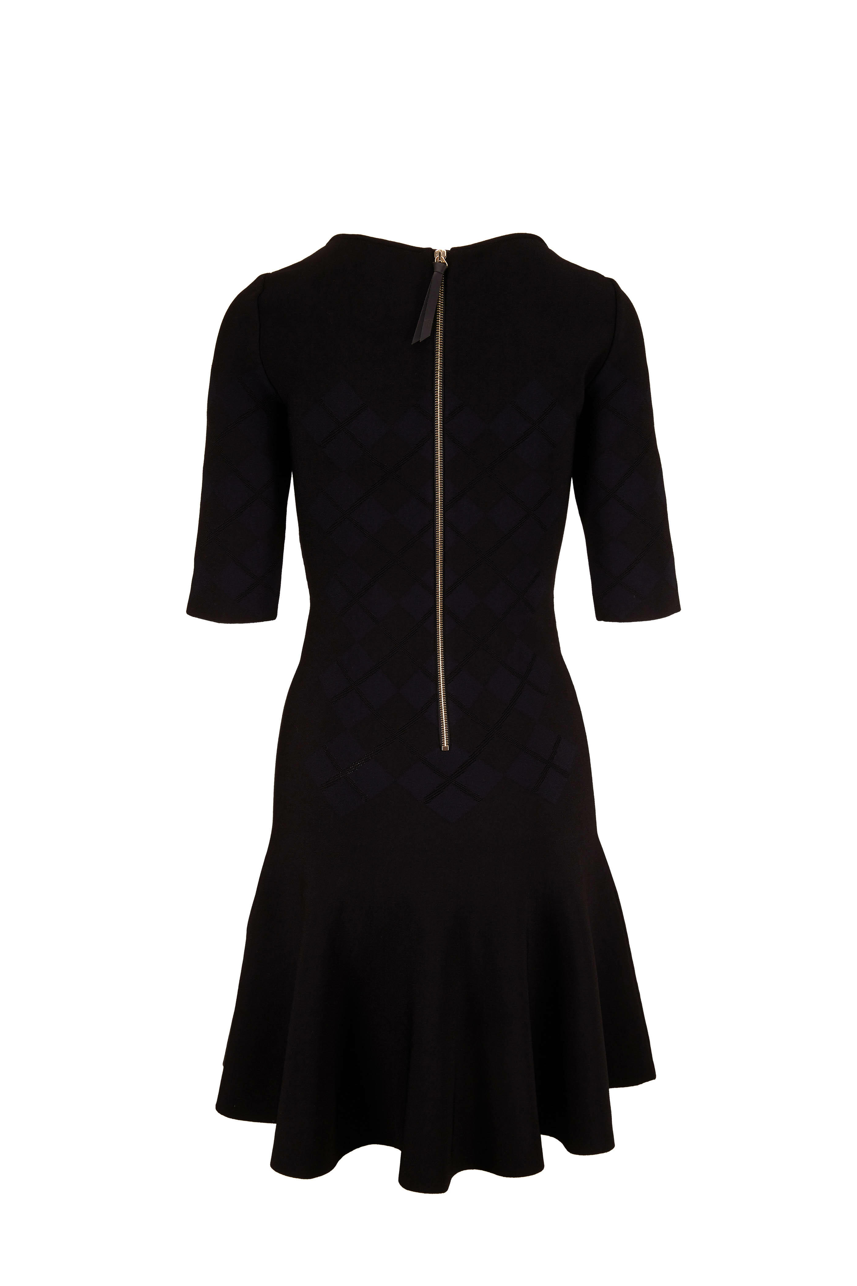 Round neckline. Exposed back zip. Fluted hem. Made in Italy. 38" shoulder to hem. 80% viscose, 16% polyester, 3% polyamide, 1% elastane. Dry clean.