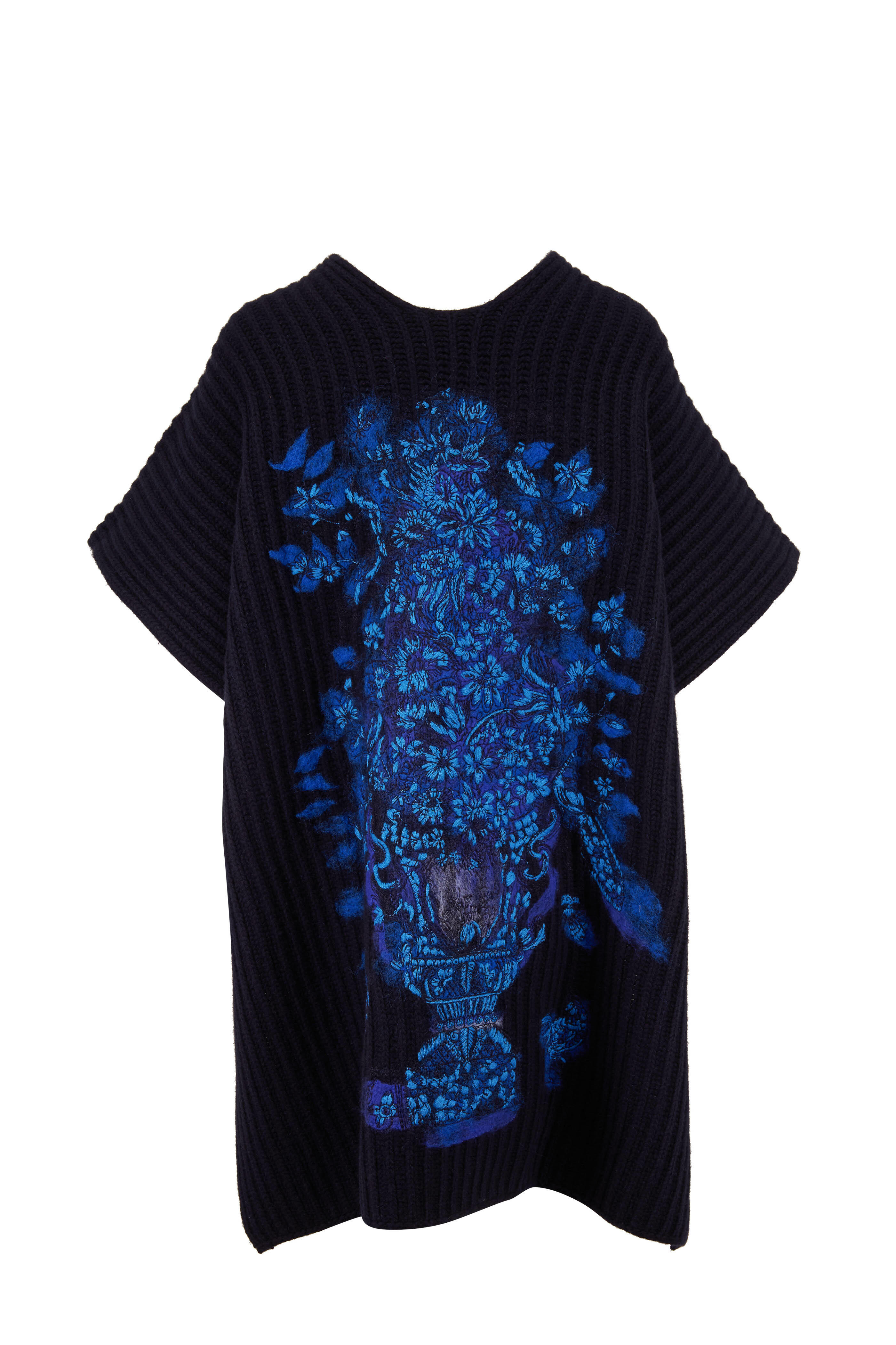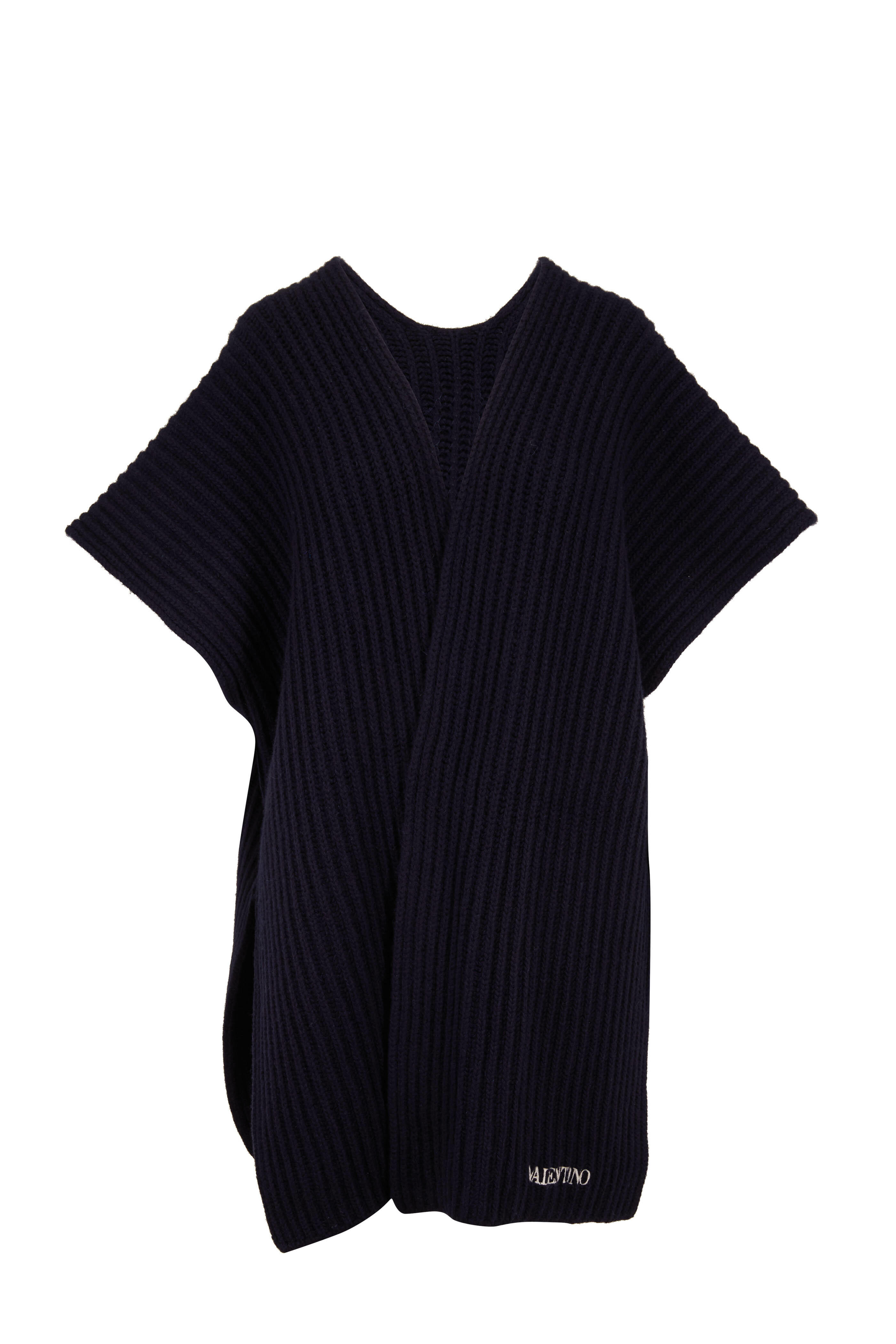Open front. Dolman short sleeves. Embroidered logo detail at bottom corner. Made in Italy. Oversize fit. 70% virgin wool, 30% cashmere. Dry clean.
