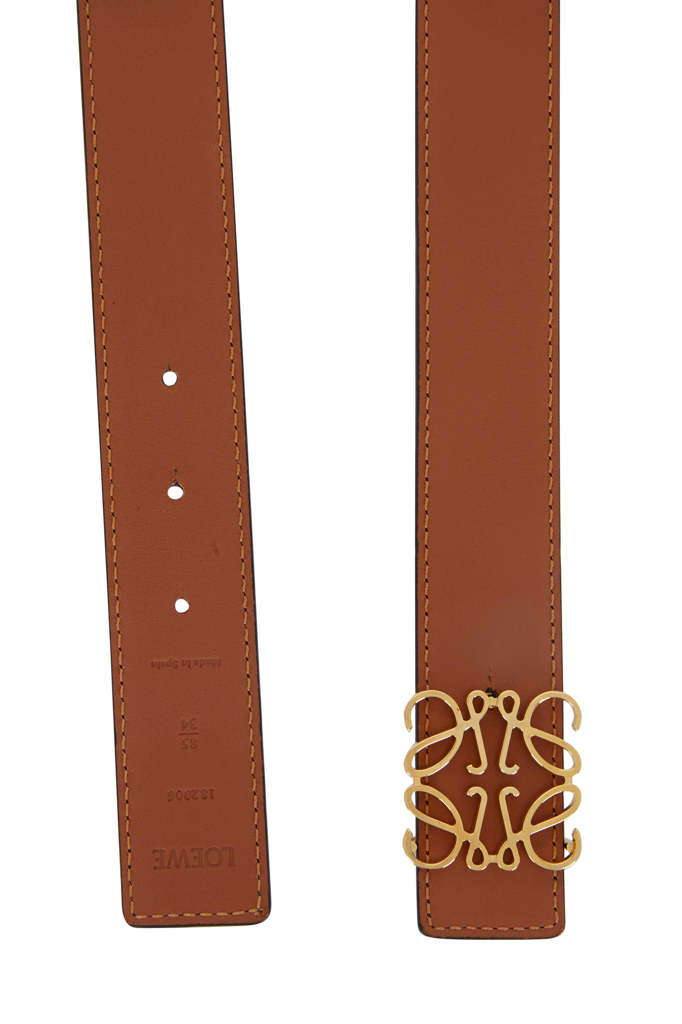 Leather. Logo buckle. Square tip. Reversible. Made in Spain. Width: 1".