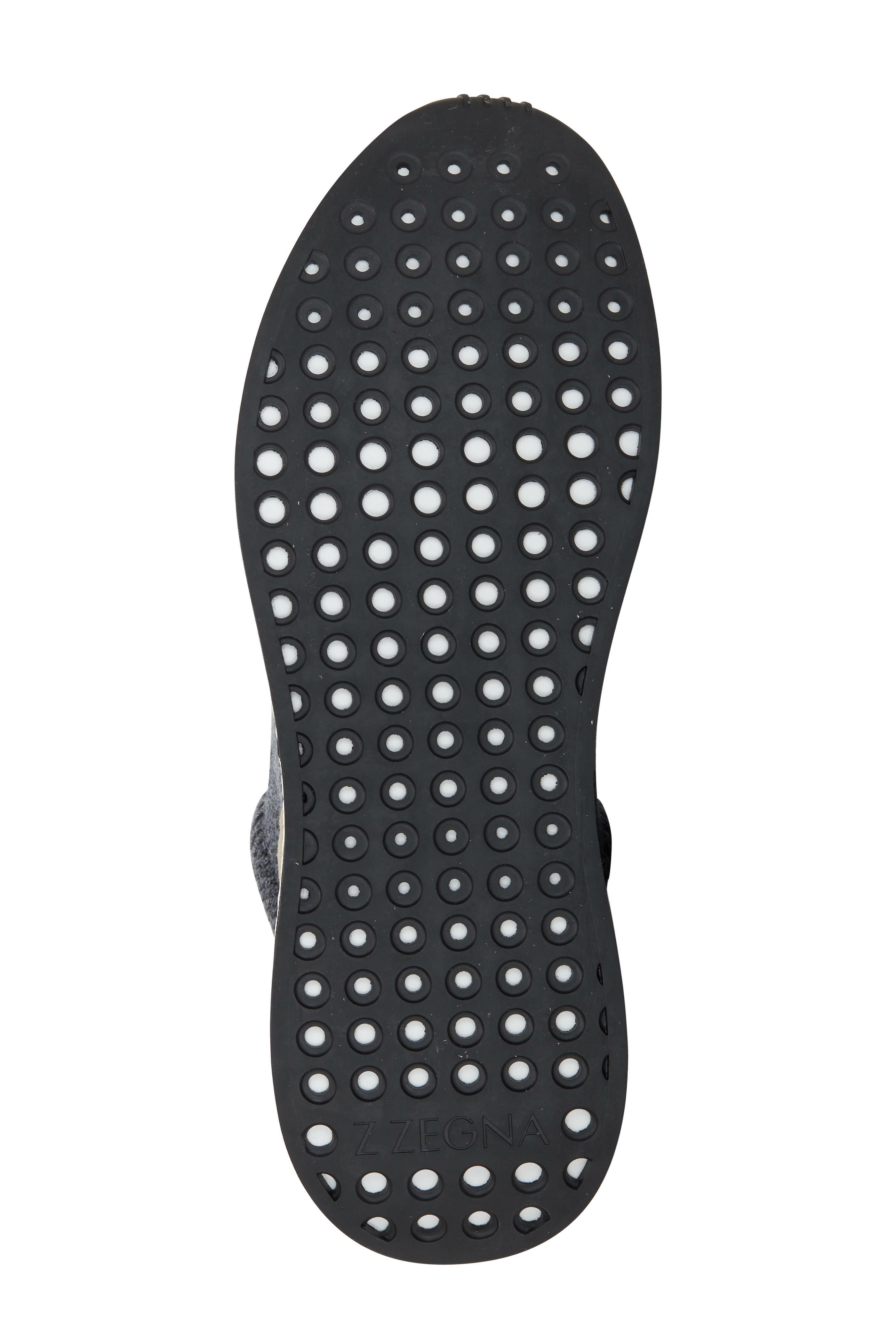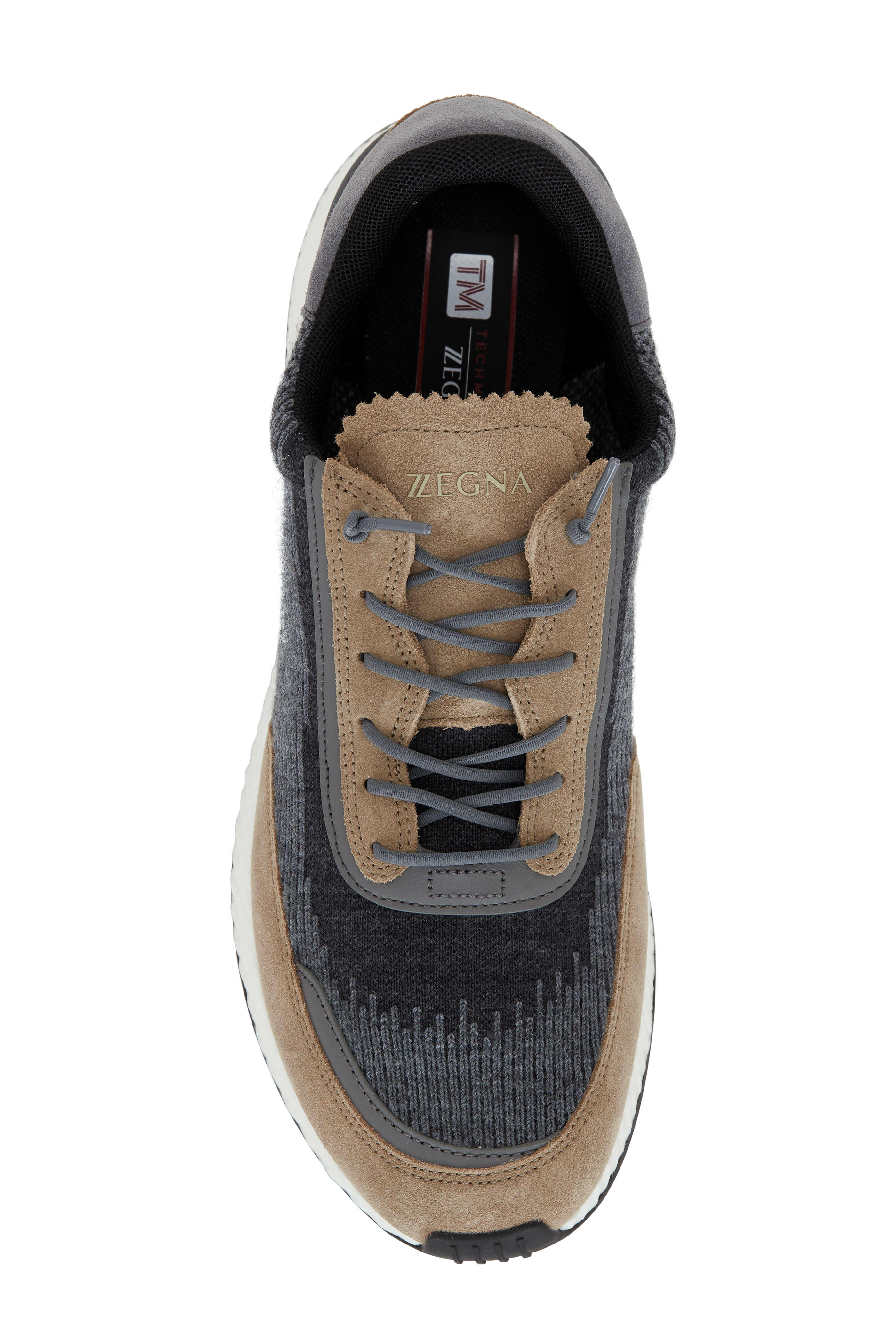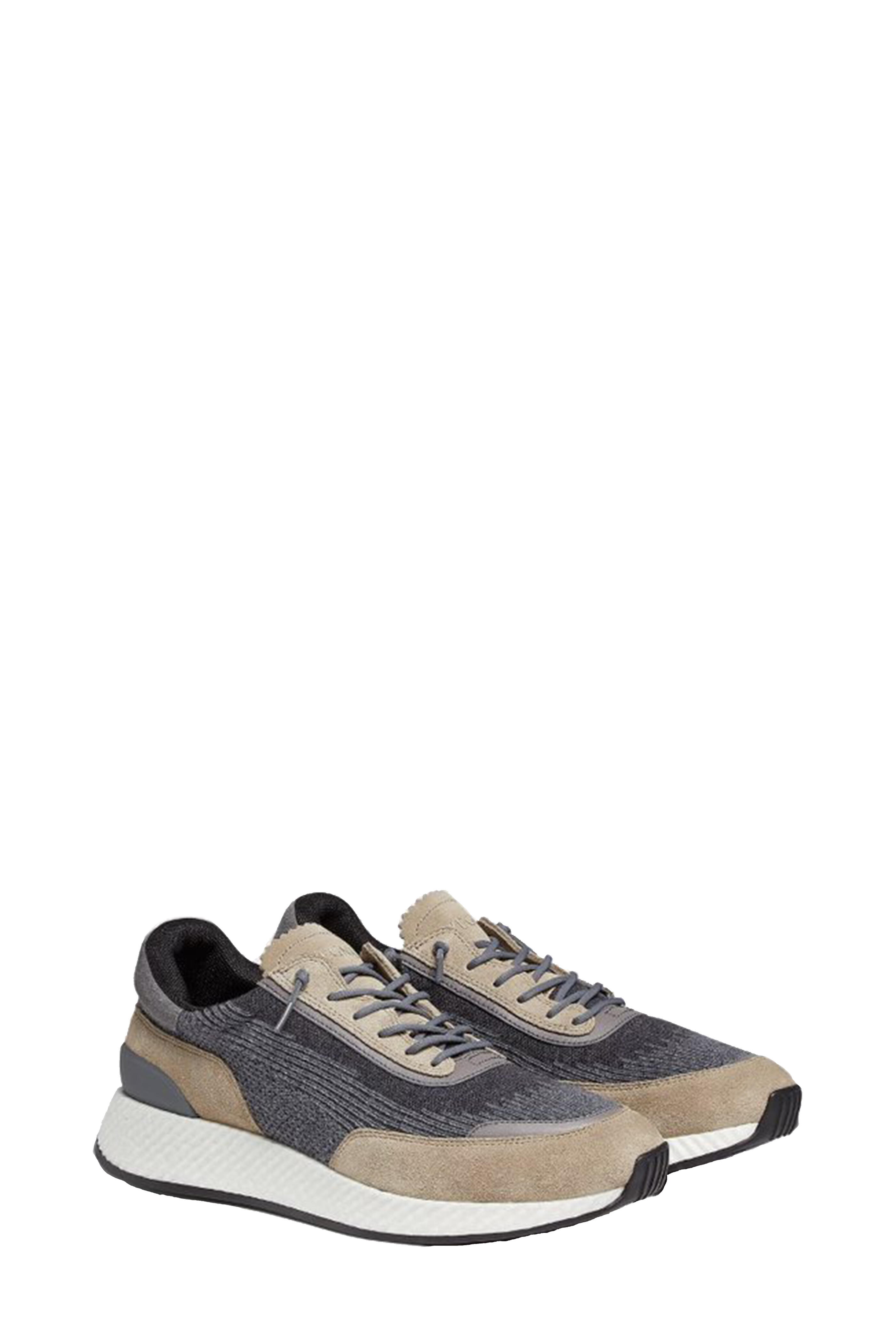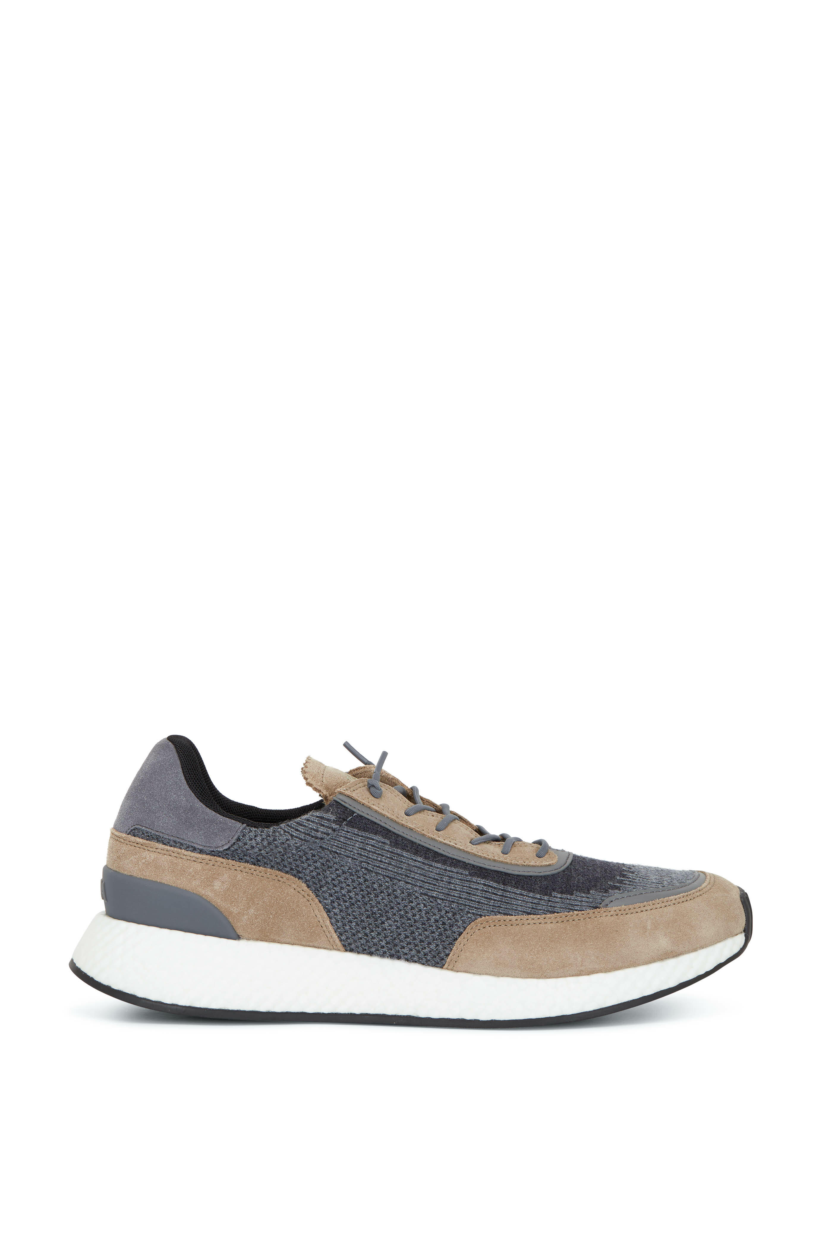 Knit and suede upper. Tapered toe. Lace-up closure. Mesh lining, cushioned insole. Extralight® rubber sole. Made in Italy.