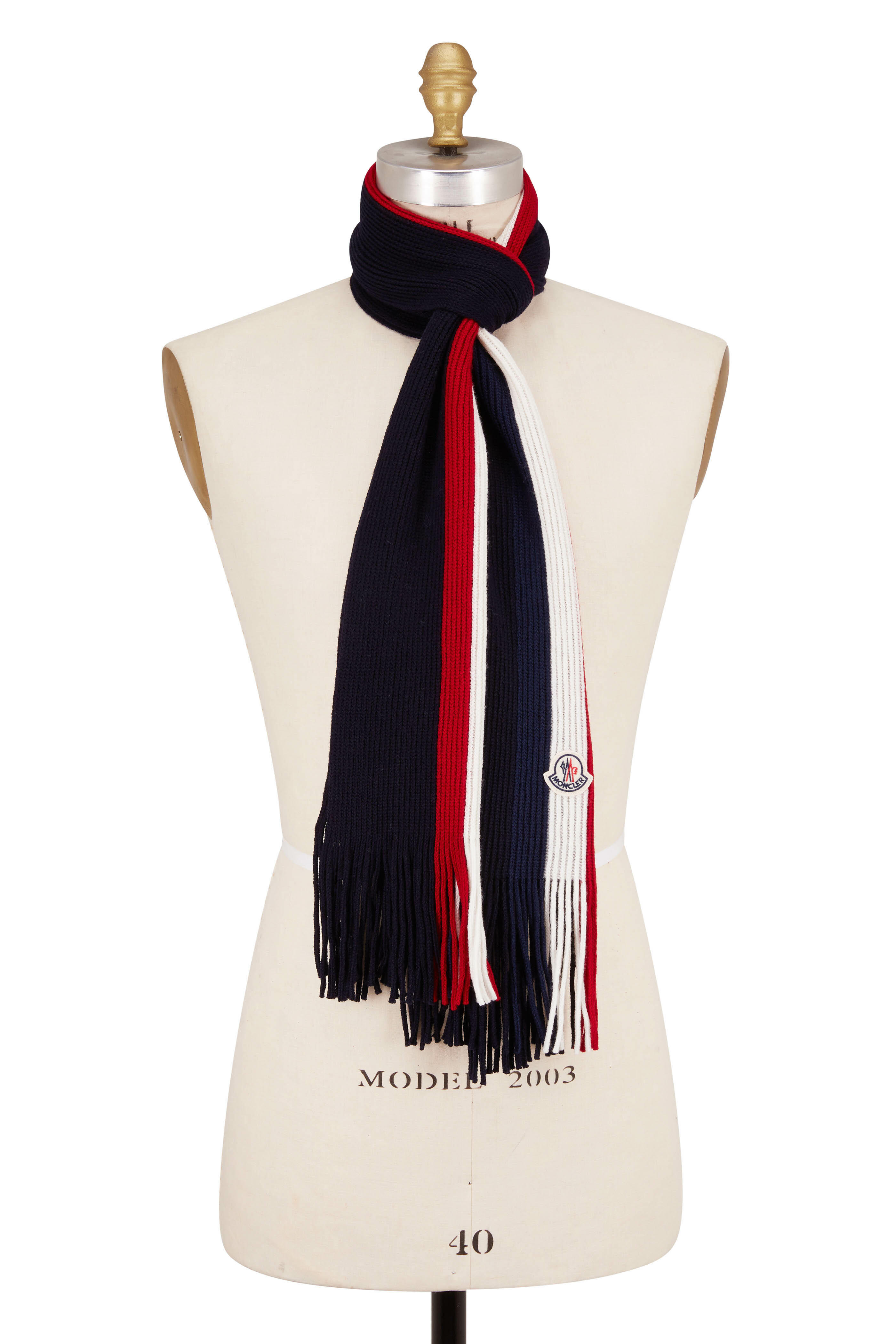 Fringe trim. Logo patch detail. Made in Italy. 100% wool. Dry clean.