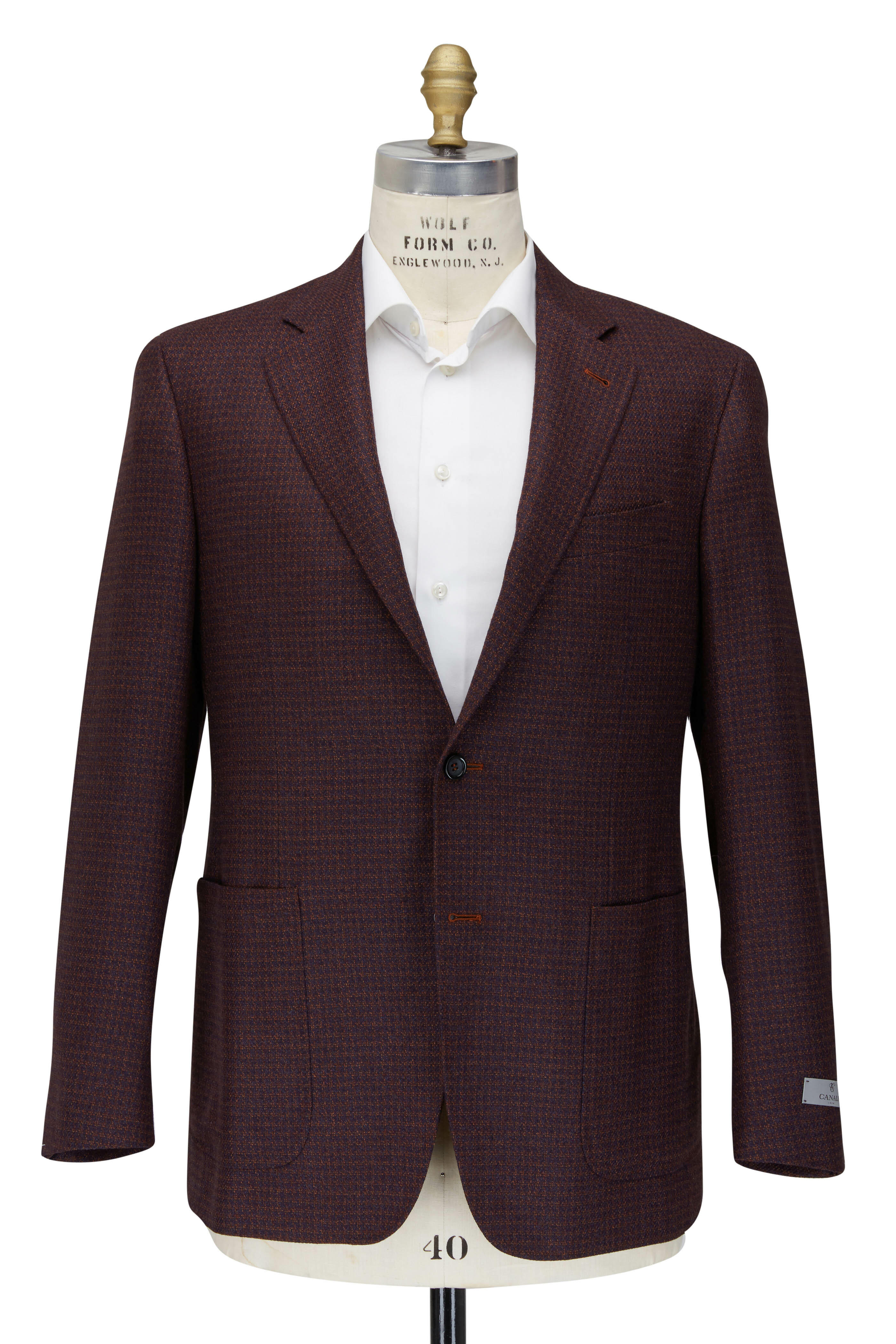 Notched lapels. Two button closure. Lower patch pockets; chest welt pocket. Double vent. Made in Italy. 98% wool, 2% silk; fully lined. Dry clean.