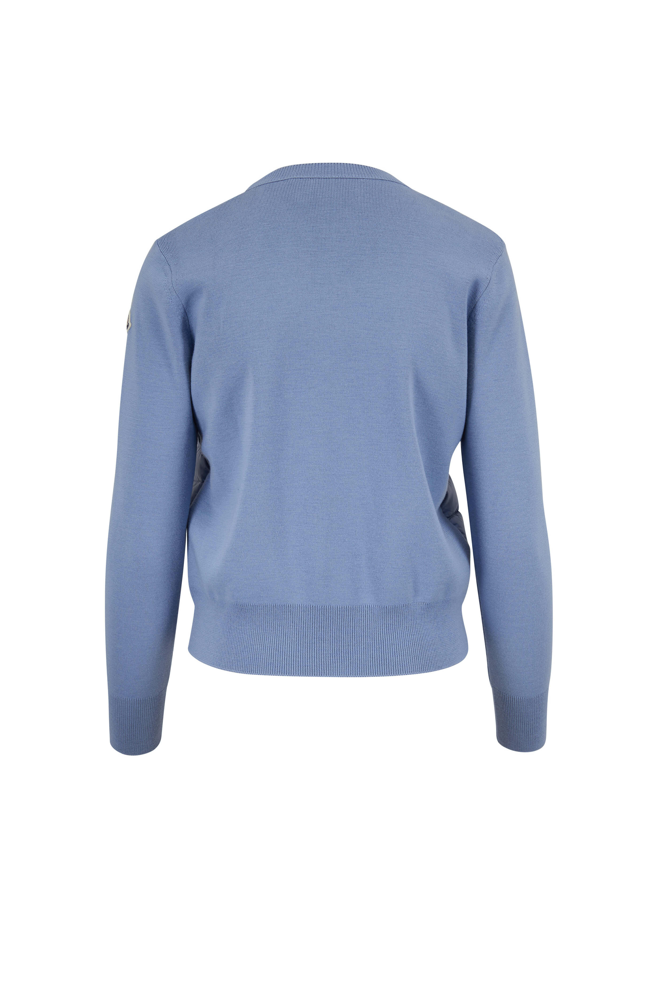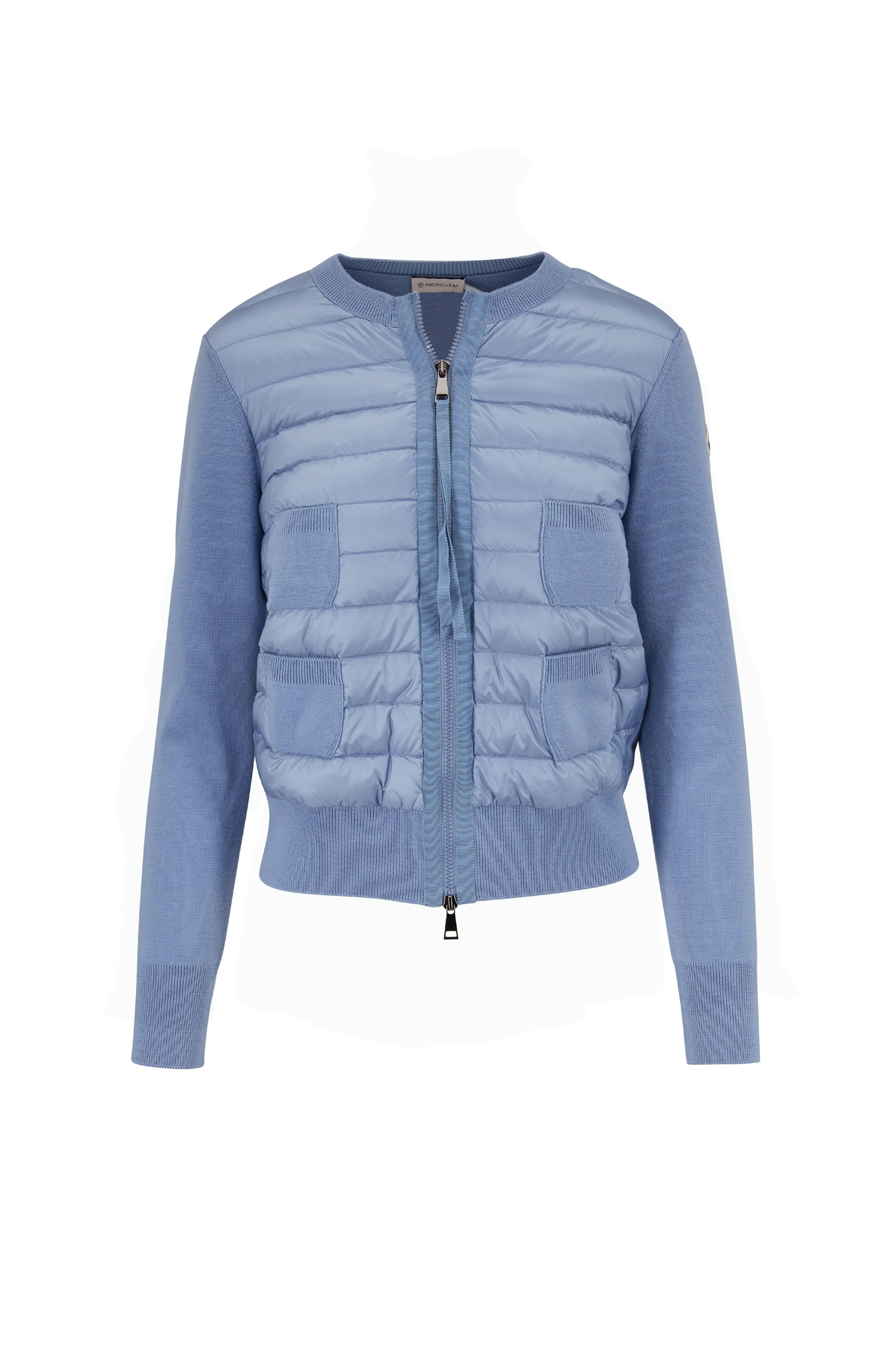 Roundneckline. Front two-way zip. 4 front patch pockets. Ribbed cuffs. Contrast knit back. Imported. 100% nylon; filling is 90% goose down & 10% feathers. Dry clean.