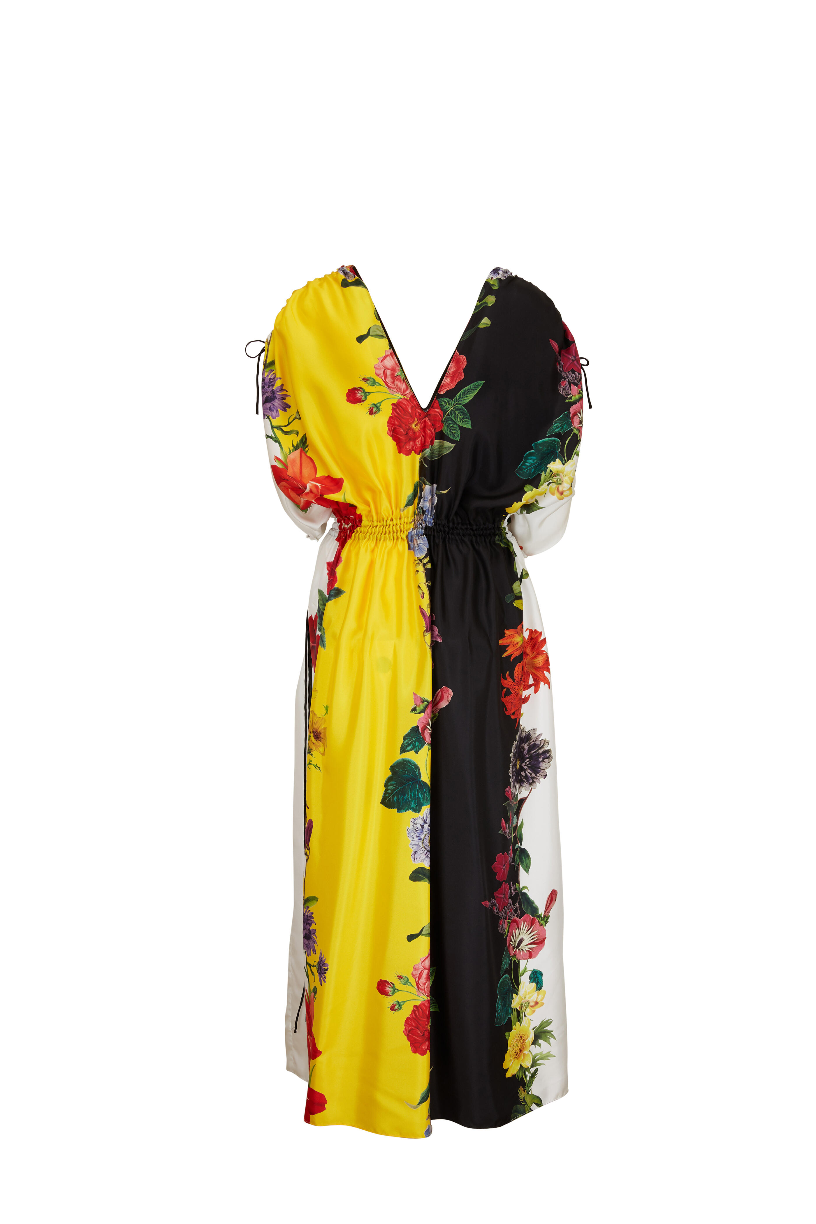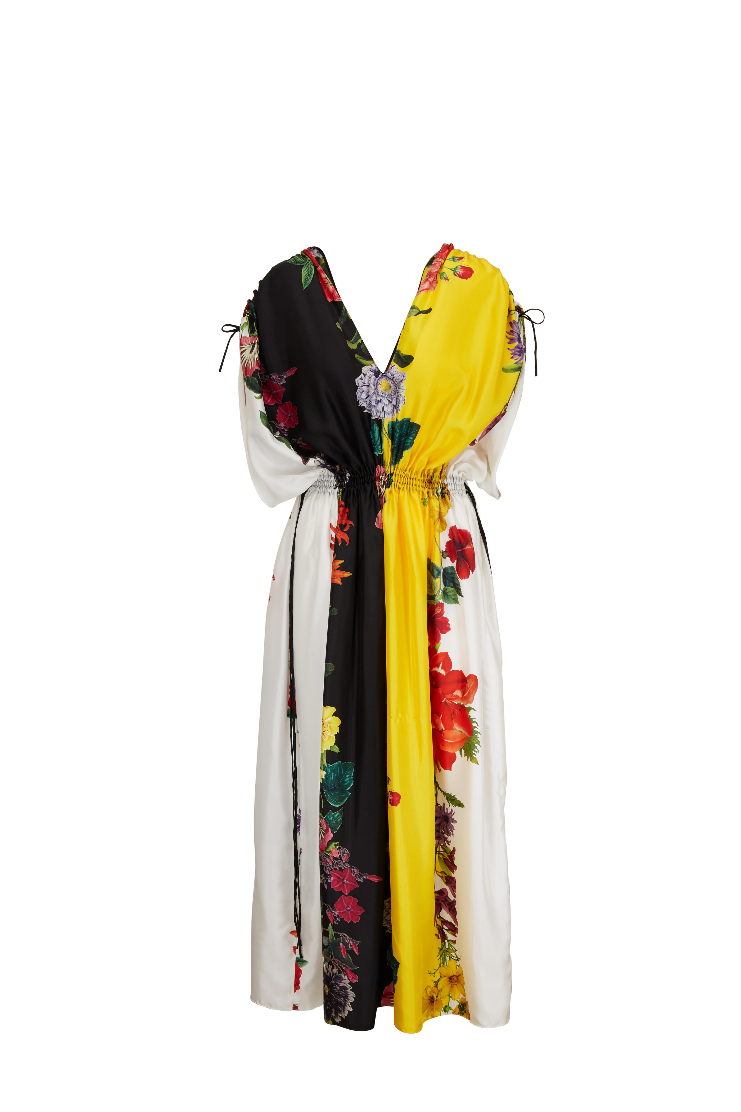 Ivory Multi Floral Stripe Silk Twill Maxi Dress