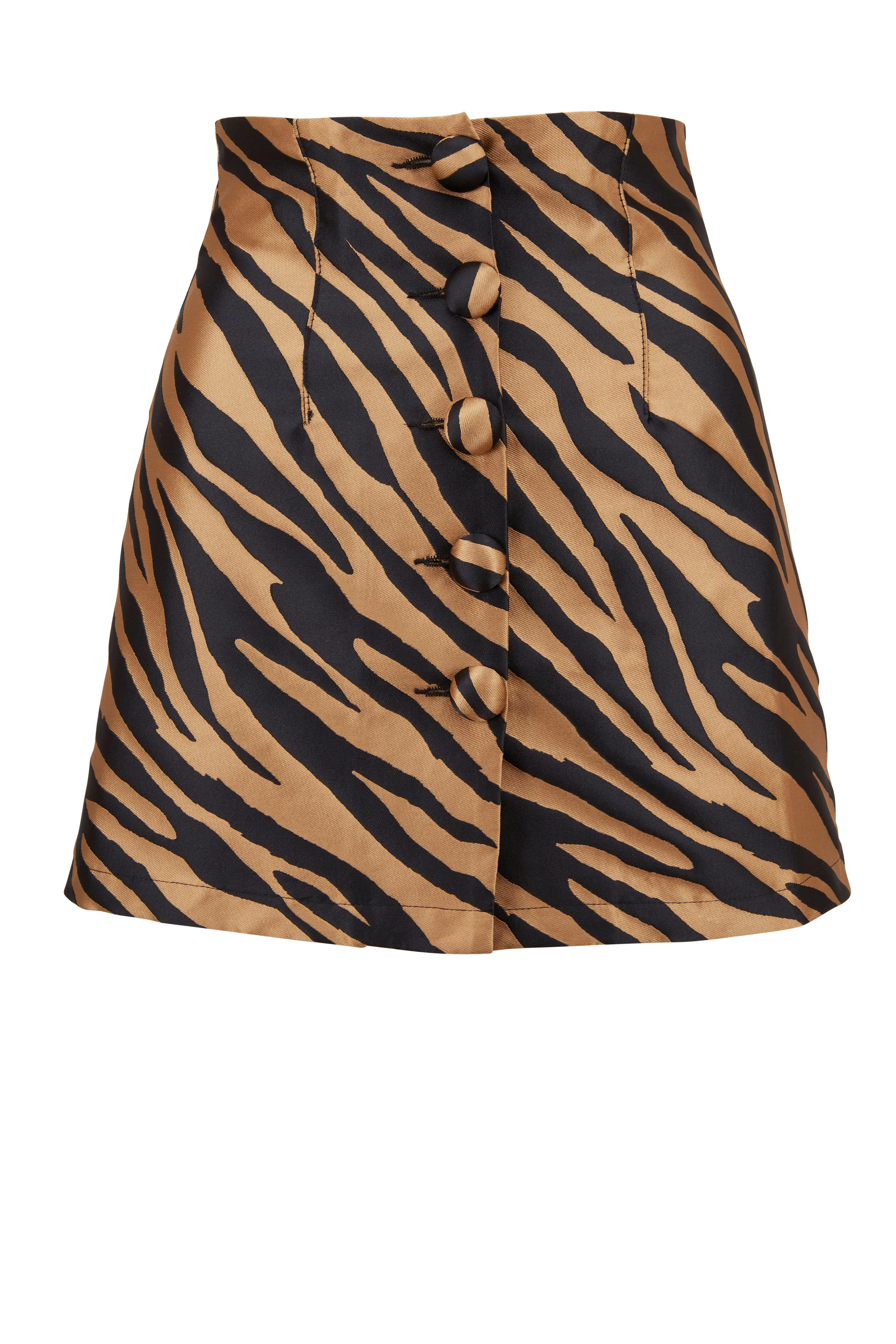 • Andamane - Erin Beige Zebra Front Button Mini Skirt