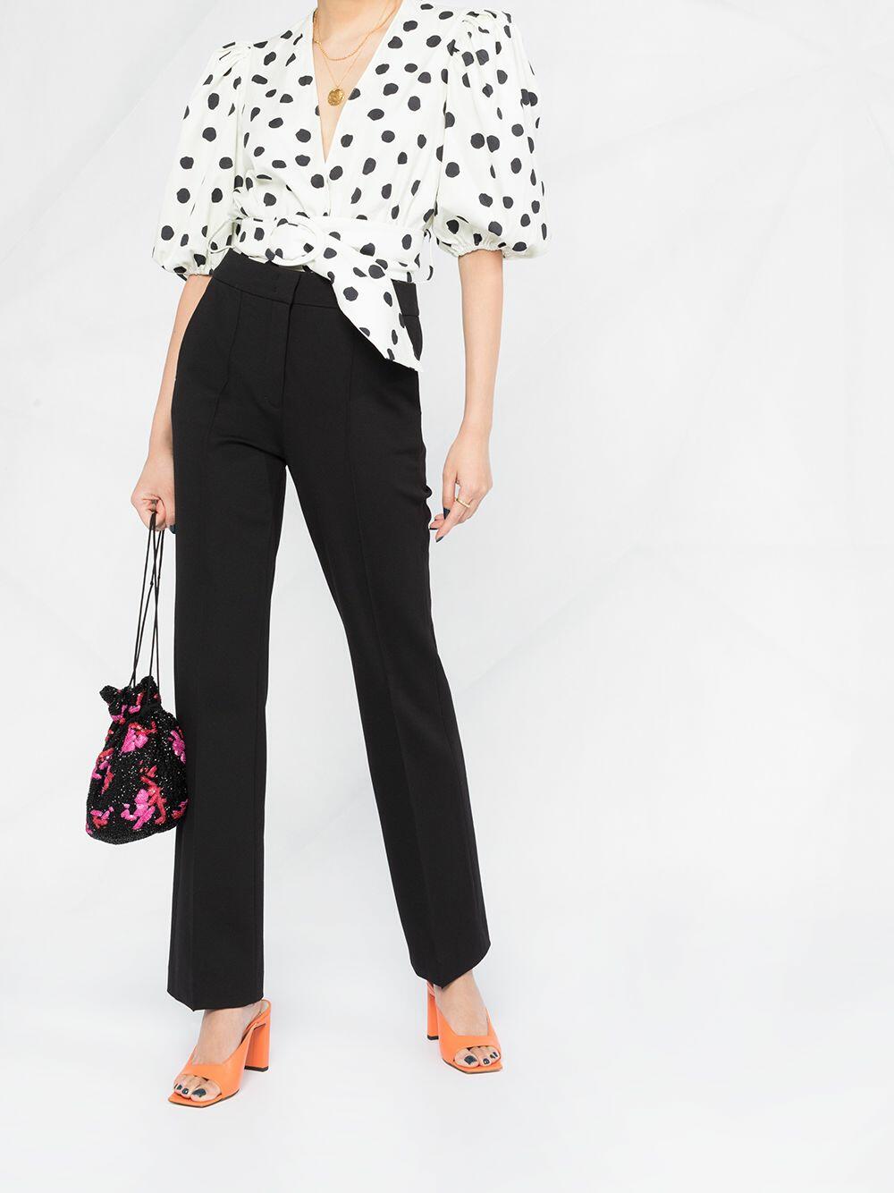 Banded waist. Concealed front zip. Front slip pockets; one back besom pocket. Front seam detailing. Imported. 31" inseam. 67% viscose, 28% polyamid, 5% elastane. Dry clean.