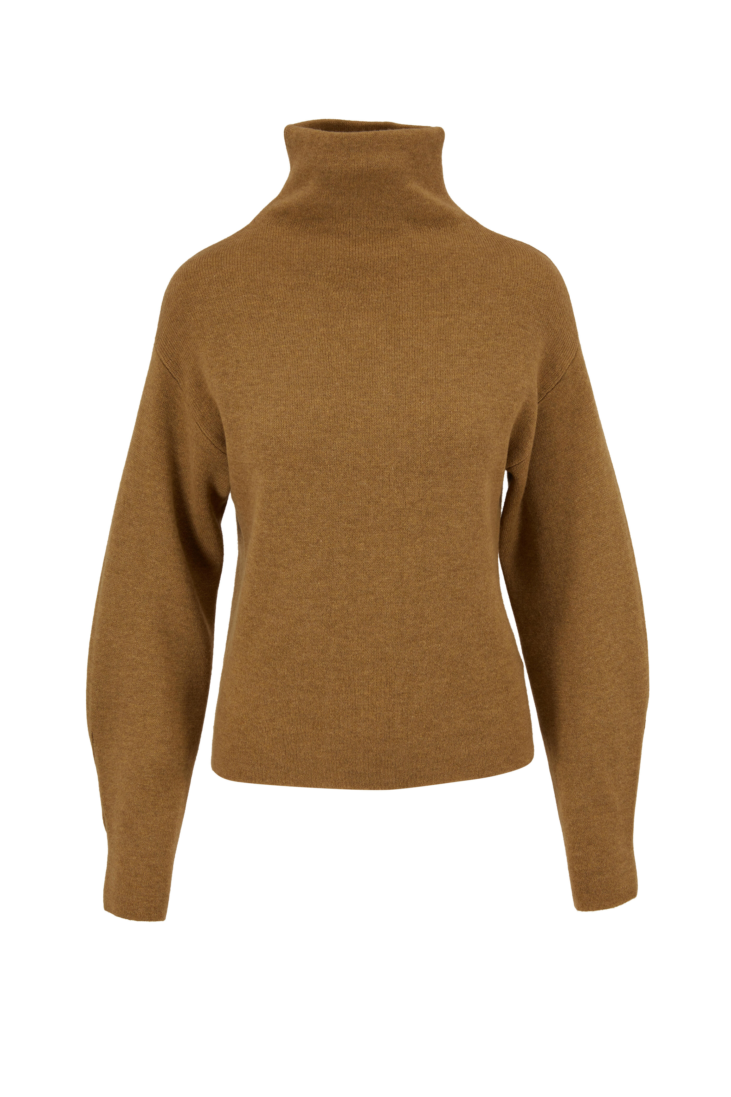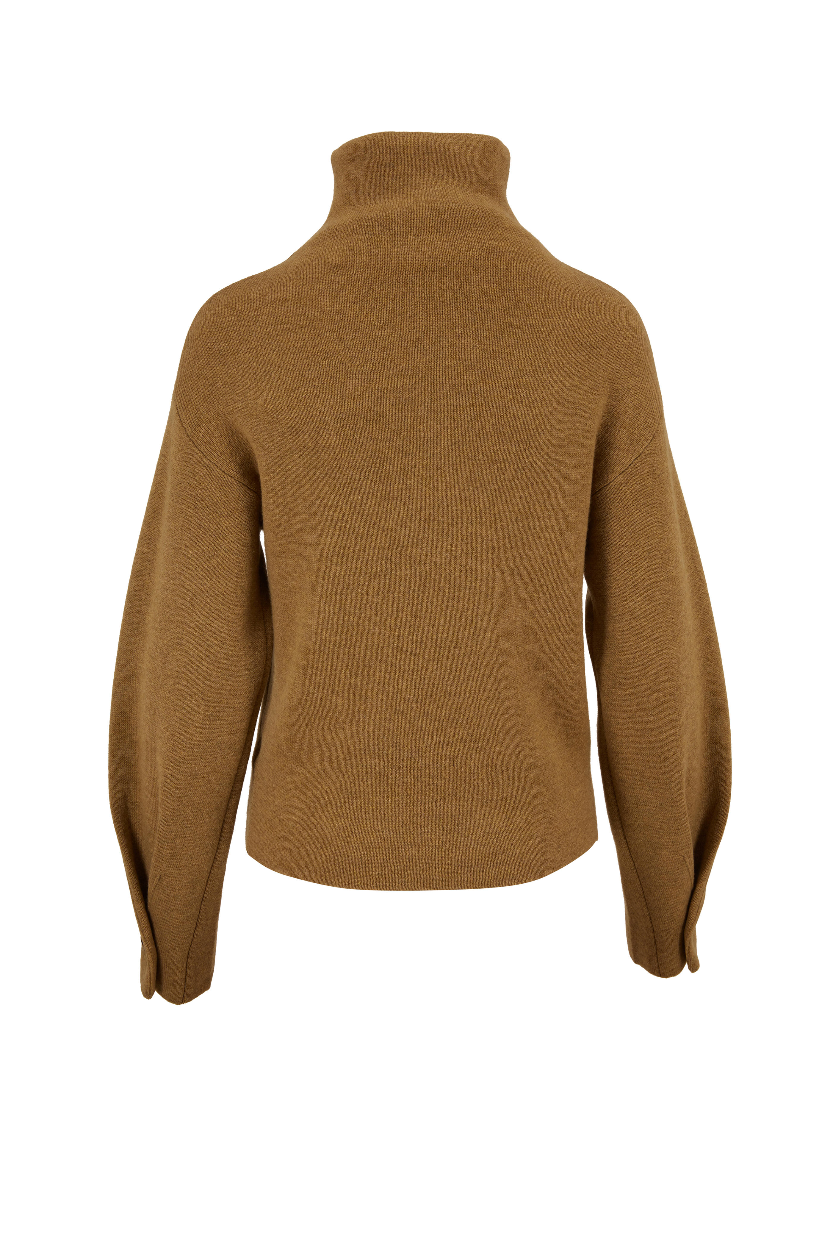 Mockneck. Relaxed long sleeves: button cuffs. Imported. 66% wool, 27% cashmere, 6% nylon, 1% spandex. Hand wash cold.