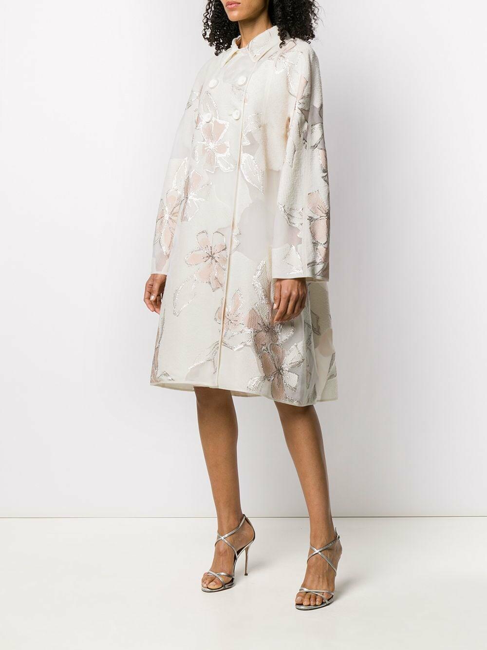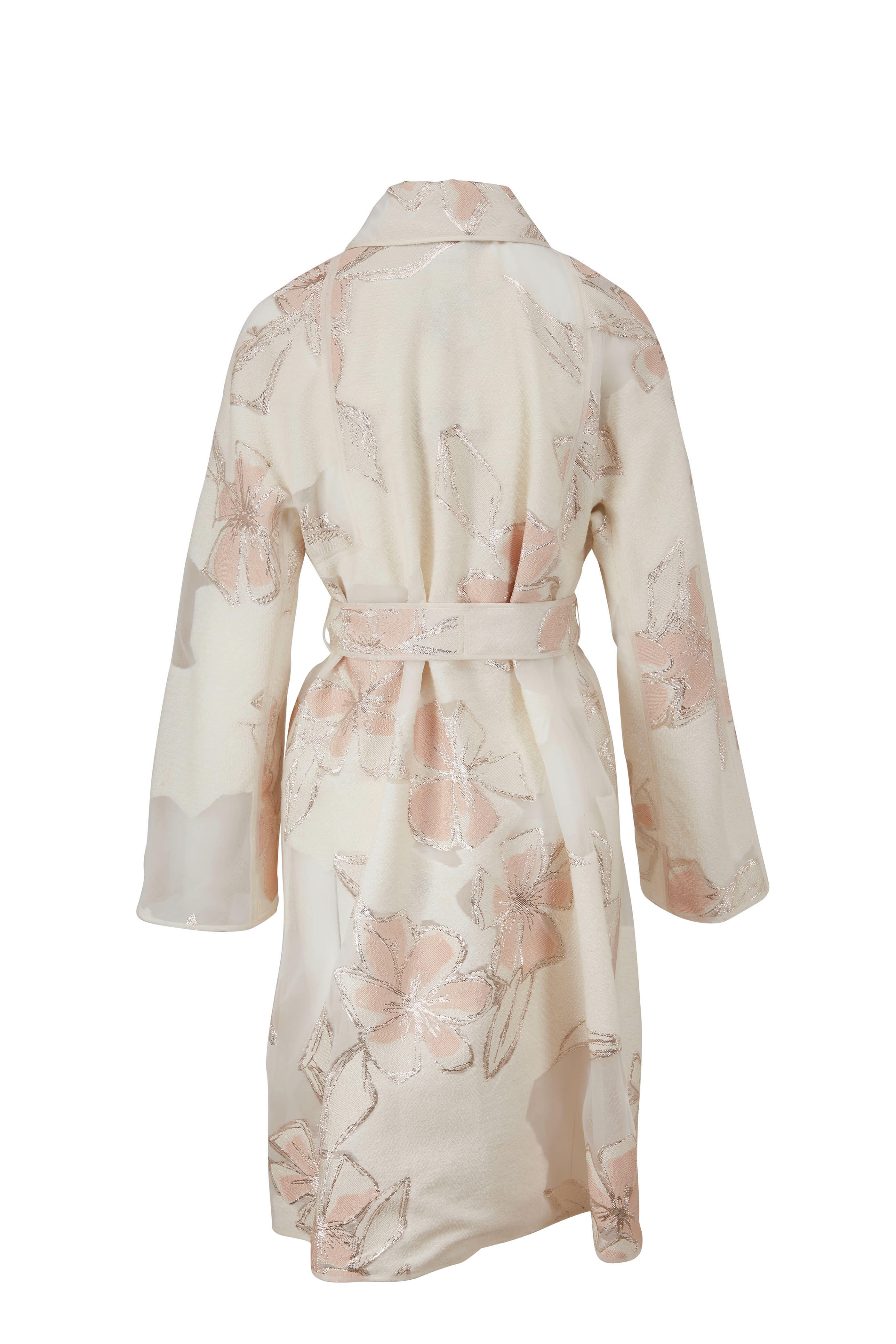 Mantel Cumarin3 Ivory Wool & Silk Jacquard Coat