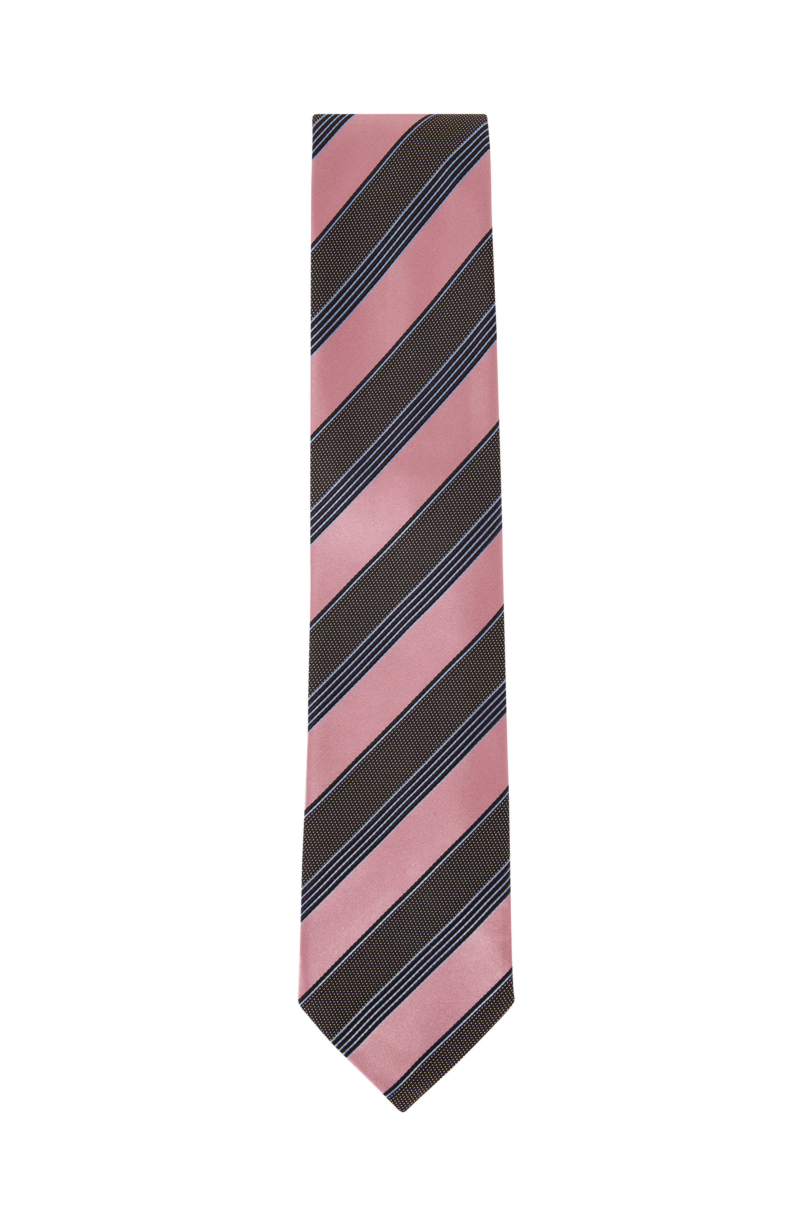 Dusty Green & Pink Diagonal Stripe Silk Necktie
