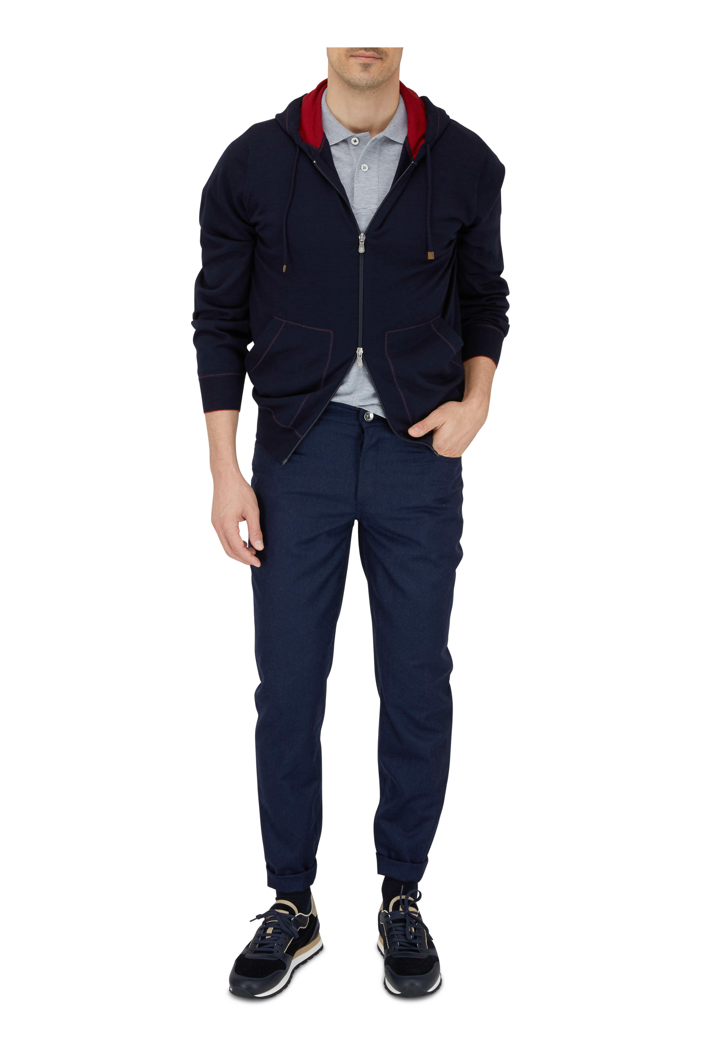 Front zip closure. Side slash pockets. Ribbed hem. Made in Italy. 90% wool, 10% cashmere. Dry clean.