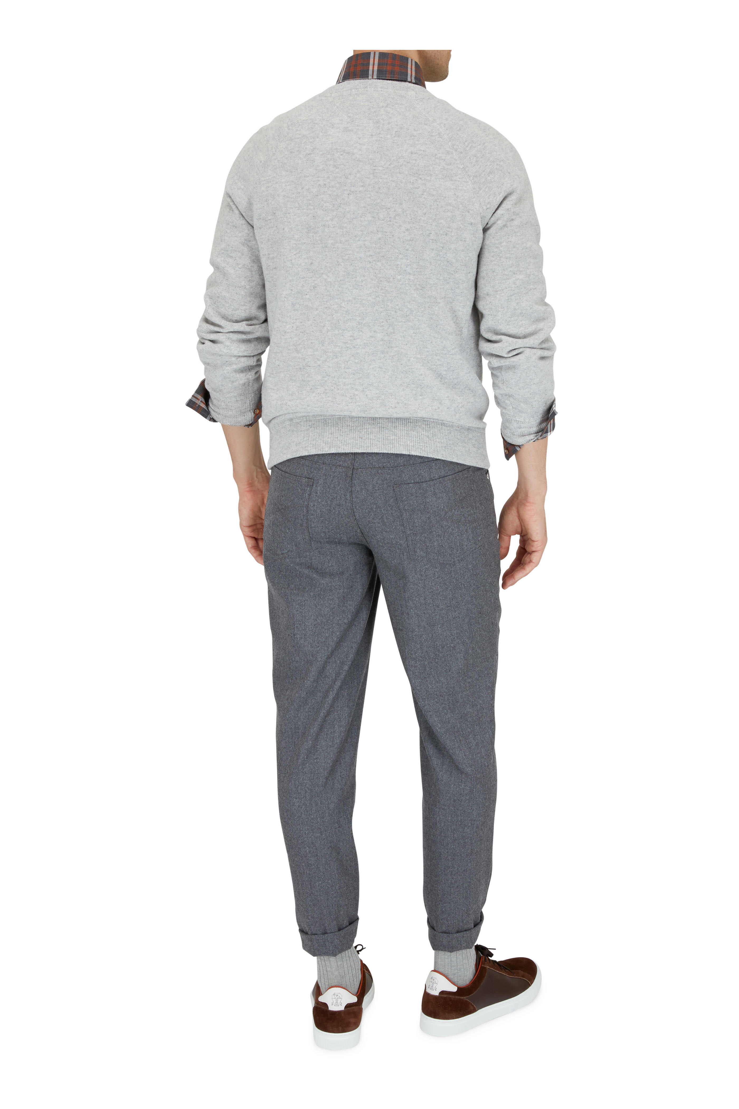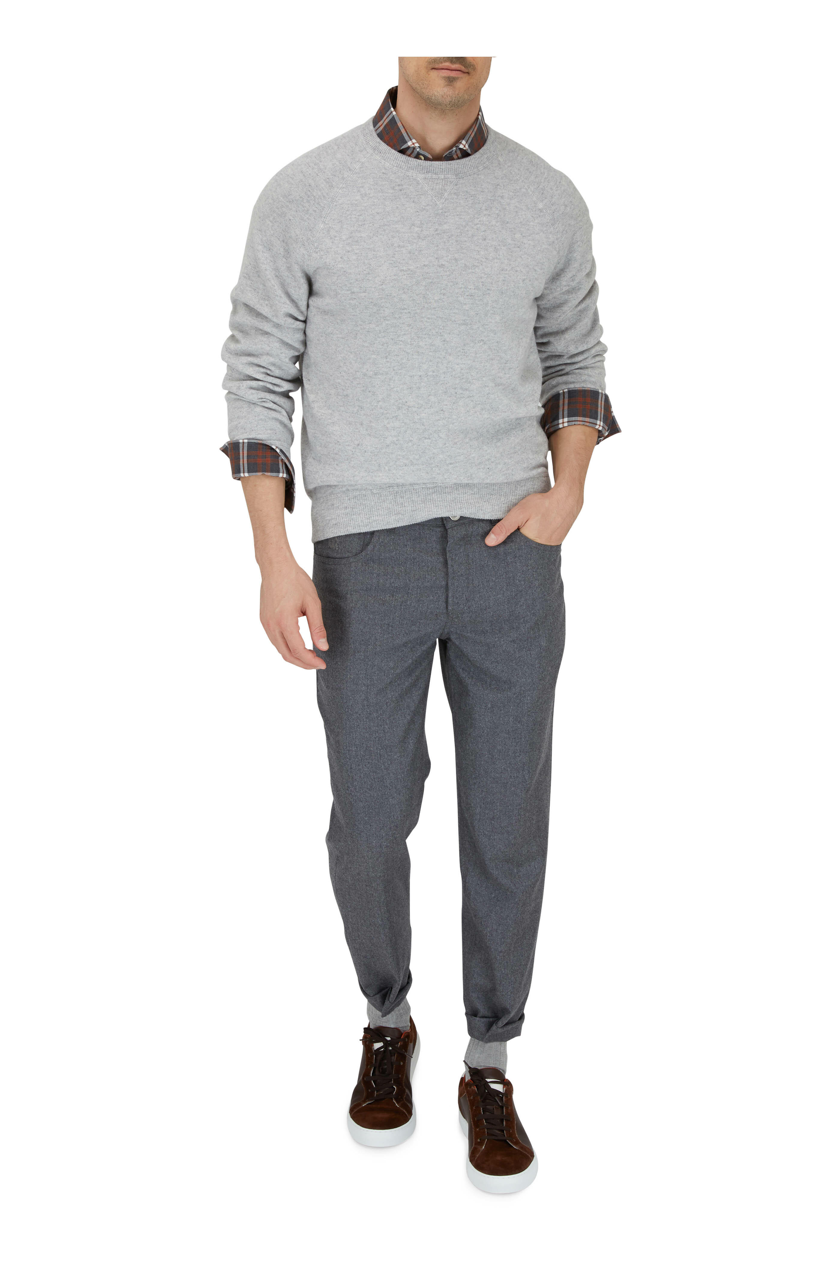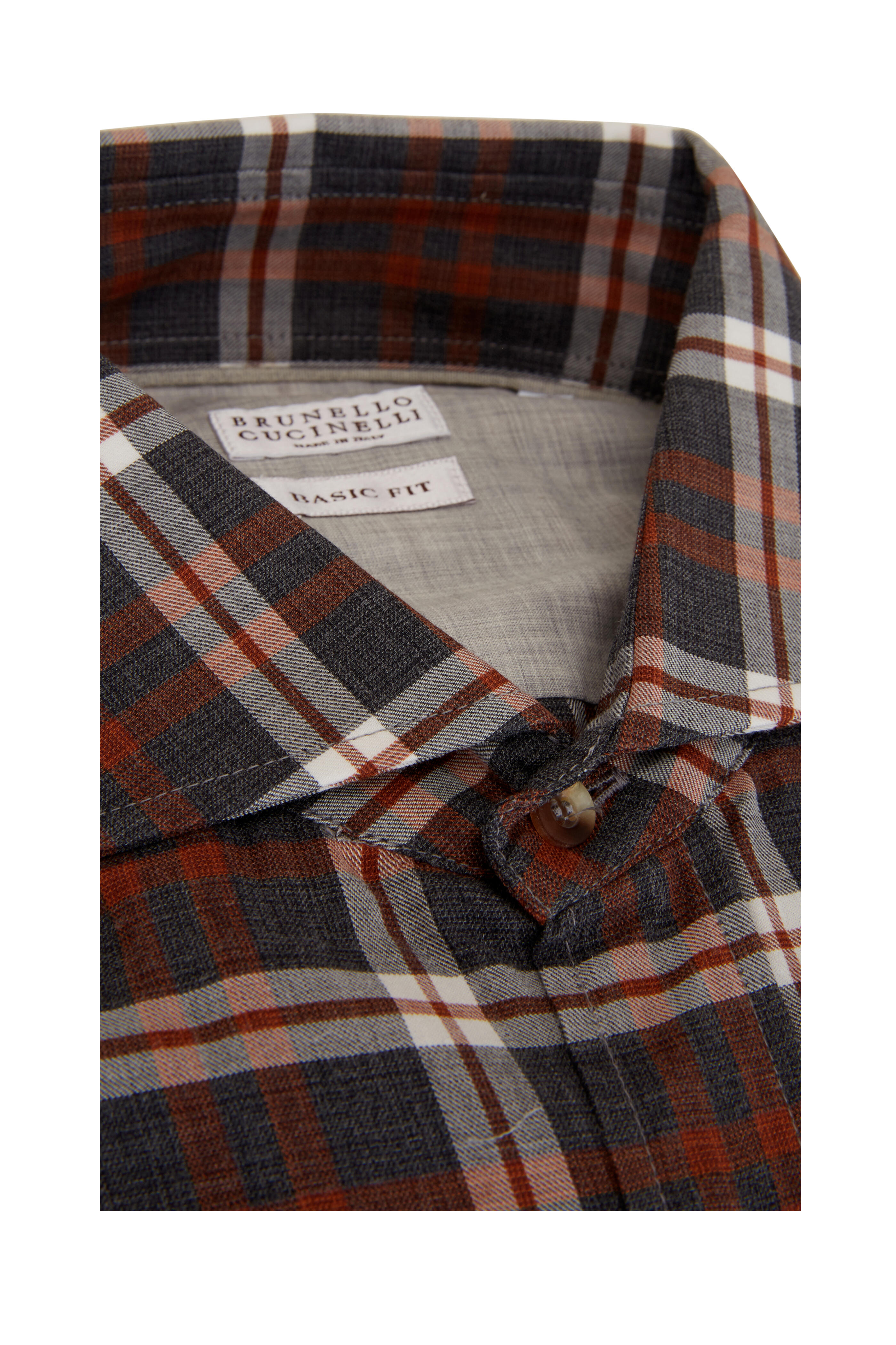 Gray & Orange Plaid Basic Fit Sport Shirt