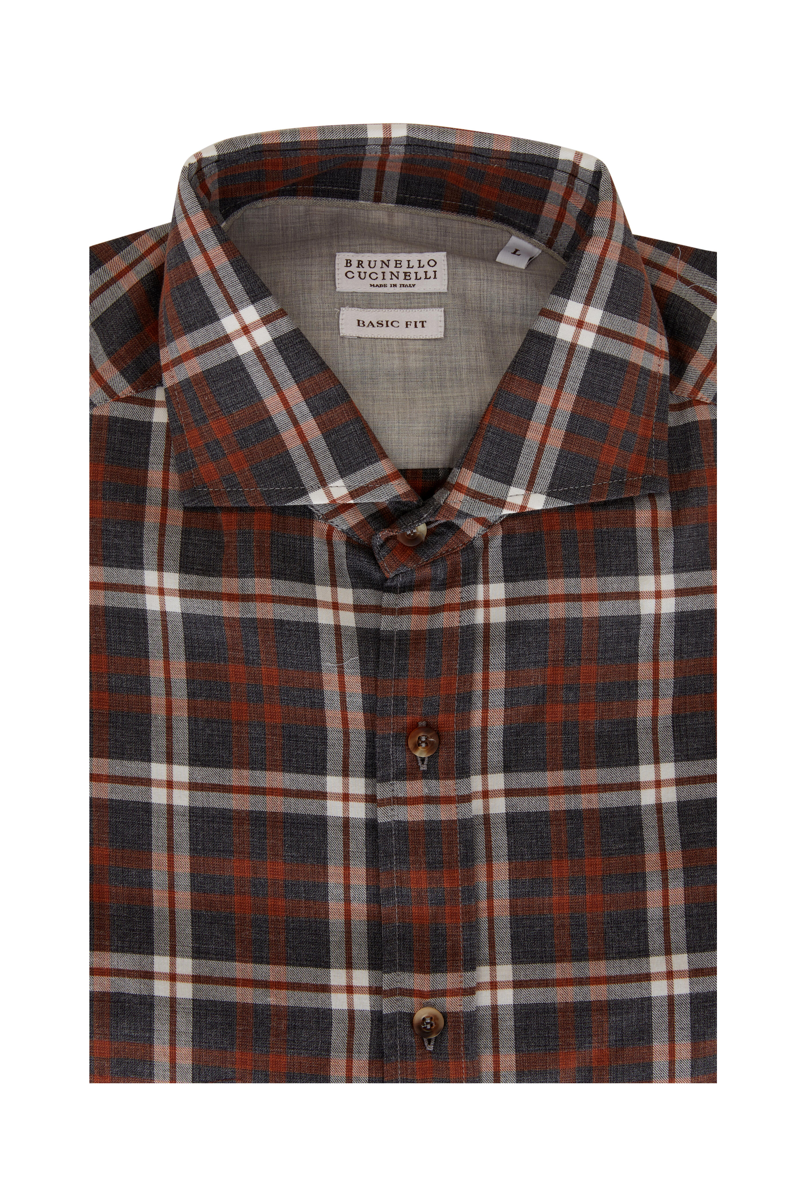 Spread collar. Two button squared cuffs. Made in Italy. Basic fit. 100% cotton. Hand wash. Machine wash.
