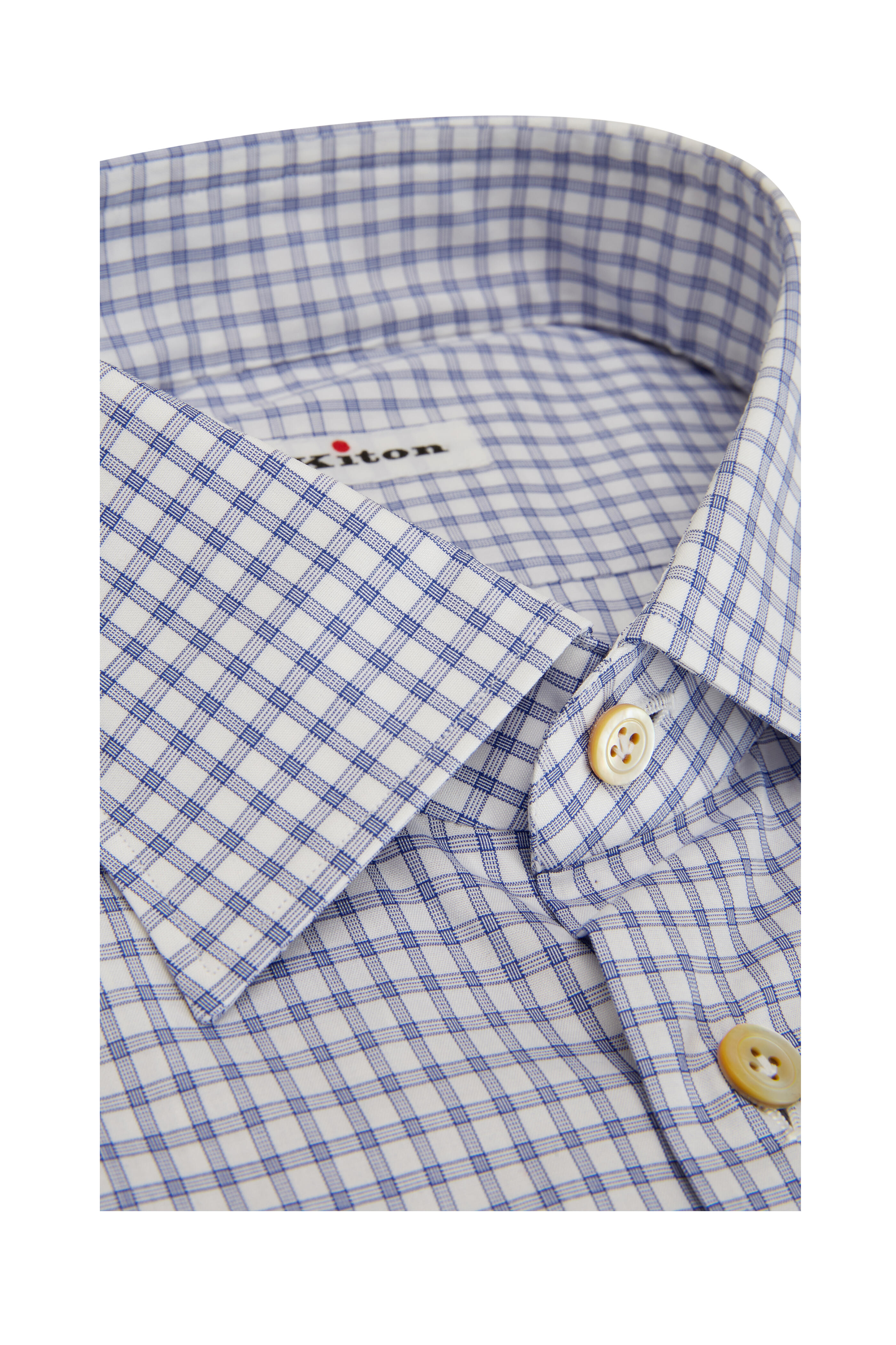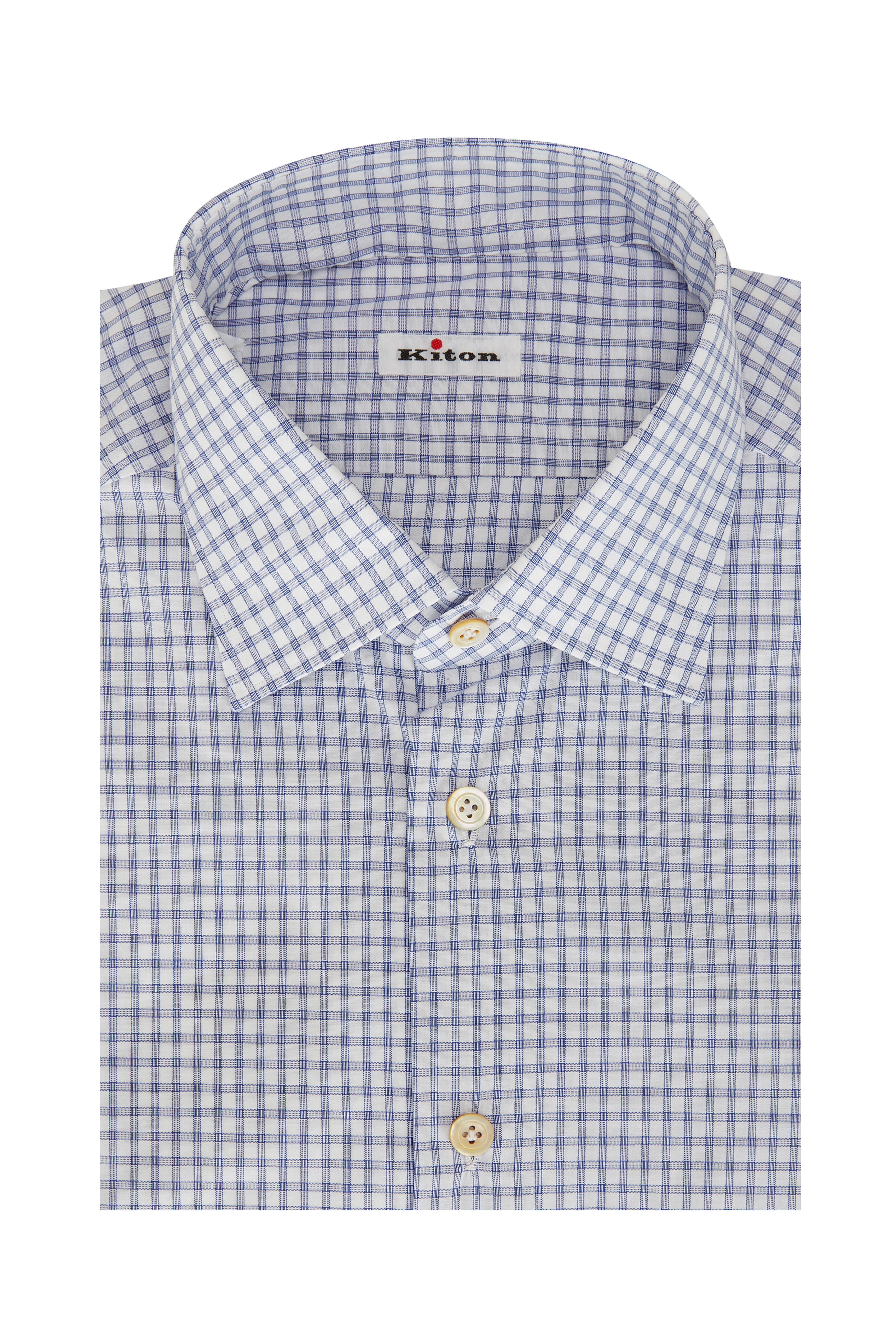 Spread collar. Single button mitered cuffs. Made in Italy. 100% cotton. Dry clean.