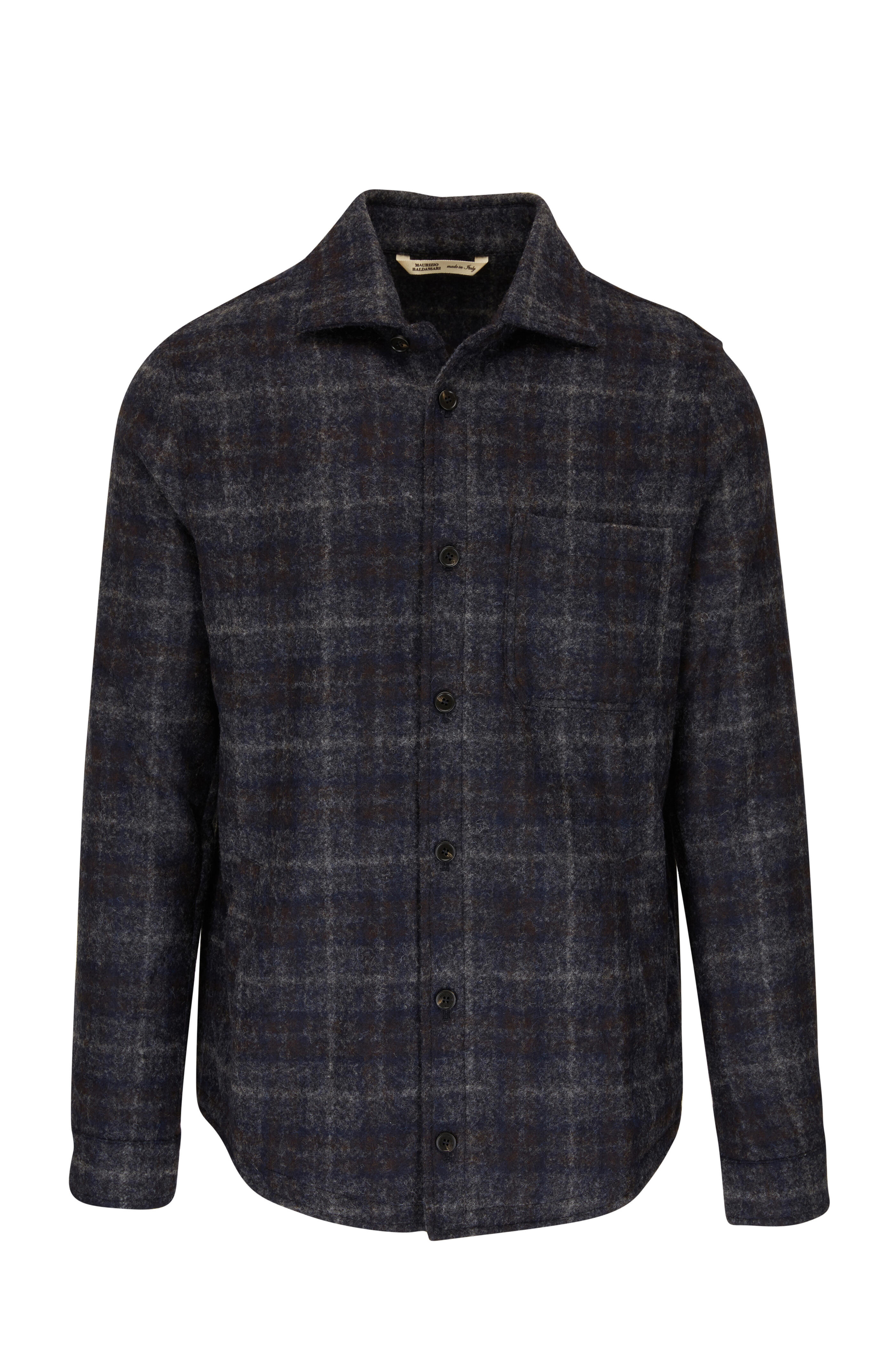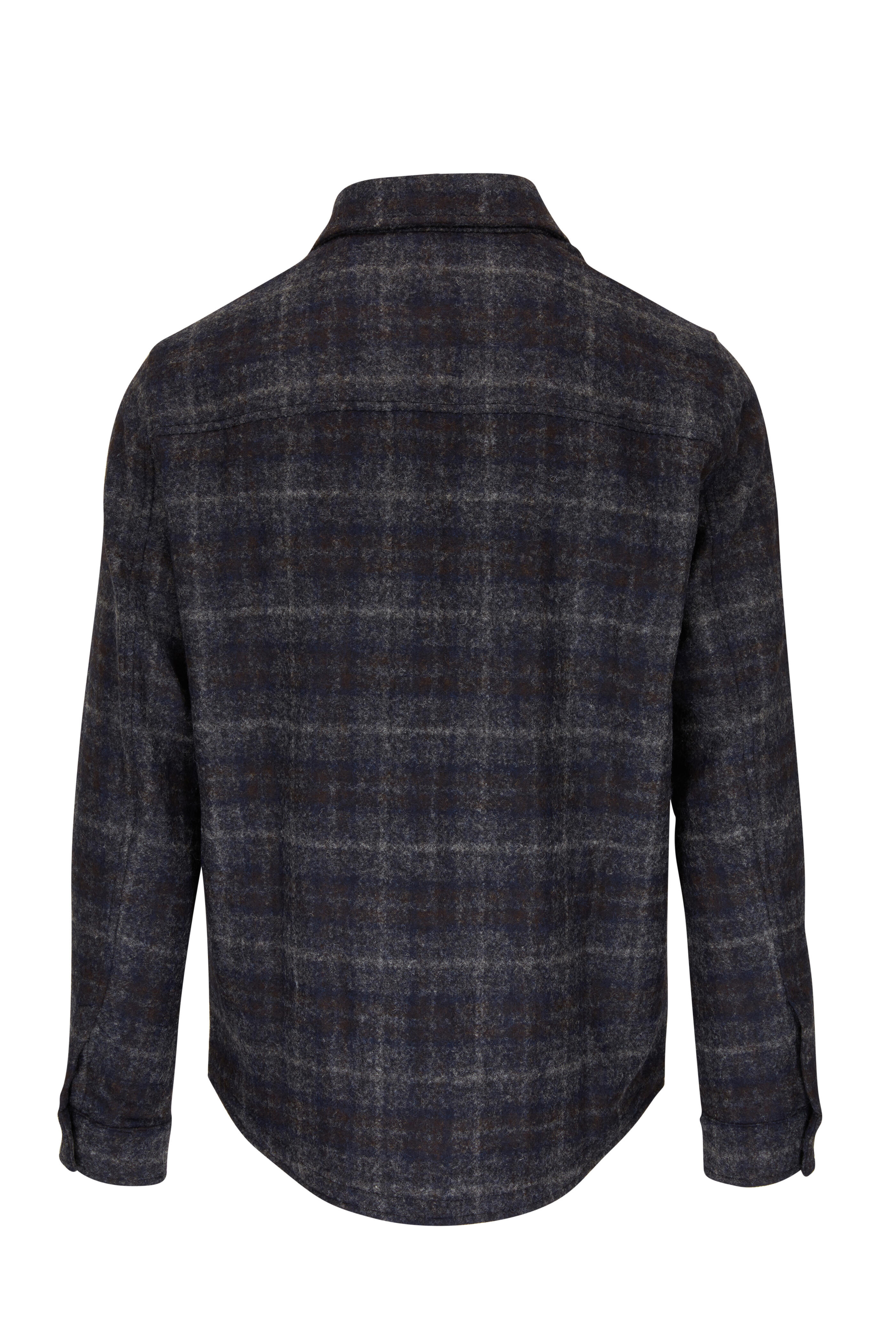 Spread collar. Full button closure. Single patch chest pocket. Single button barrel cuffs. Made in Italy. 80% alpaca, 20% nylon. Dry clean.